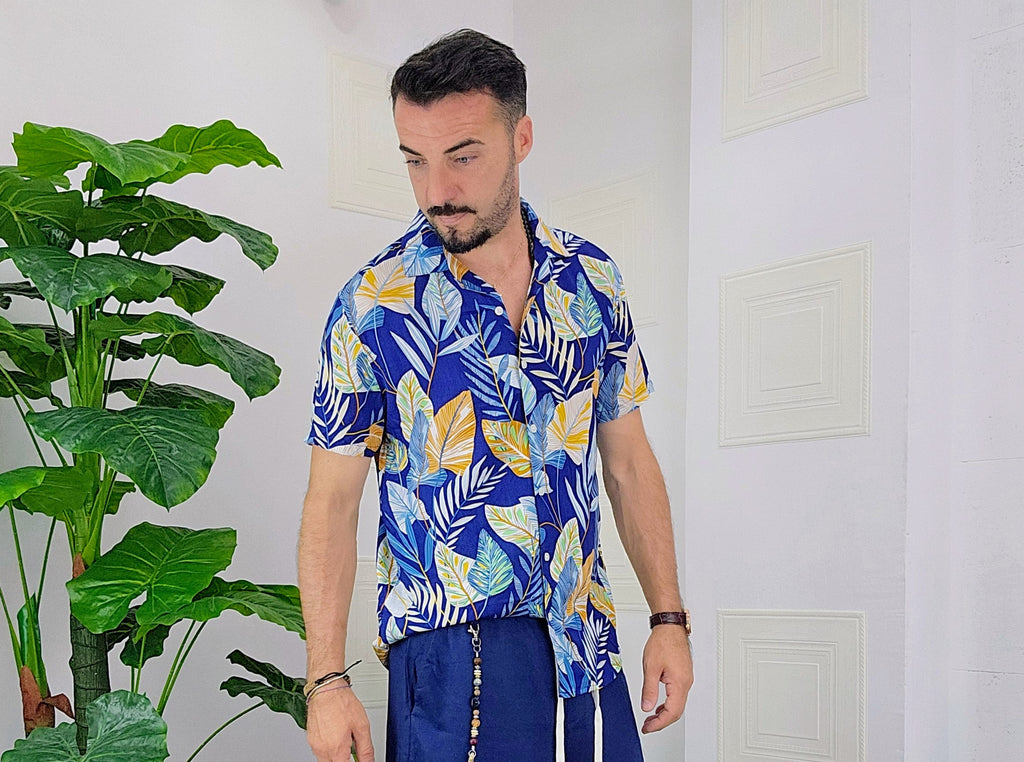 Camicia in viscosa slim fit dalla S alla XXL, il modello in foto è alto 1.82x76kg è indossa una taglia S.Prodotto Made in Italy