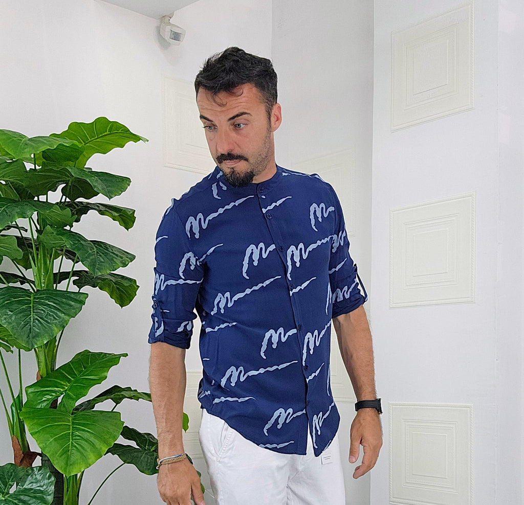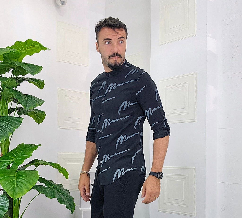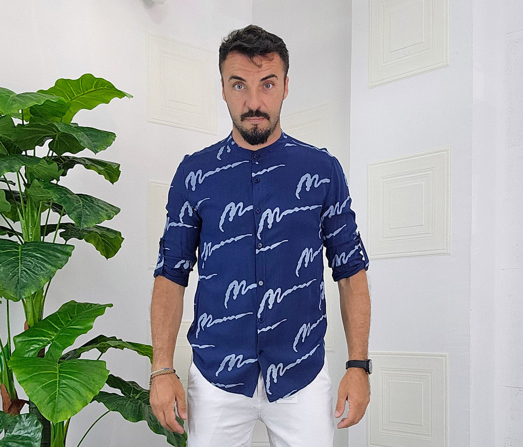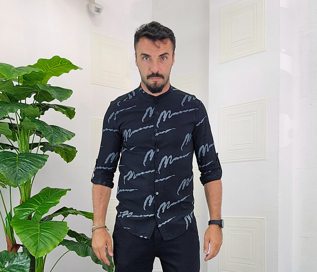 Camicia Koreana .Vestibilità slim disponibile dalla S alla XXL. Il modello in foto è alto 1.82x76kg e veste una taglia M. Manifattura Made in Italy.