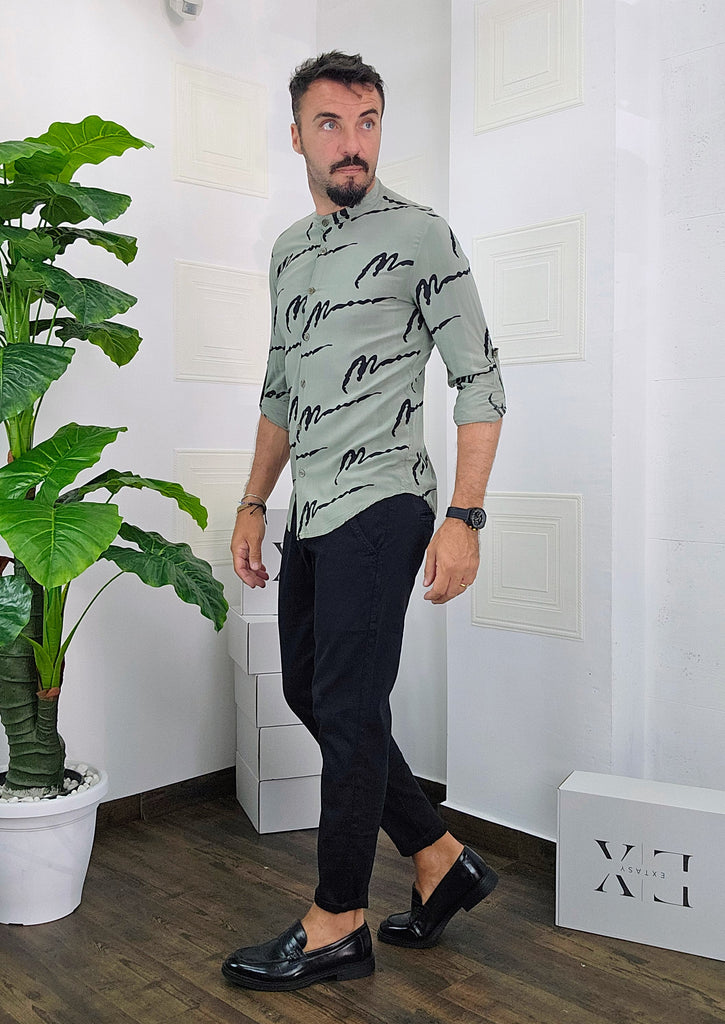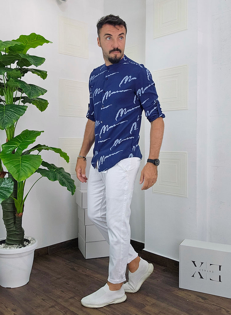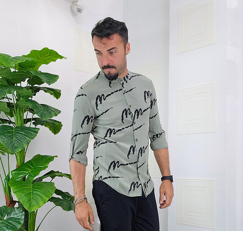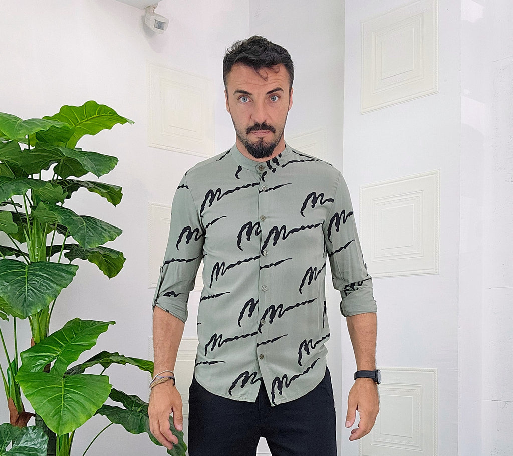 Camicia Koreana .Vestibilità slim disponibile dalla S alla XXL. Il modello in foto è alto 1.82x76kg e veste una taglia M. Manifattura Made in Italy.