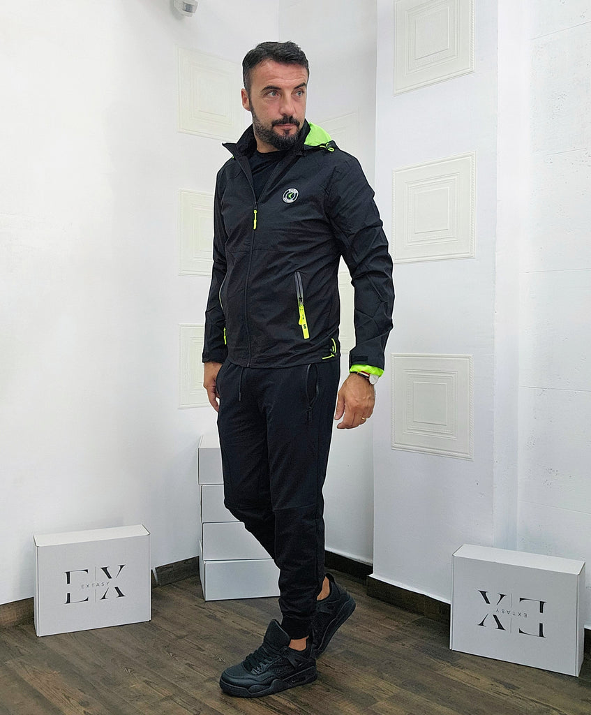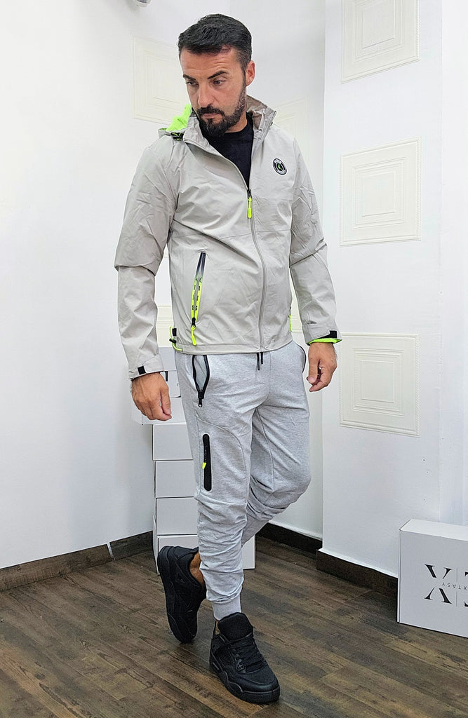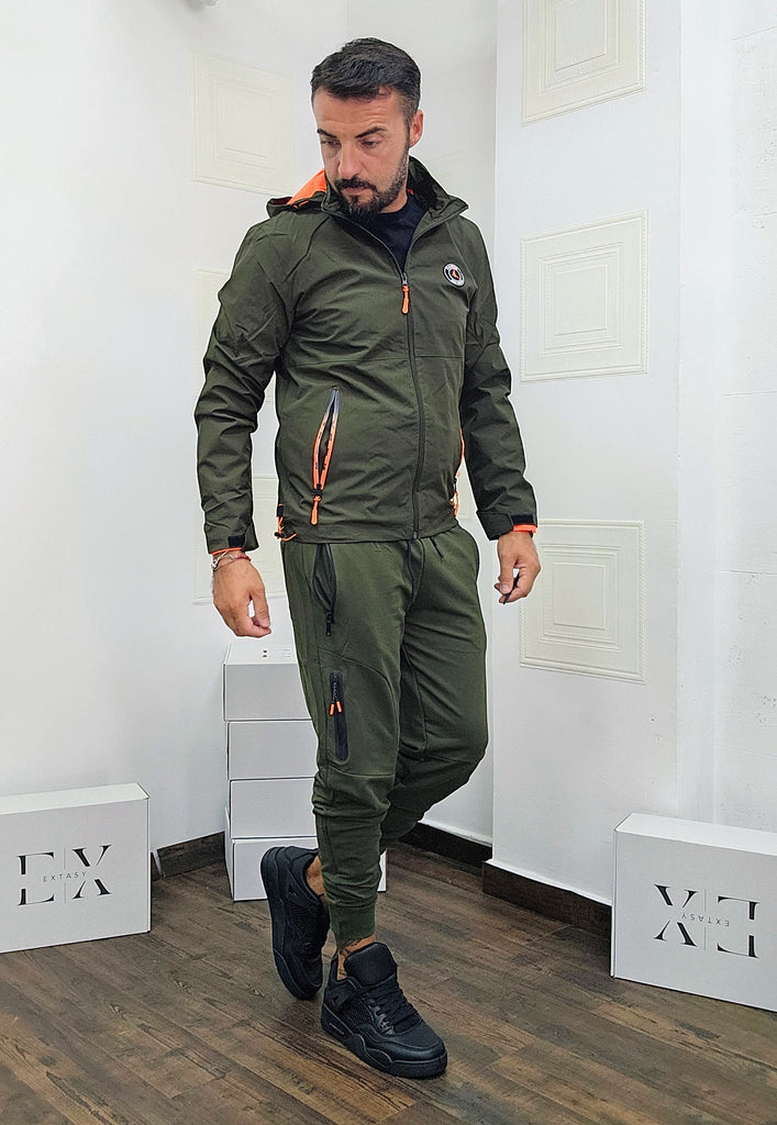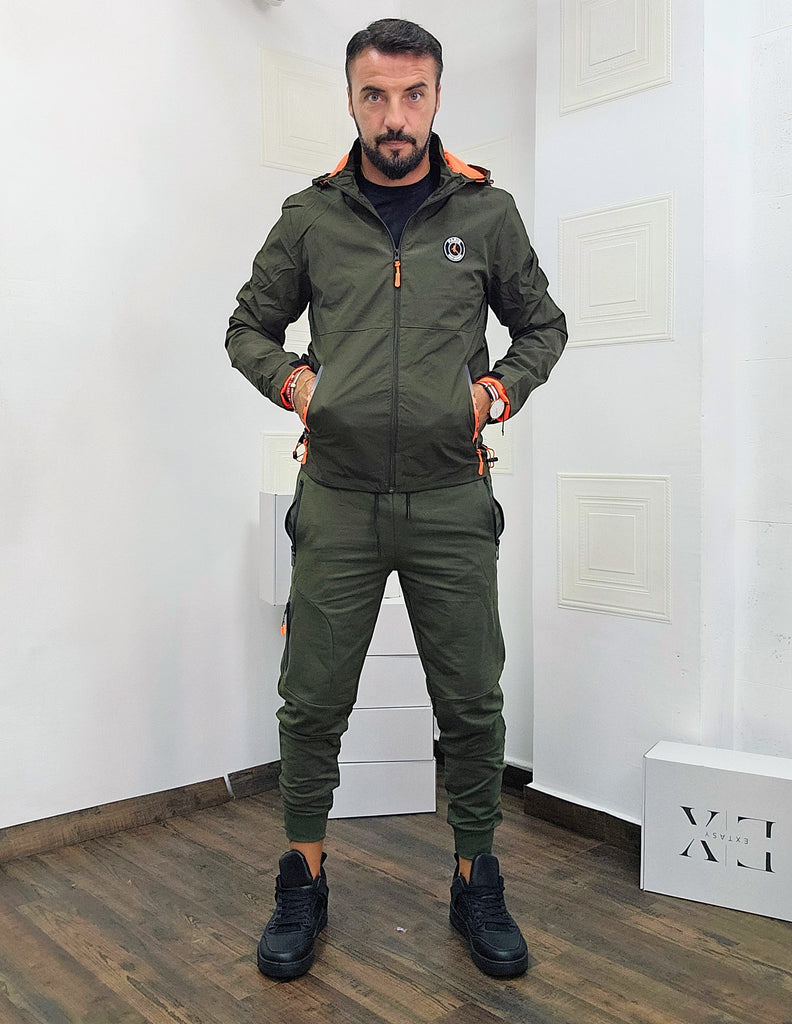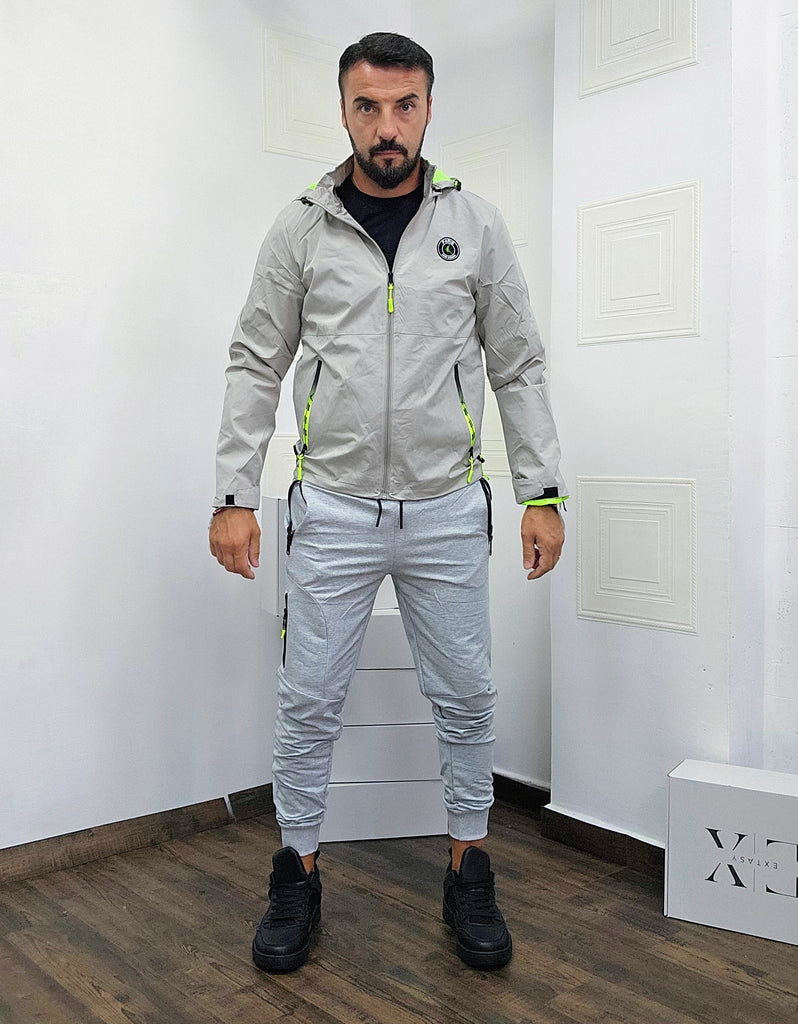 Completo composto da giubbino antivento antidroga con 2 tasche laterali taschino all'interno cappuccio estraibile pantatuta con 2 tasche laterali ed una sul retro dalla M alla XXXL, il modello in foto è alto 1.82x76kg è indossa una taglia M.Prodotto Made in Italy