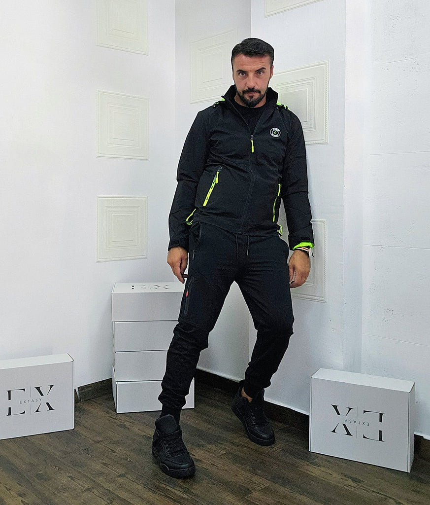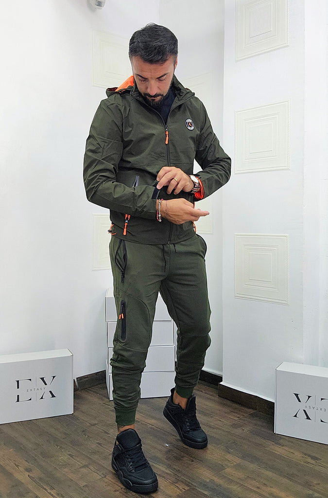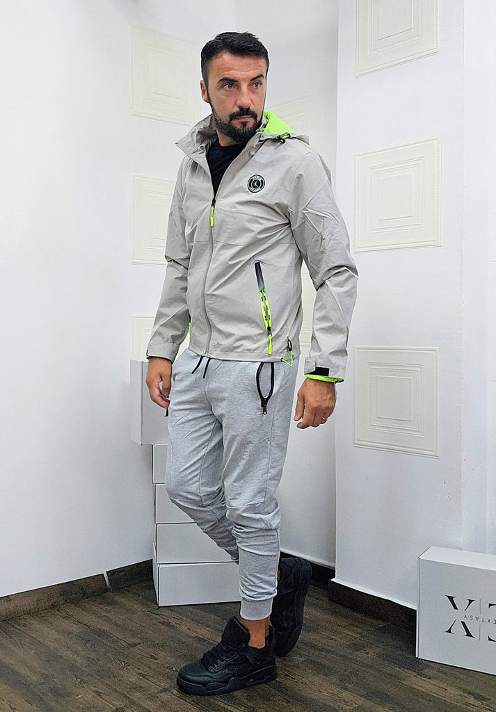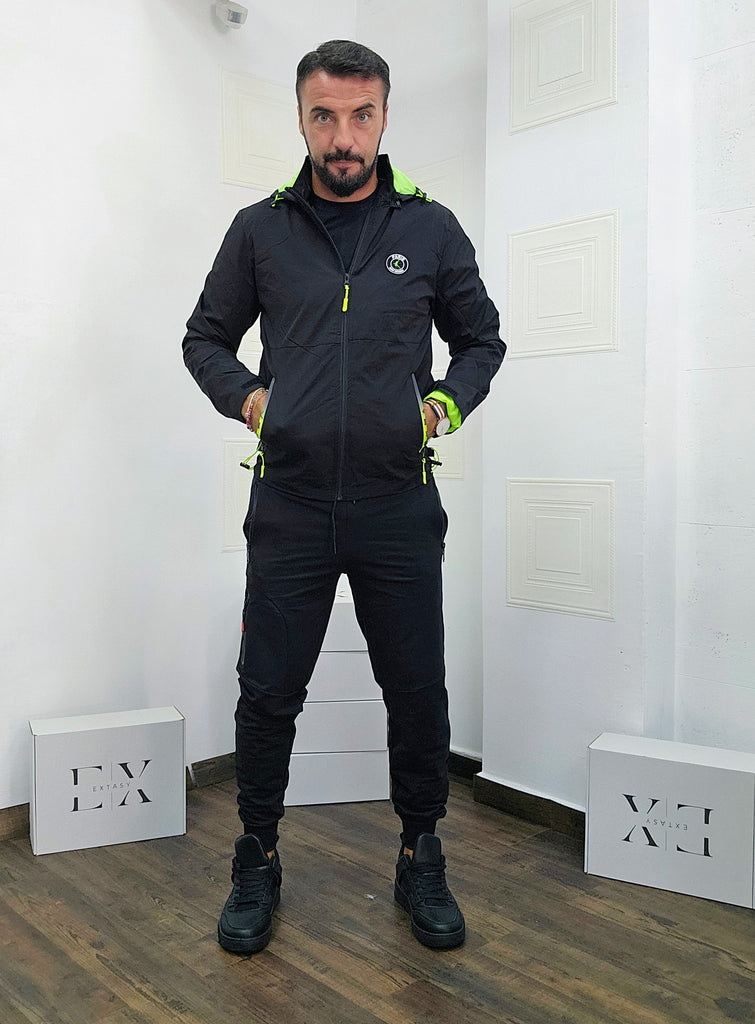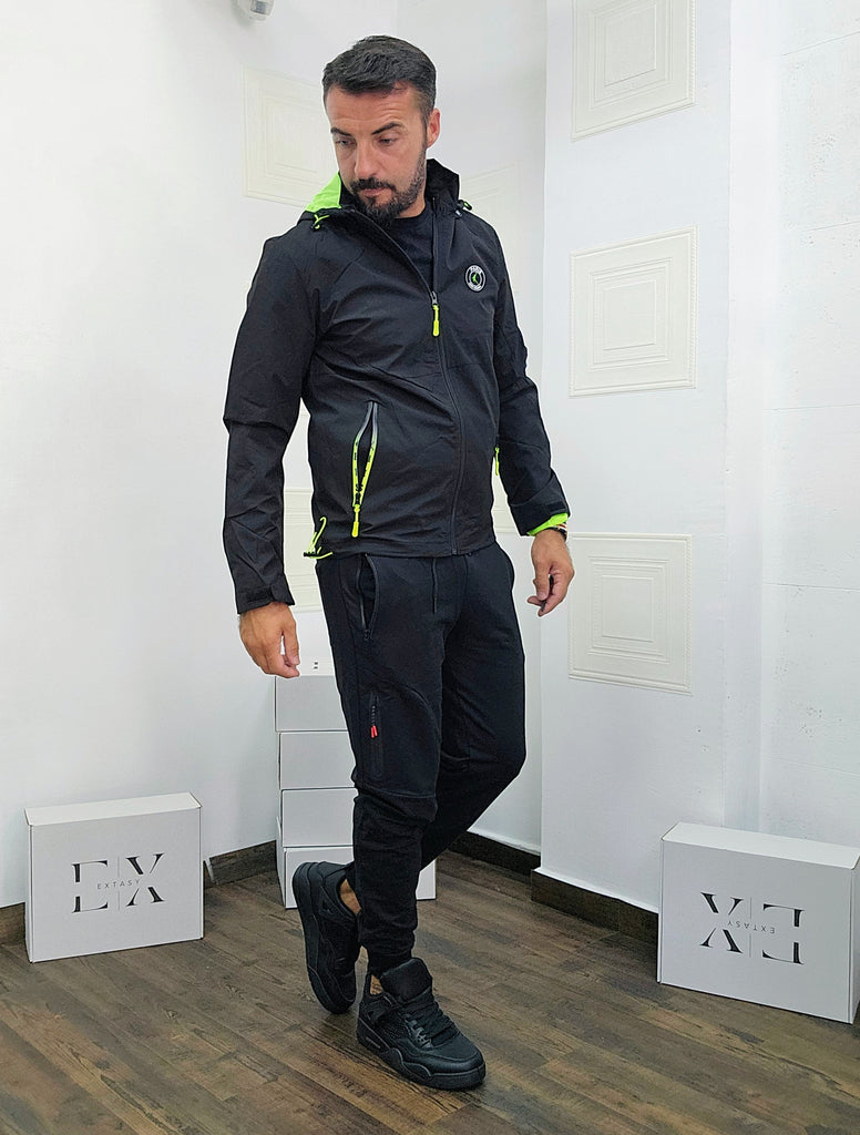 Completo composto da giubbino antivento antidroga con 2 tasche laterali taschino all'interno cappuccio estraibile pantatuta con 2 tasche laterali ed una sul retro dalla M alla XXXL, il modello in foto è alto 1.82x76kg è indossa una taglia M.Prodotto Made in Italy