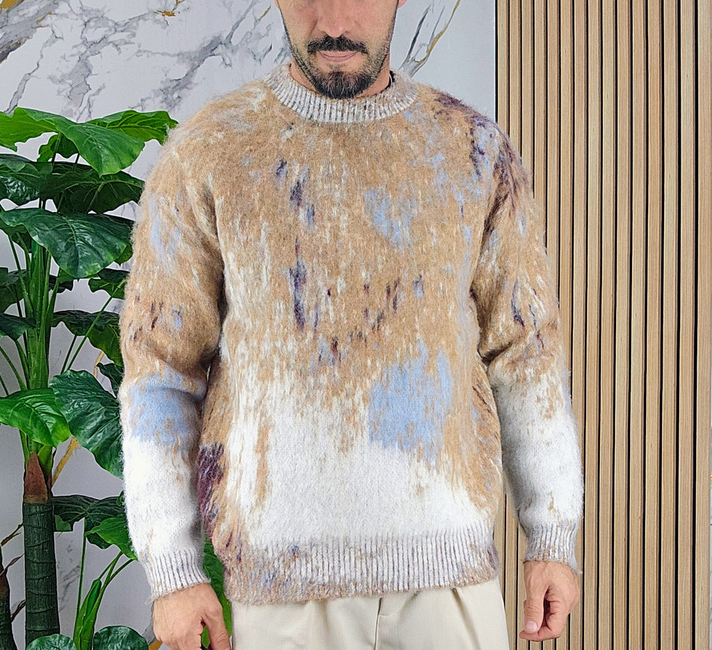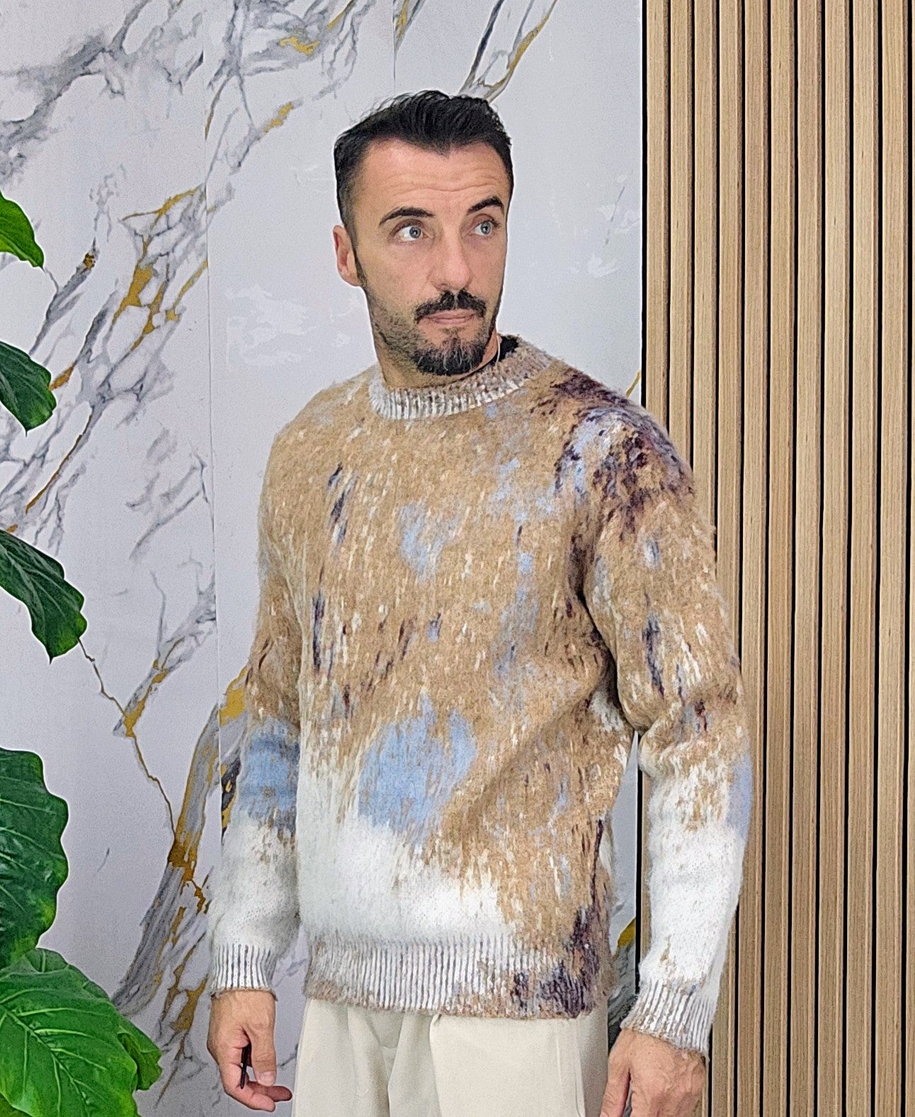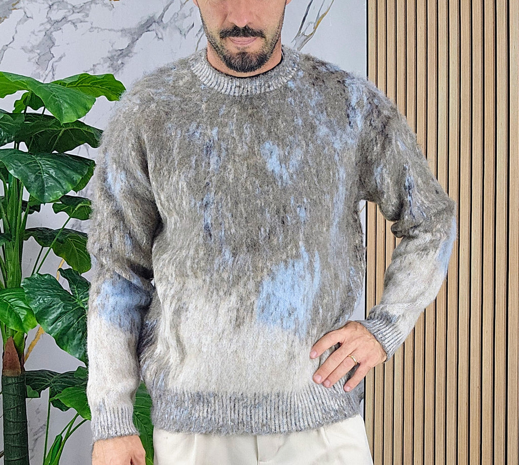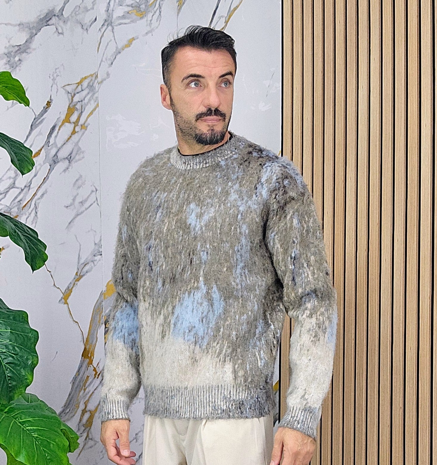 Maglione lana pettinata vestibilità comoda dalla S alla XL, il modello in foto è alto 1.82x76kg è indossa una taglia S.Prodotto Made in Italy