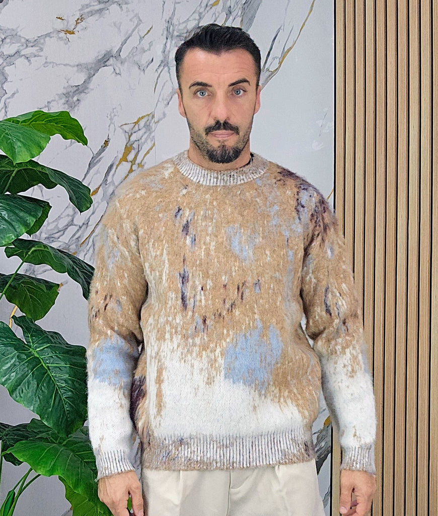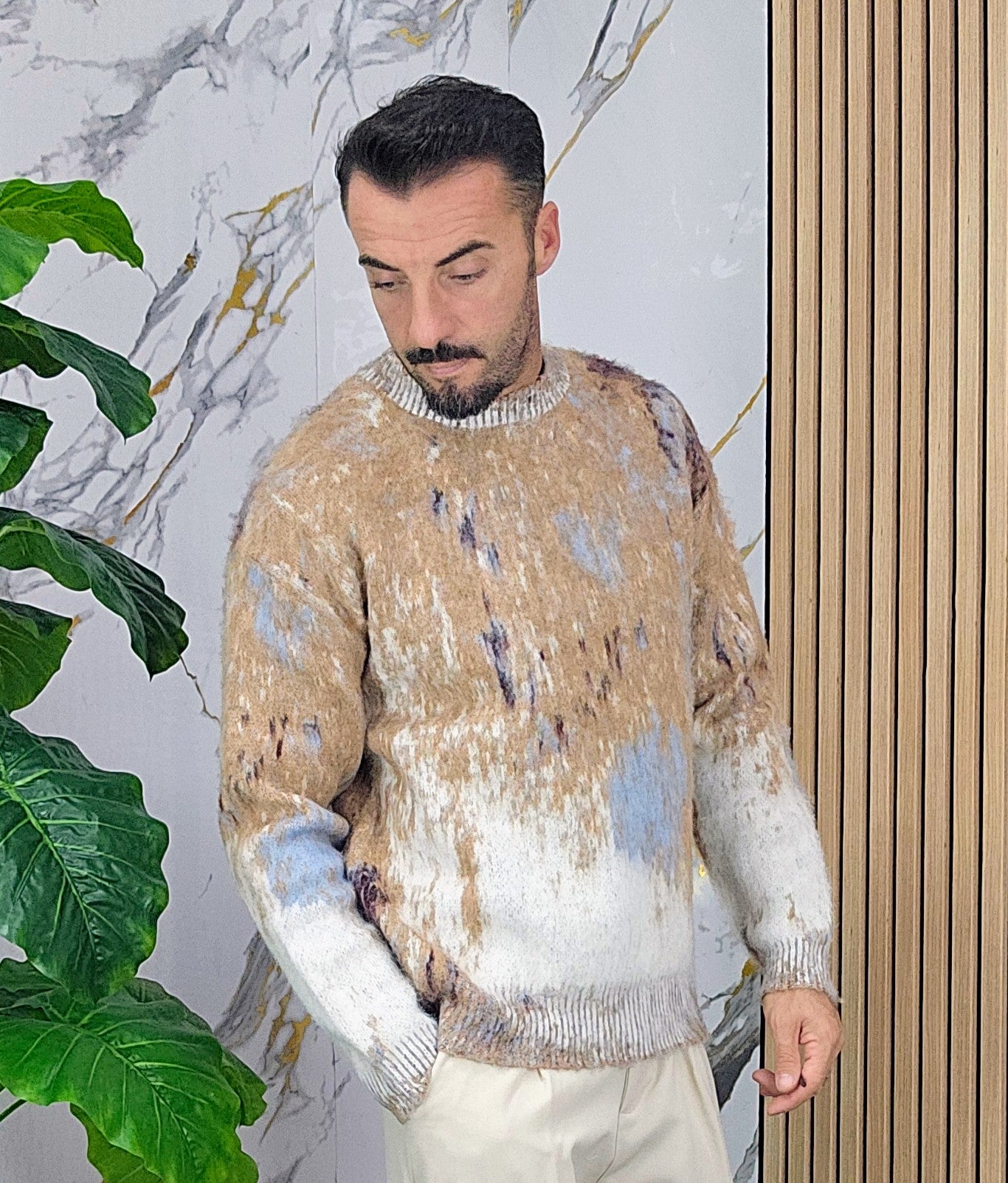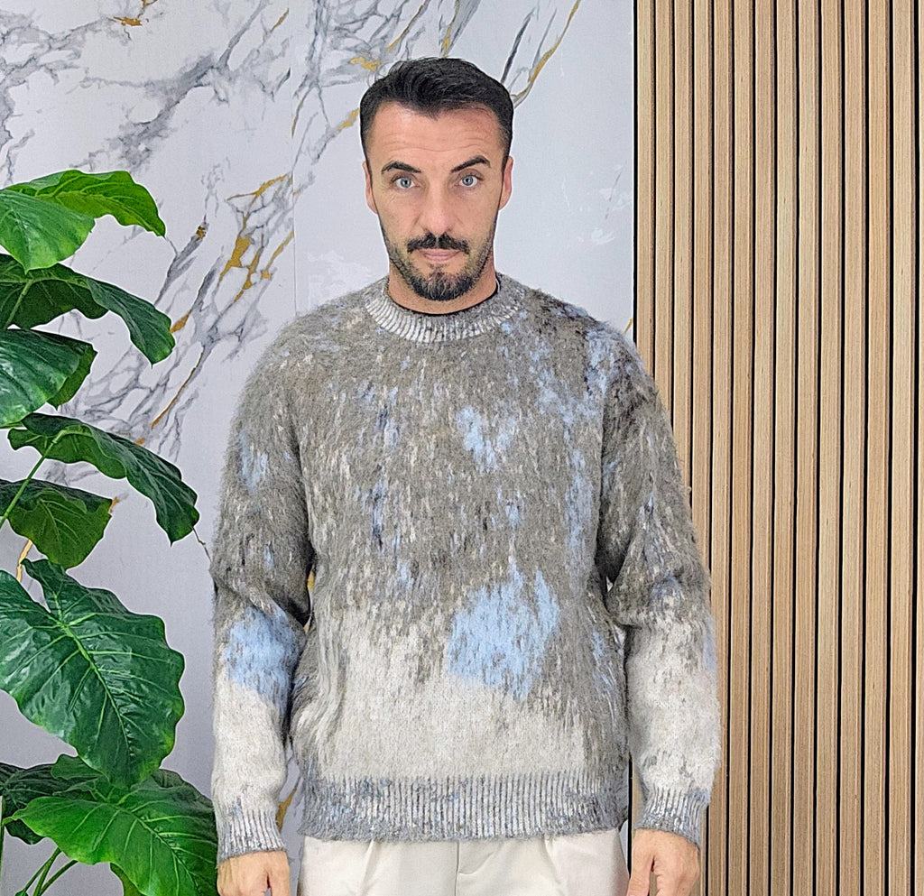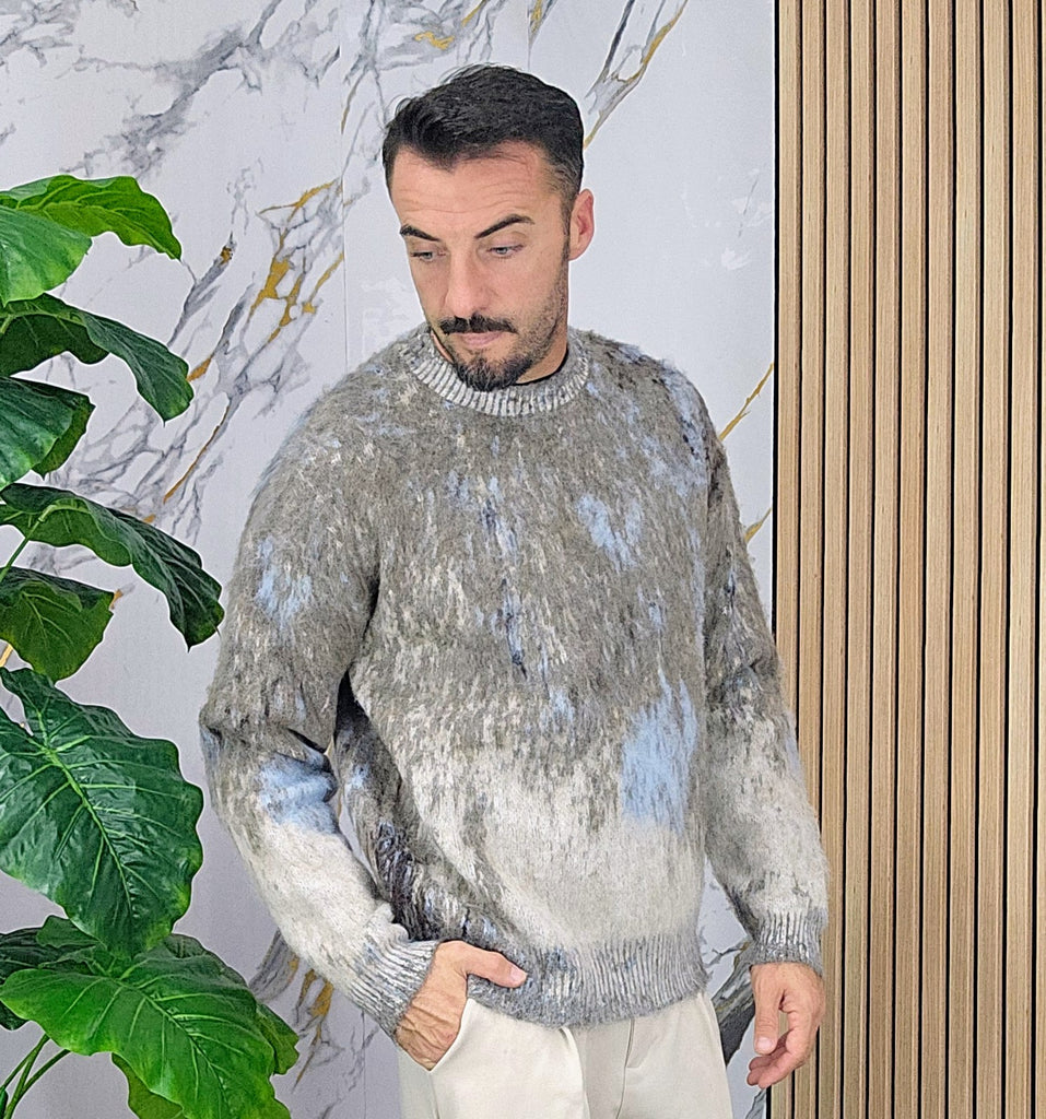 Maglione lana pettinata vestibilità comoda dalla S alla XL, il modello in foto è alto 1.82x76kg è indossa una taglia S.Prodotto Made in Italy