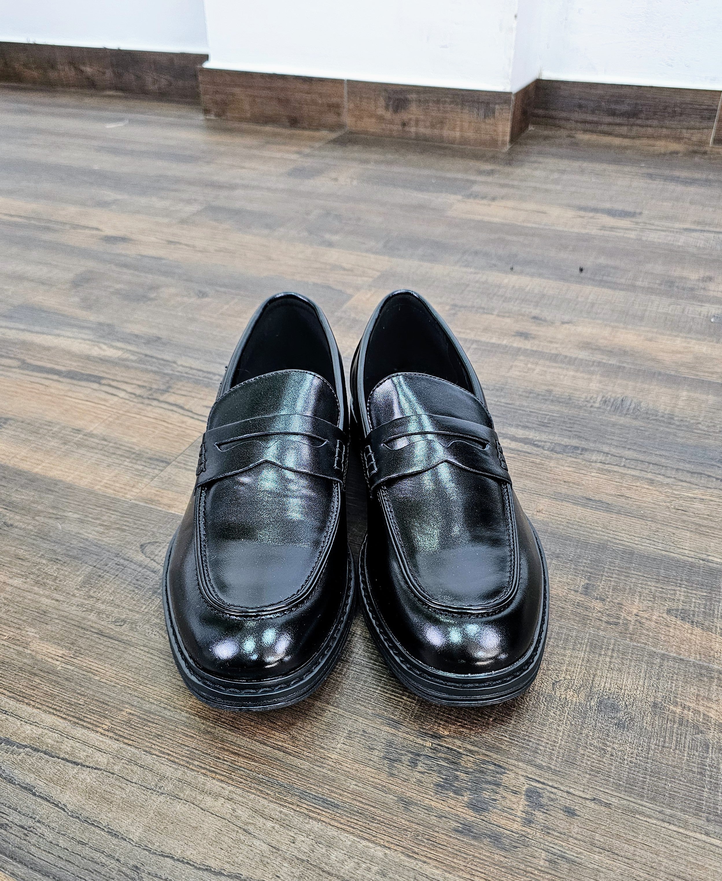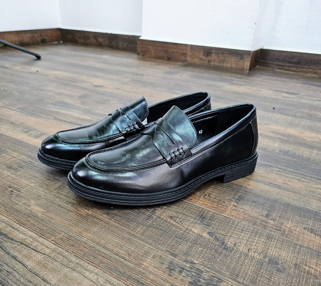 Mocassino in pelle opaca con suola sospesa in gomma,numeri dal 40 al 45.