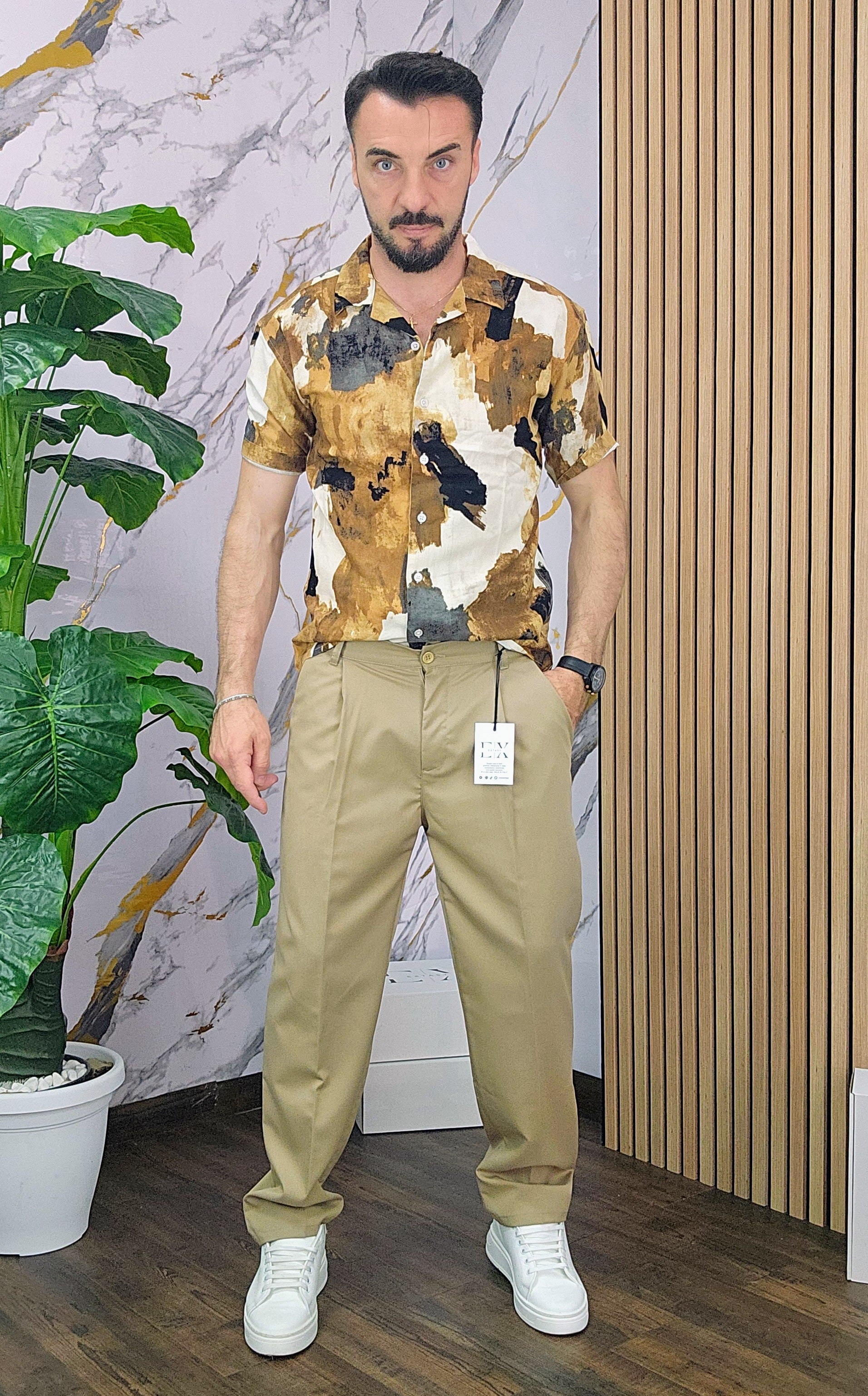 Camicia in Lino vestibilità poco slim dalla S alla XXL, il modello in foto è alto 1.82x76kg è indossa una taglia S.Prodotto Made in Italy