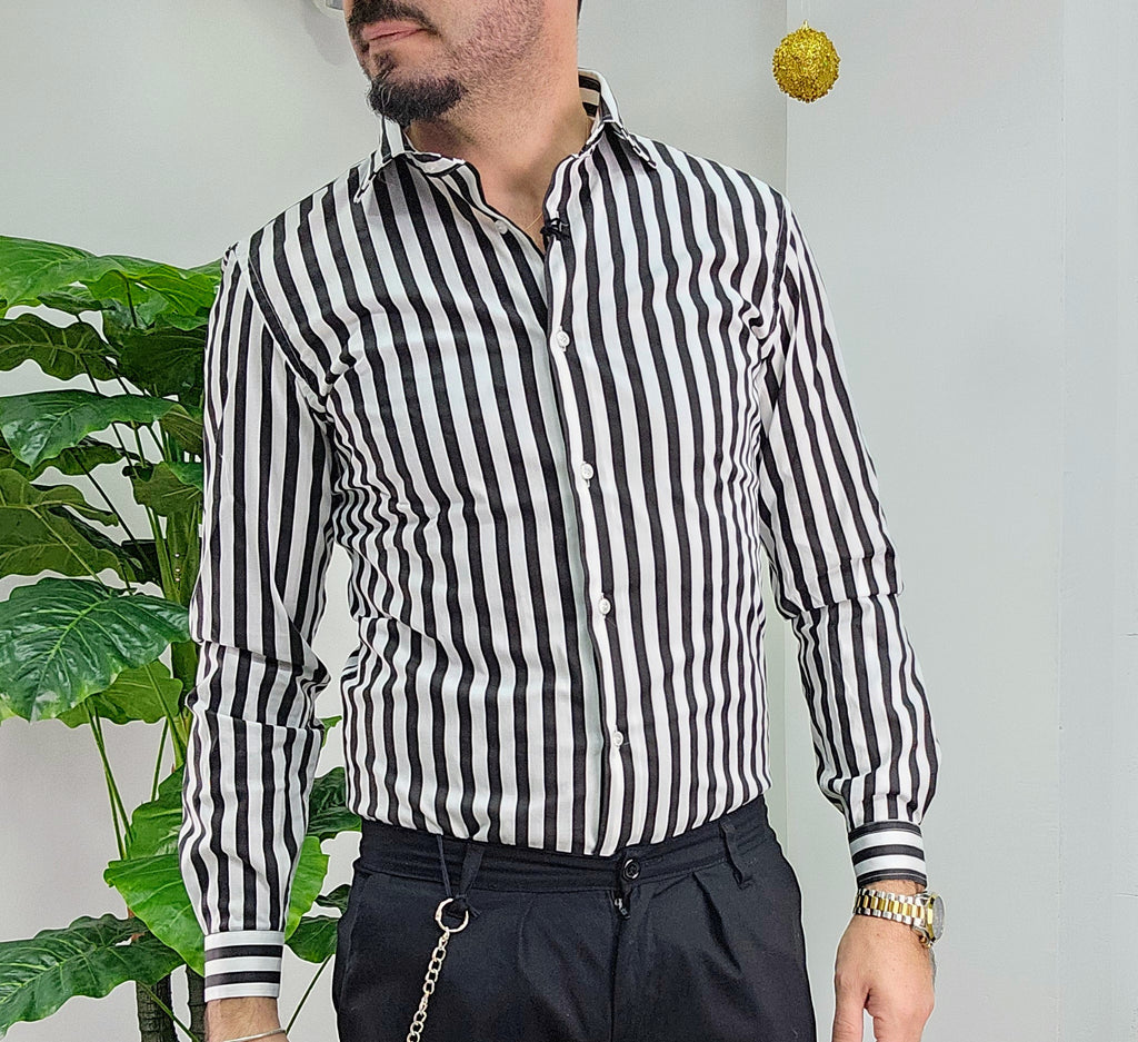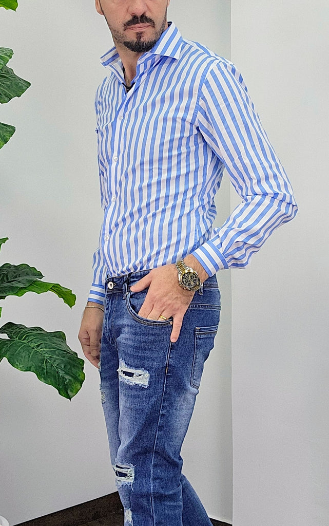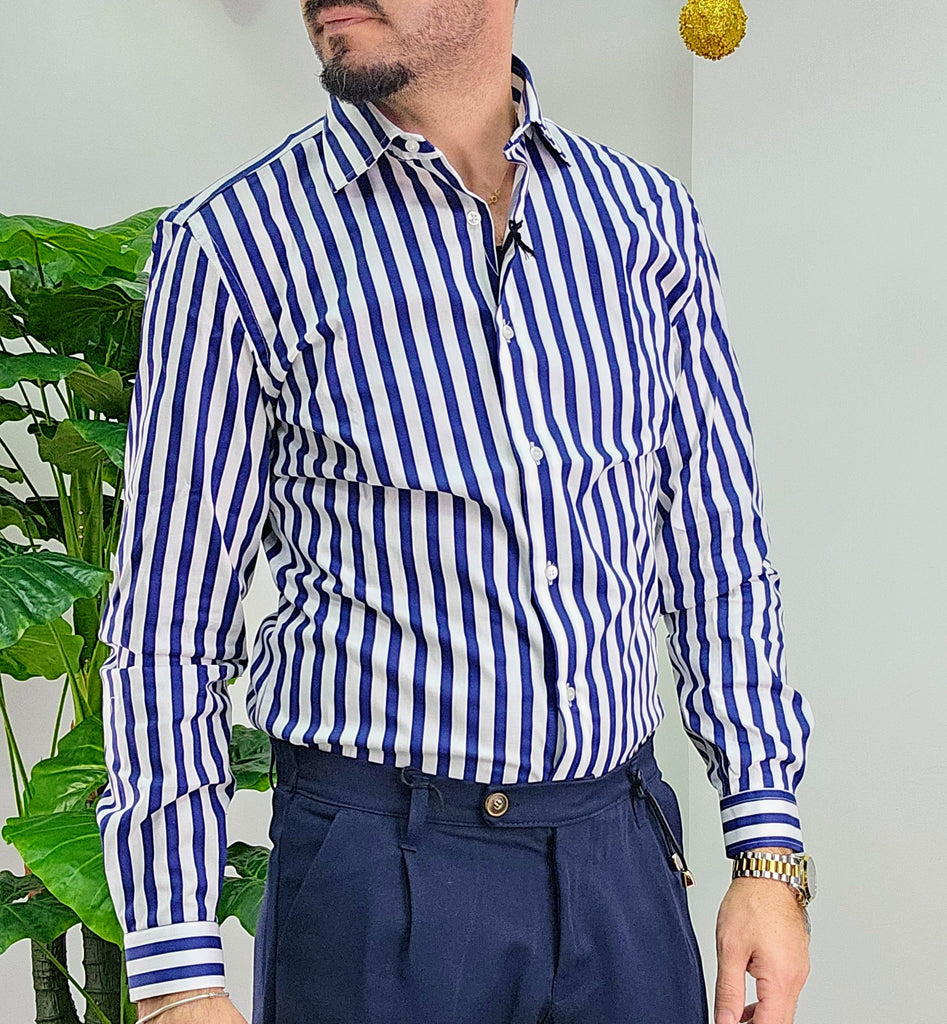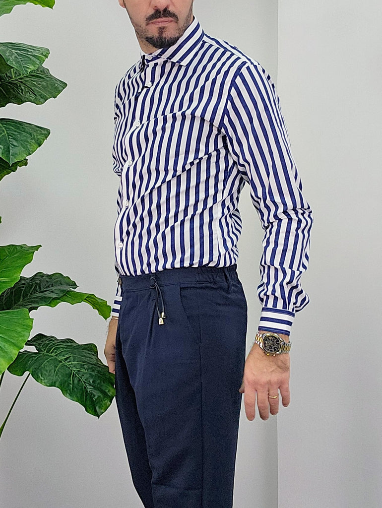 Camicia 100% cotone slim elastica vestibilità regolare dalla S alla XXL, il modello in foto è alto 1.82x76kg è indossa una taglia M,Made in Italy