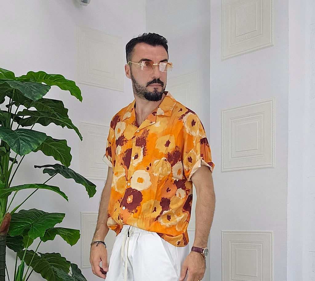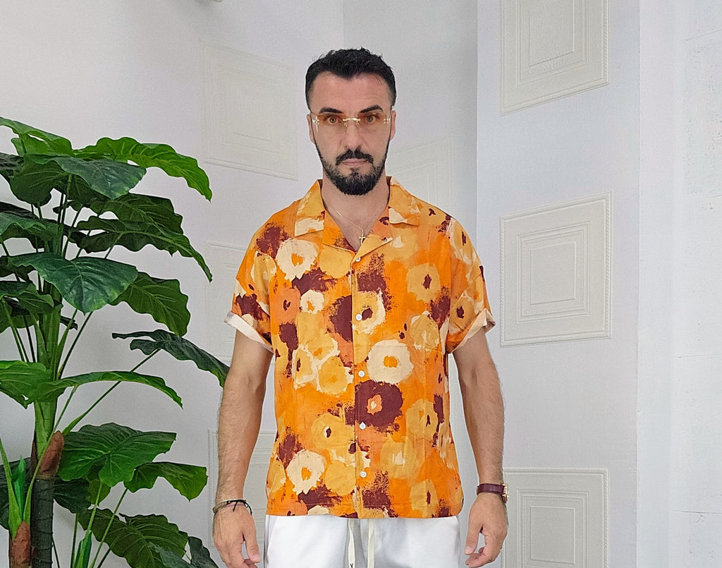Camicia fantasia calzata comoda dalla S alla XXL, il modello in foto è alto 1.82x76kg è indossa una taglia S.Prodotto Made in Italy