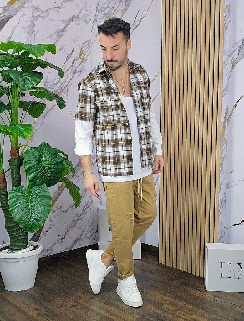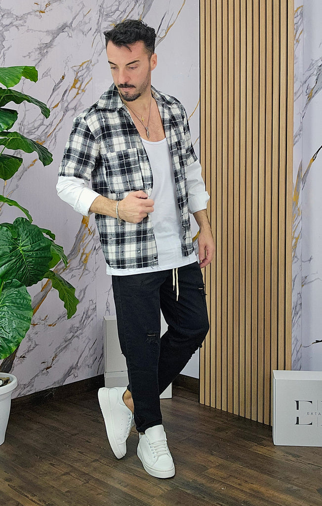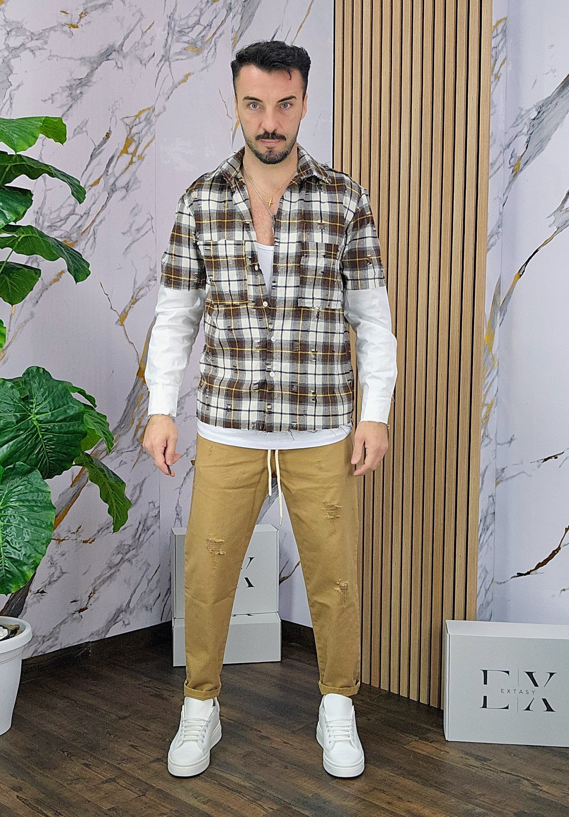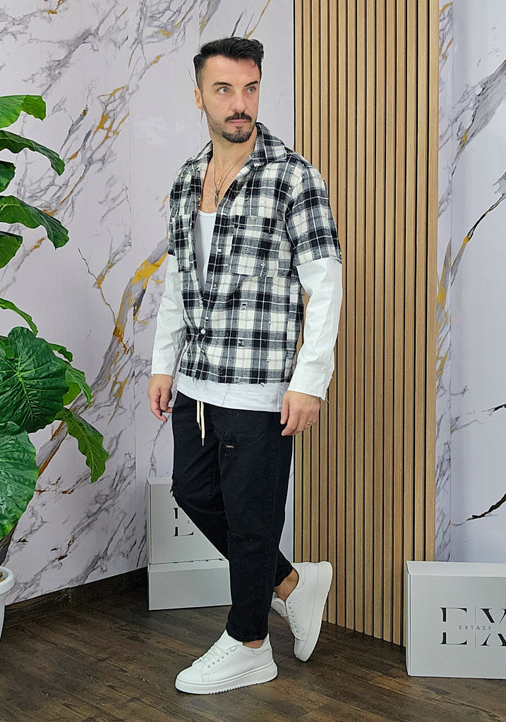 Camicione in cotone con manica bianca calzata comoda con 2 taschino all'interno petto dalla S alla XL, il modello in foto è alto 1.82x76kg è indossa una taglia S.Prodotto Made in Italy