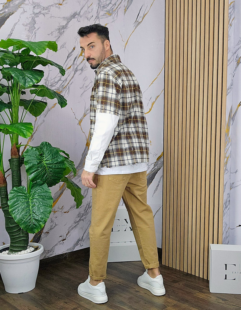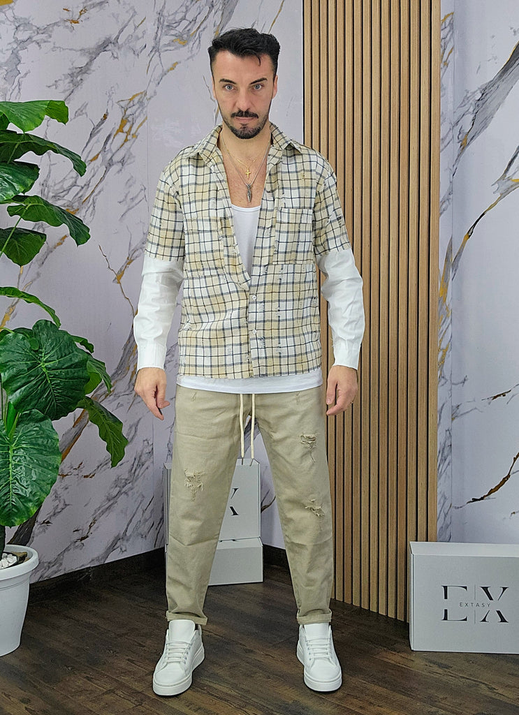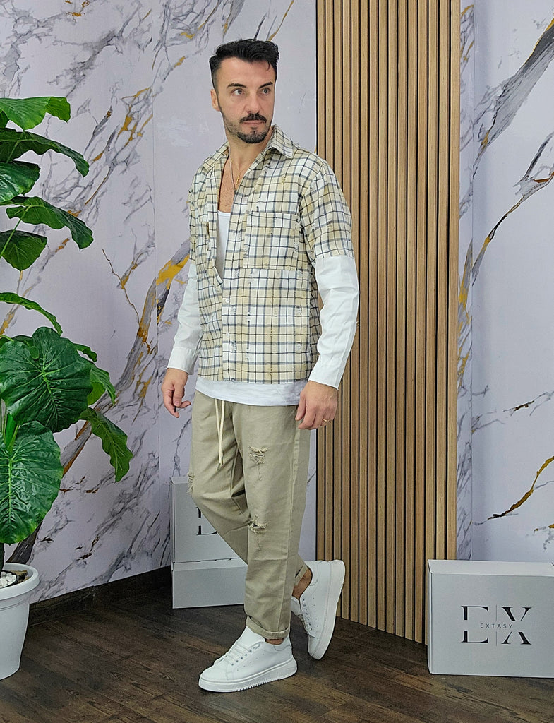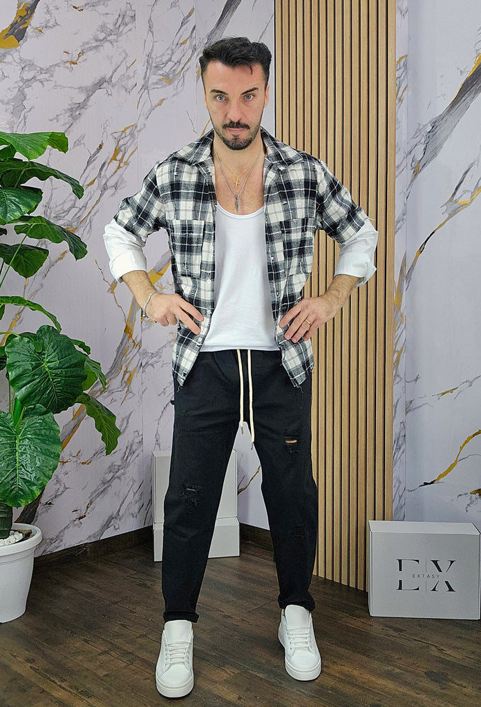 Camicione in cotone con manica bianca calzata comoda con 2 taschino all'interno petto dalla S alla XL, il modello in foto è alto 1.82x76kg è indossa una taglia S.Prodotto Made in Italy