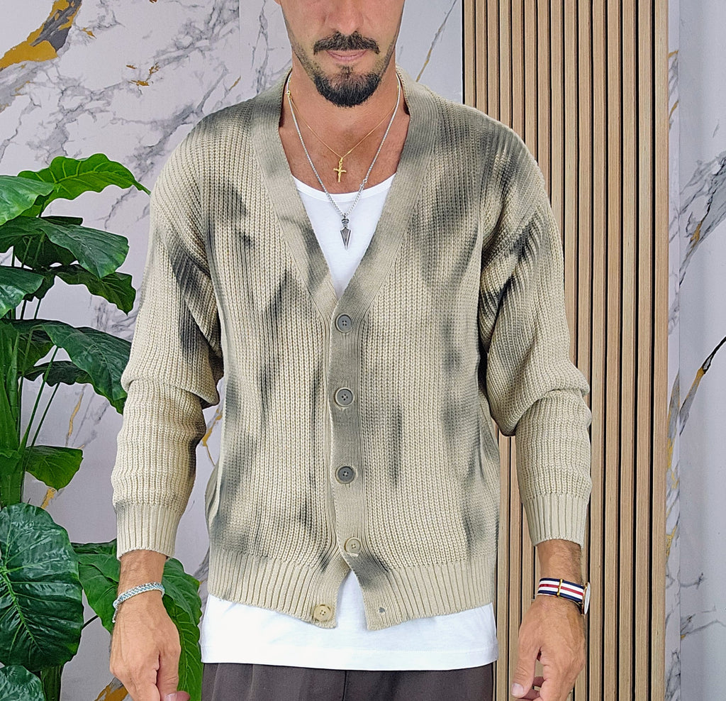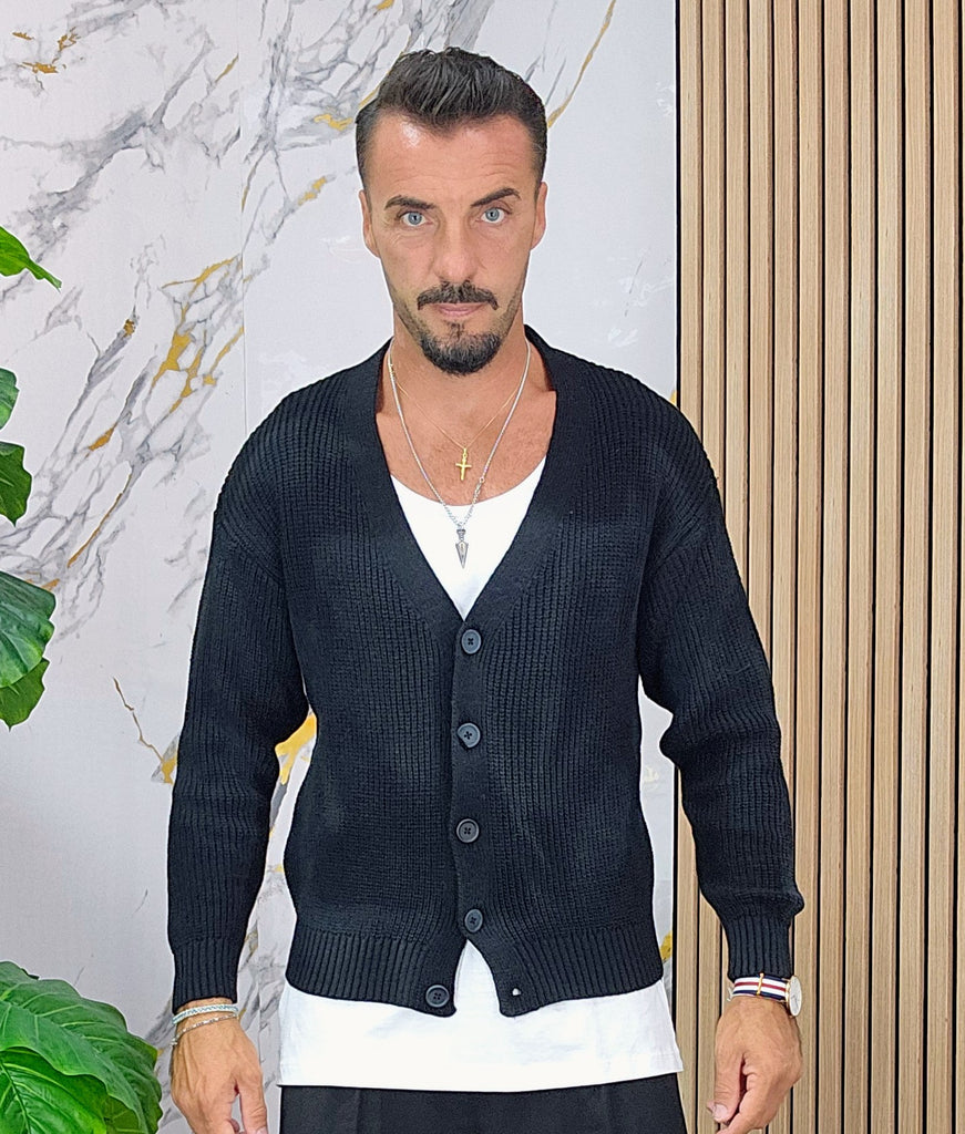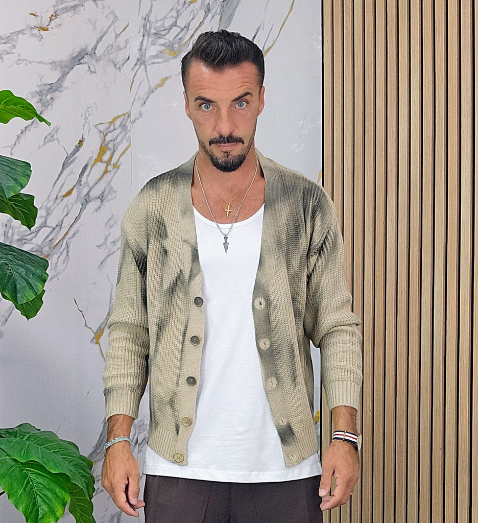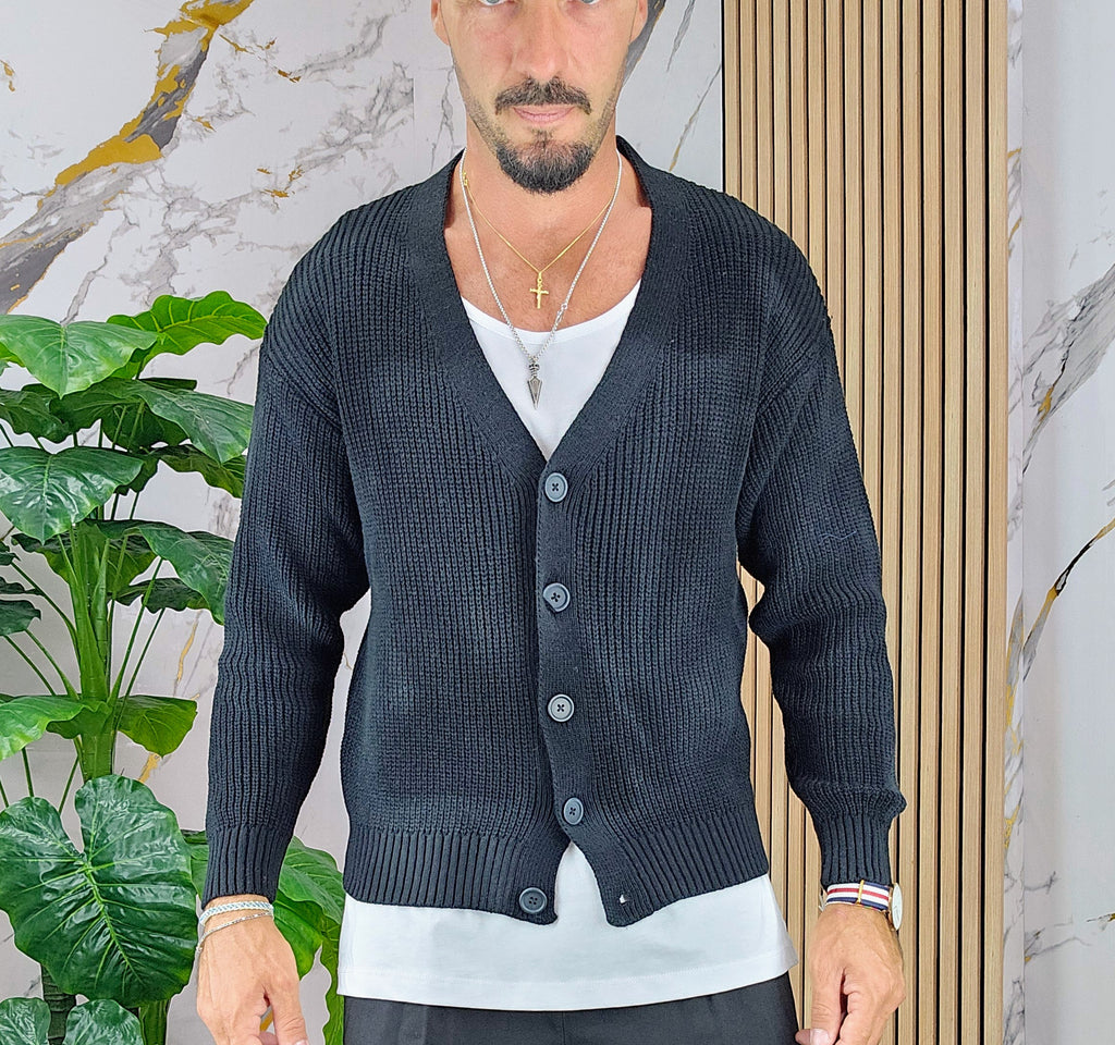 Cardigan slim fit con sfumature a contrasto con chiusura a bottoni centrale dalla S alla XXL, il modello in foto è alto 1.82x76kg è indossa una taglia S.Prodotto Made in Italy