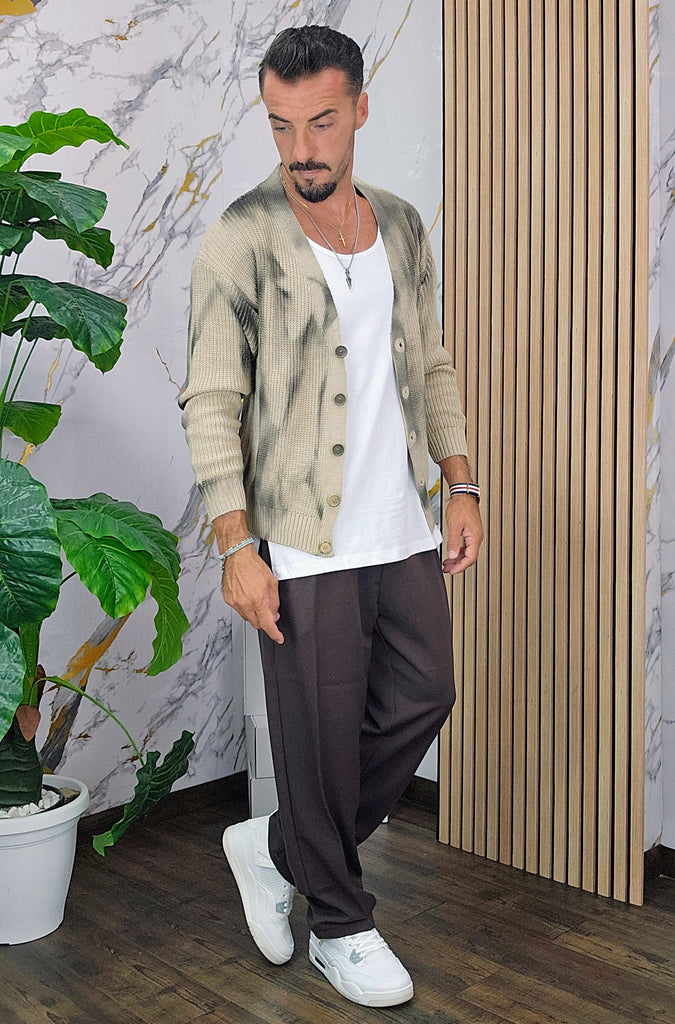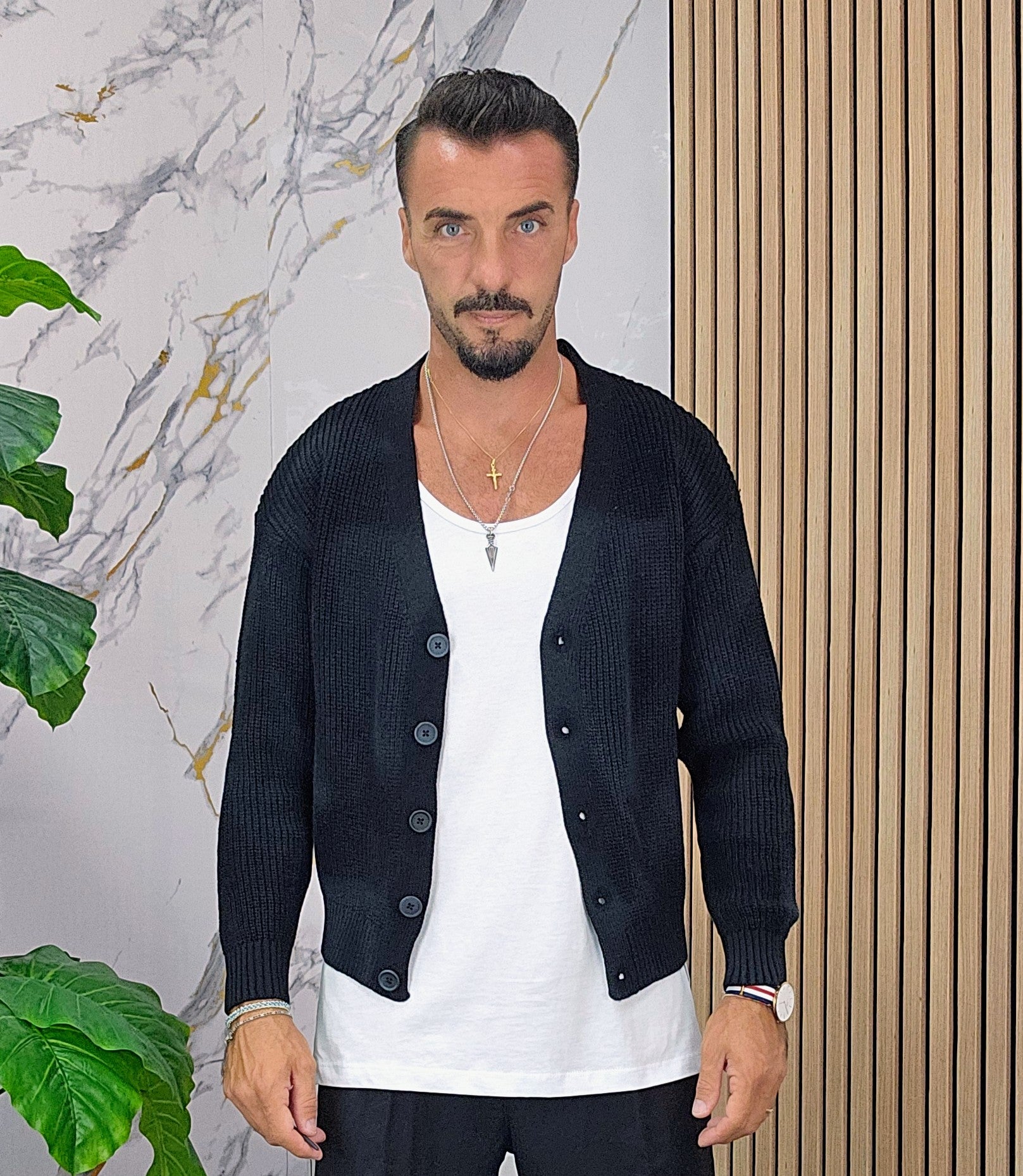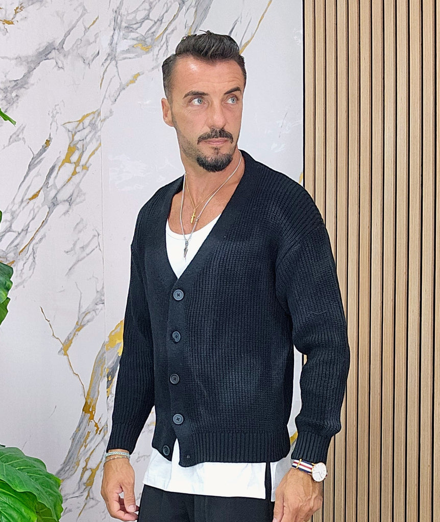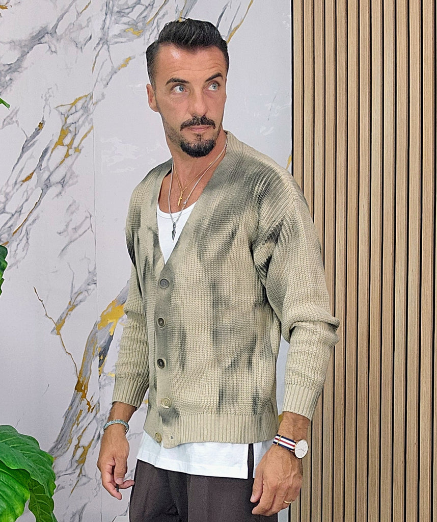 Cardigan slim fit con sfumature a contrasto con chiusura a bottoni centrale dalla S alla XXL, il modello in foto è alto 1.82x76kg è indossa una taglia S.Prodotto Made in Italy