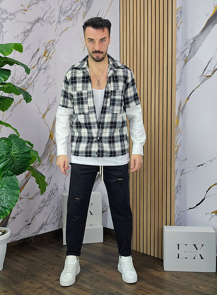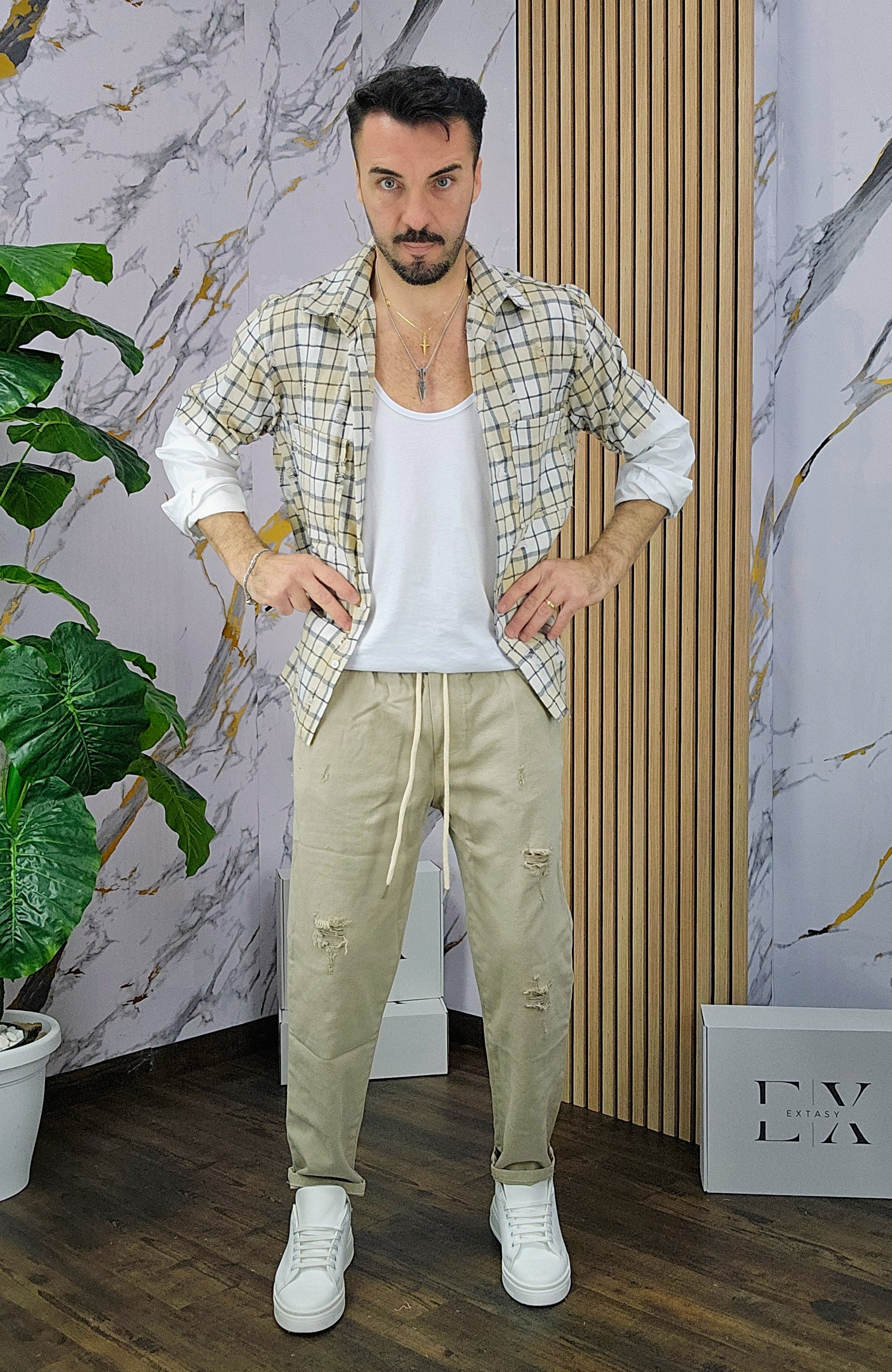 Coordinato composto da camicione e pantuta jeans dalla S alla XXL vestibilità comoda, il modello in foto è alto 1.82x76kg è indossa una taglia S.Prodotto Made in Italy