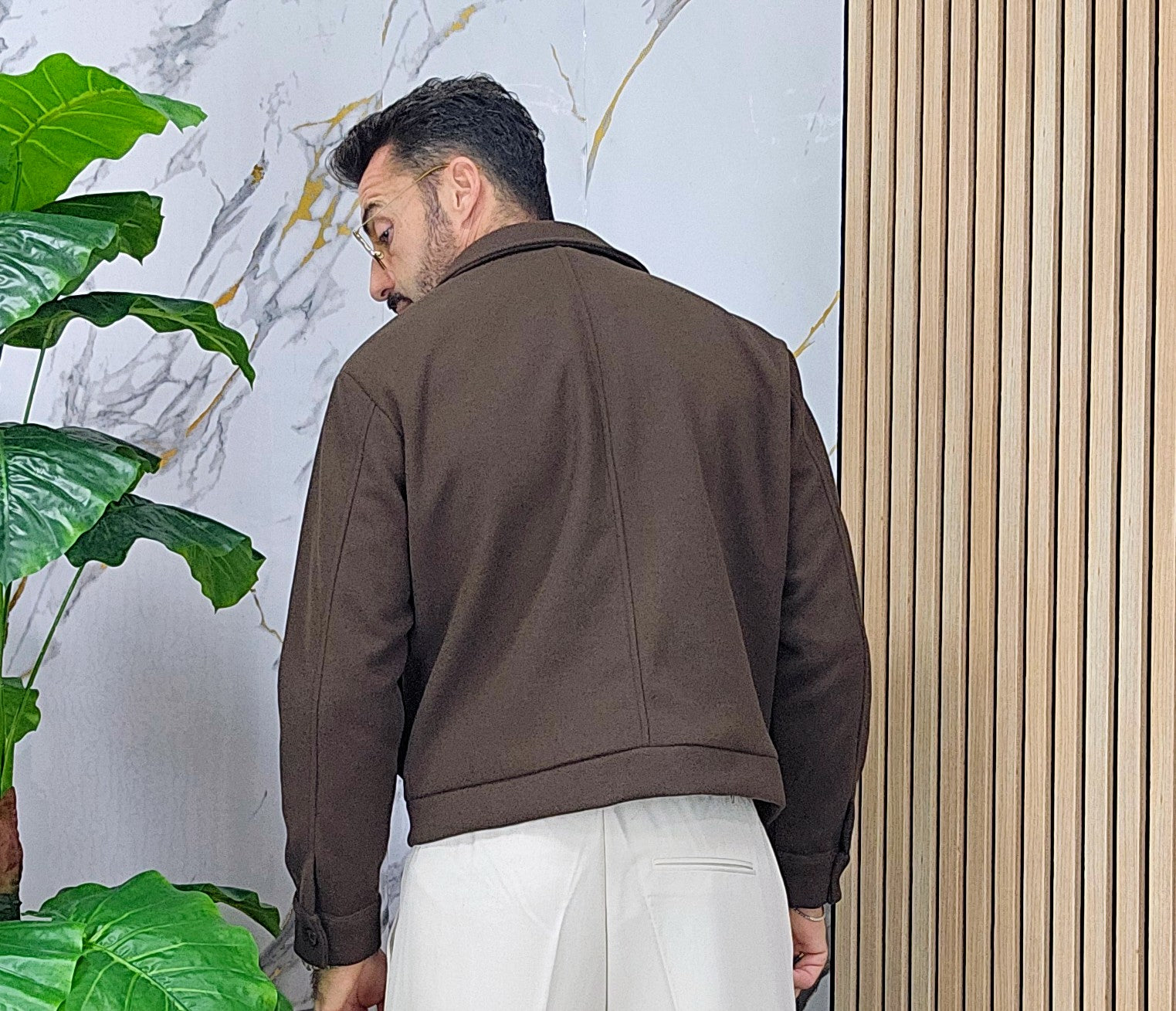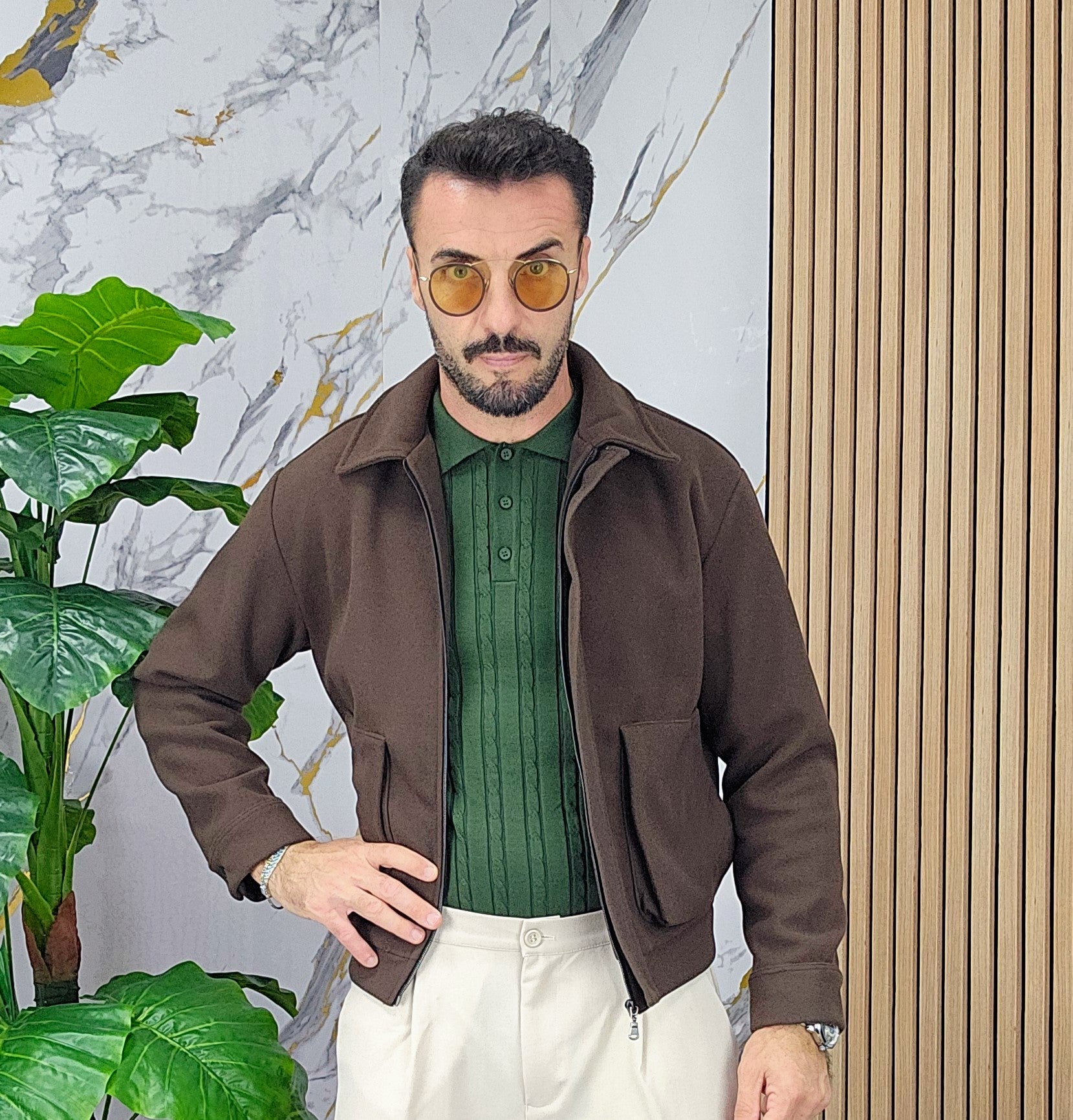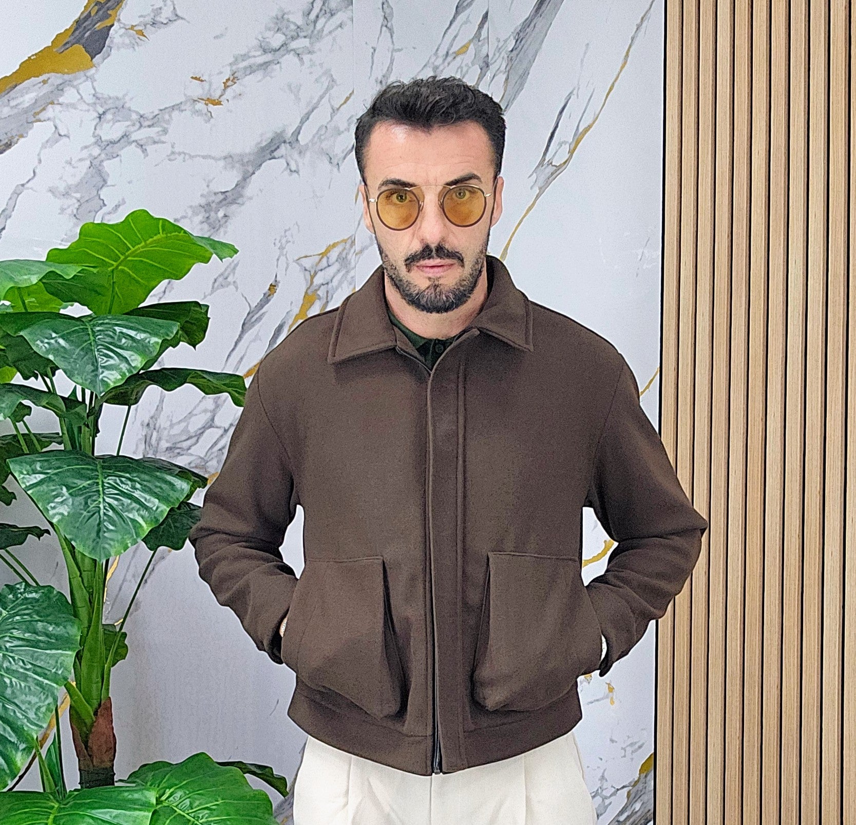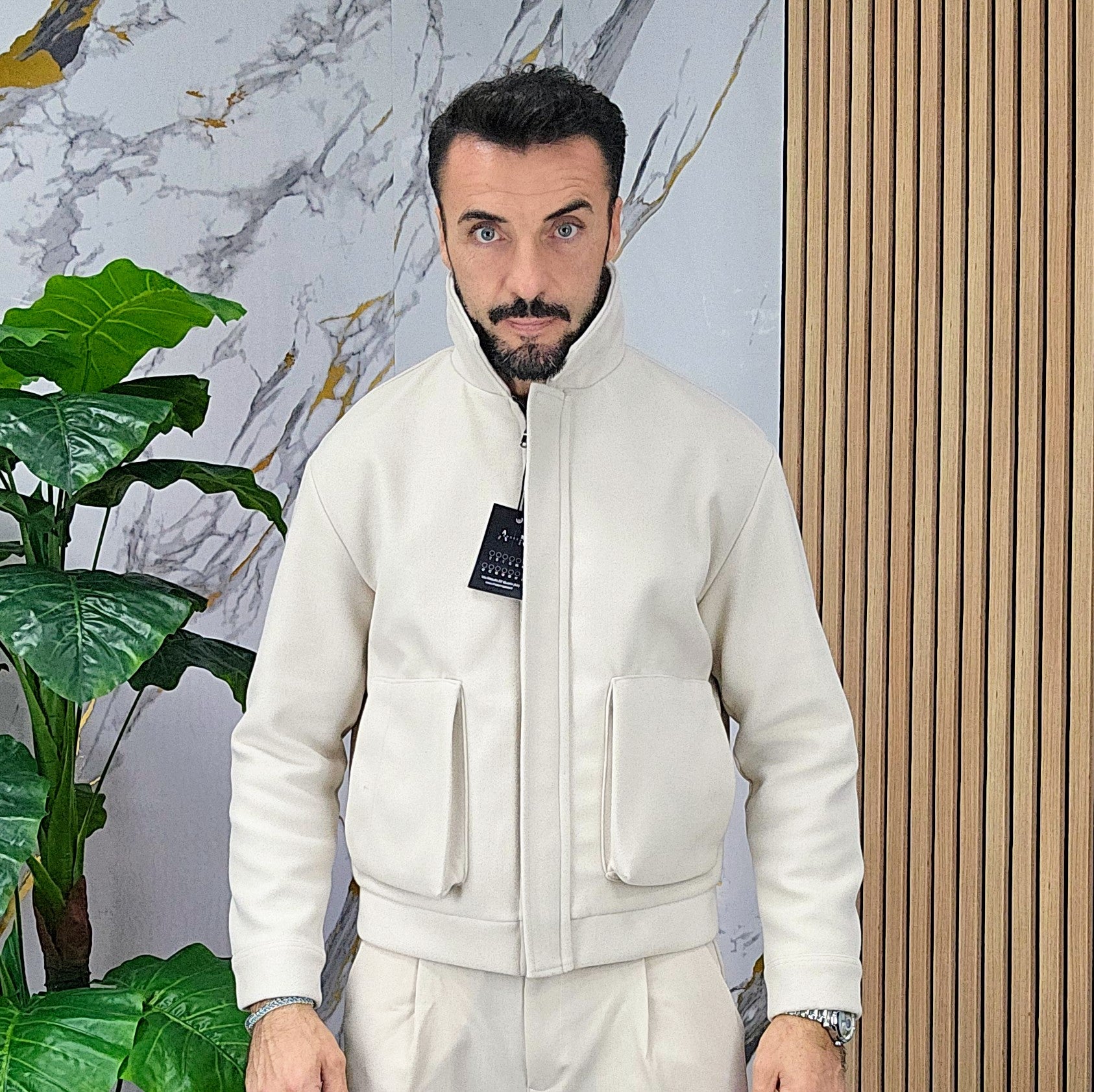 Giubbino dalla vestibilità comoda foderato all'interno tessuto in panno caldo chiusura zip centrale 2 tasche laterali collo alla francese dalla S alla XXL, il modello in foto è alto 1.82x76kg è indossa una taglia S.Prodotto Made in Italy