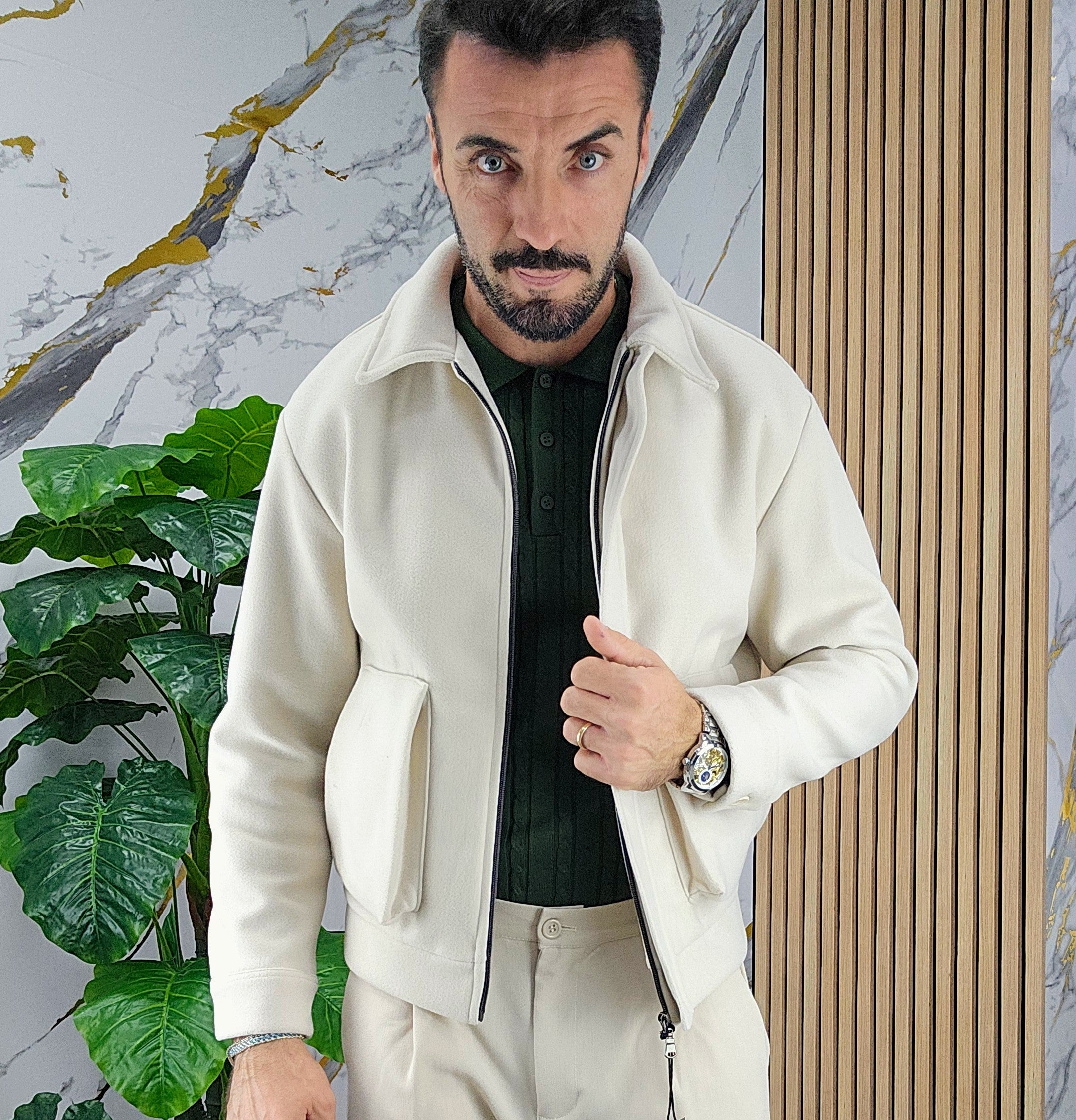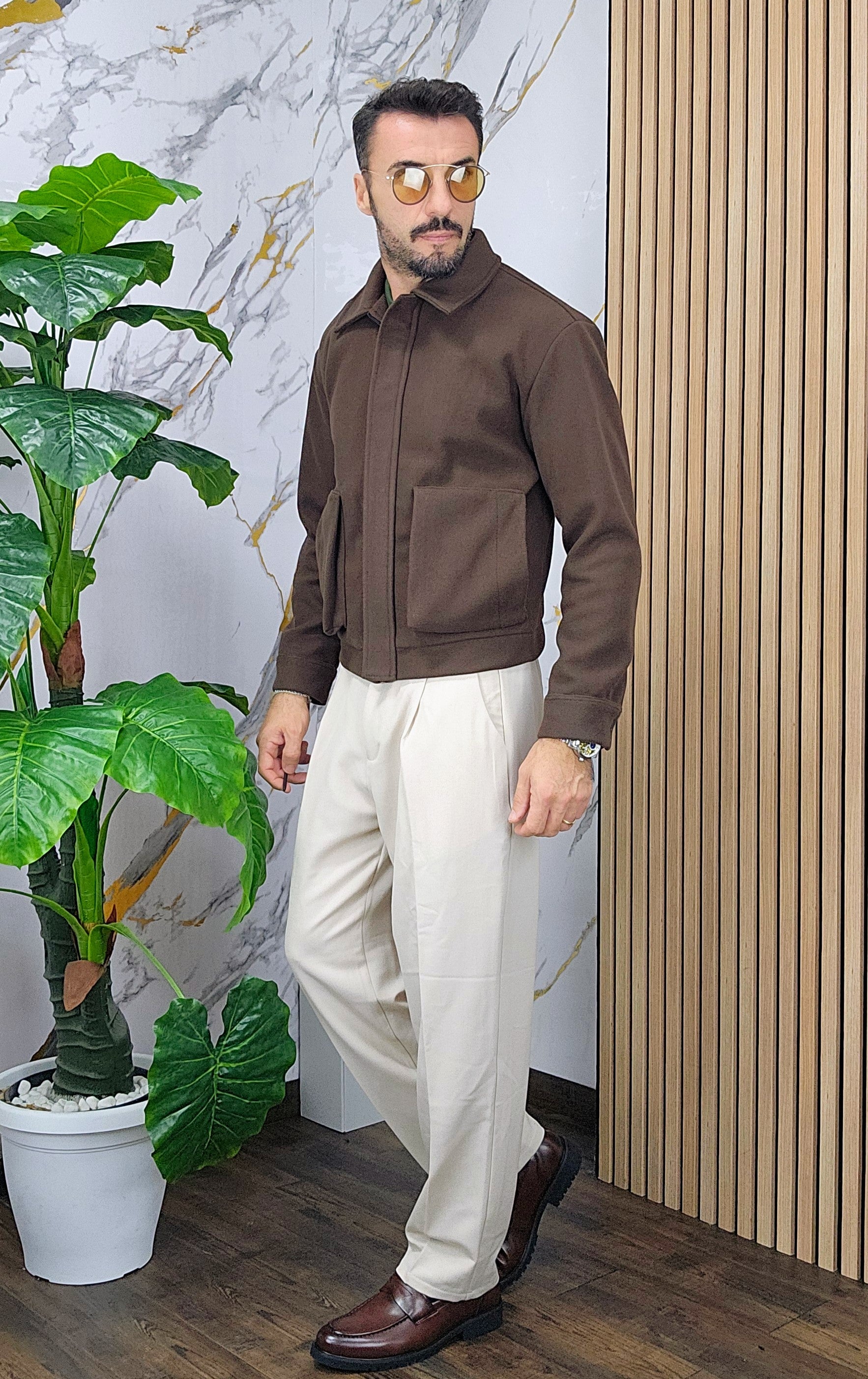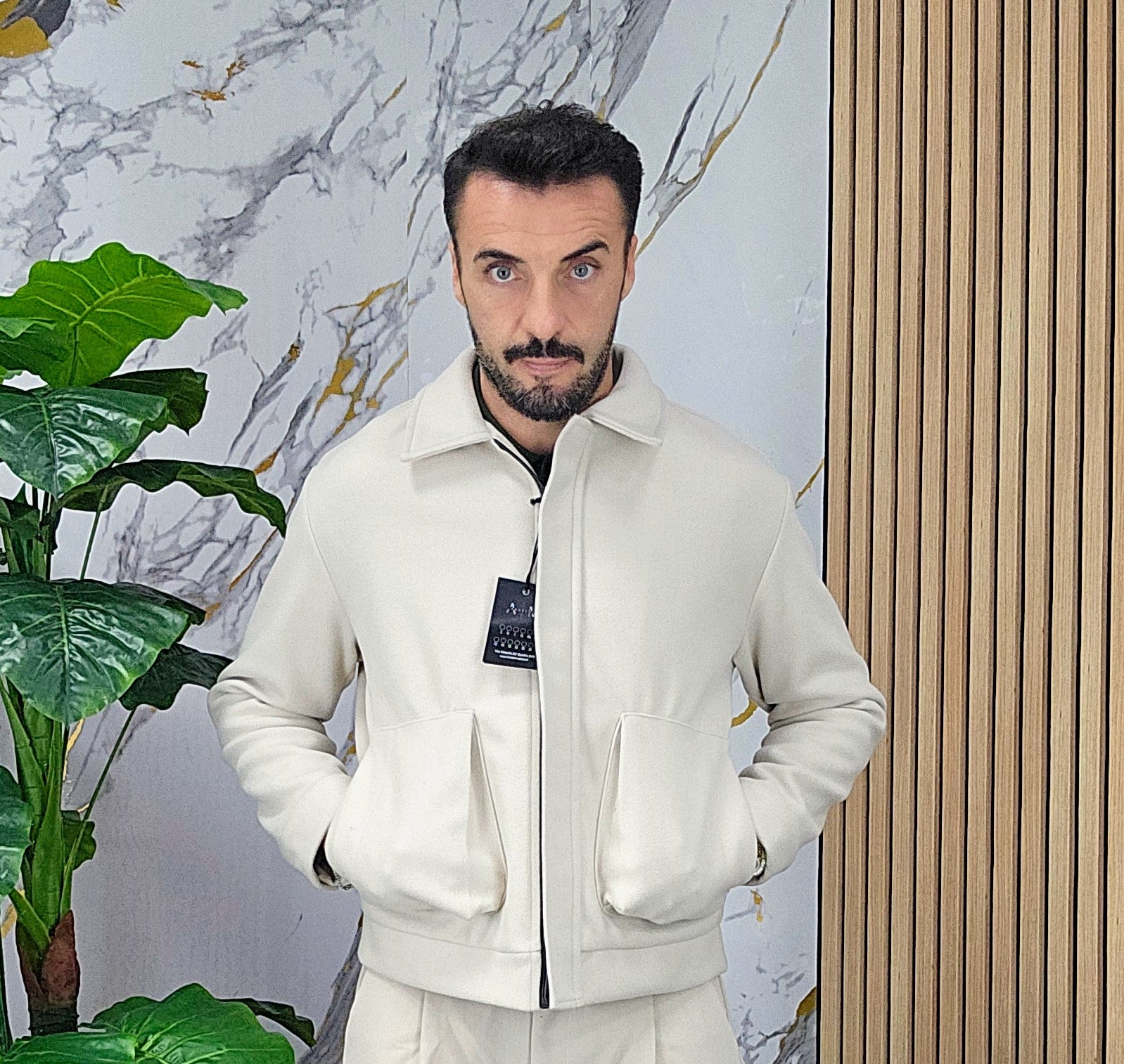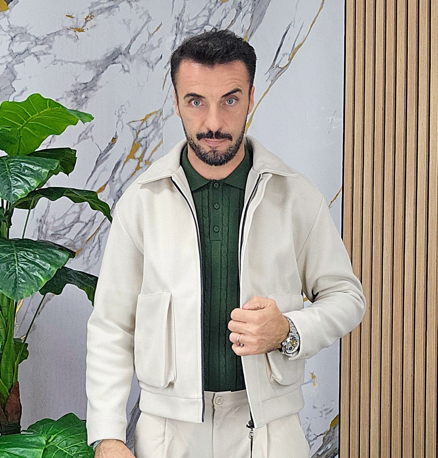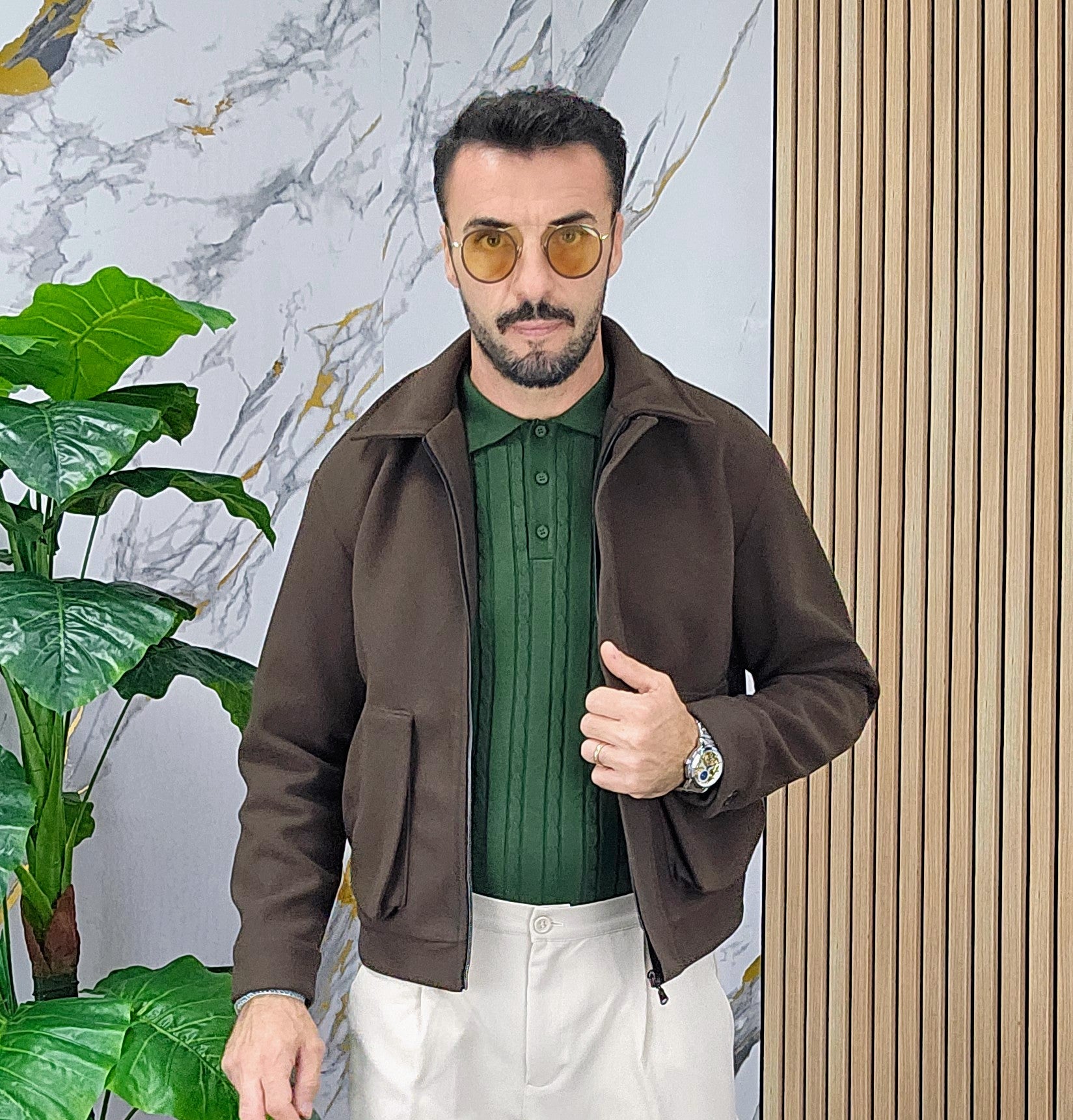 Giubbino dalla vestibilità comoda foderato all'interno tessuto in panno caldo chiusura zip centrale 2 tasche laterali collo alla francese dalla S alla XXL, il modello in foto è alto 1.82x76kg è indossa una taglia S.Prodotto Made in Italy
