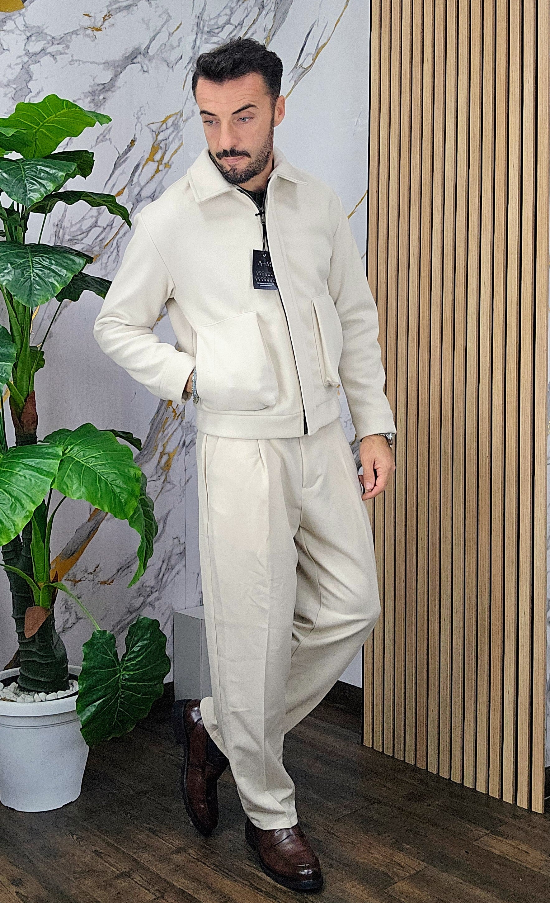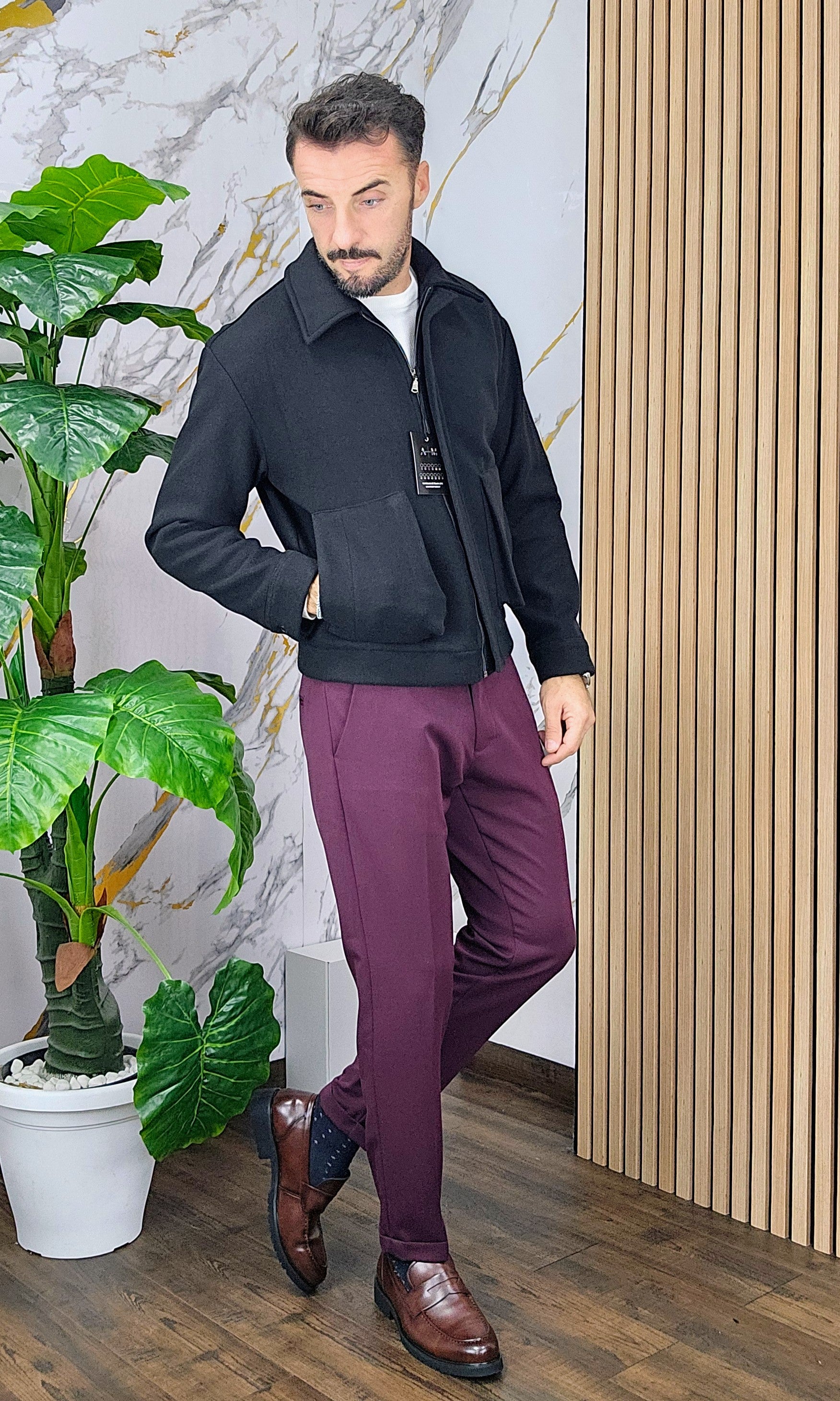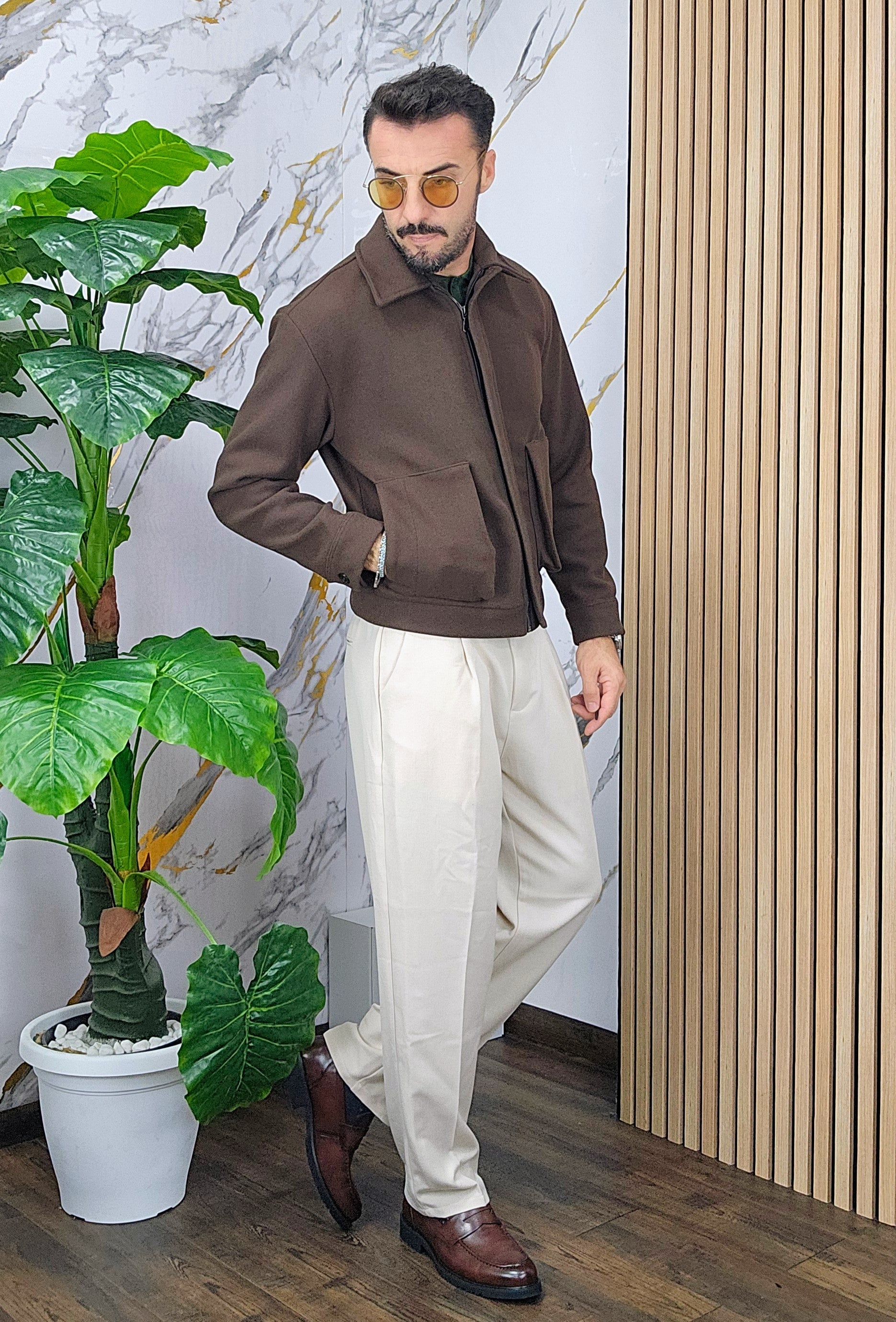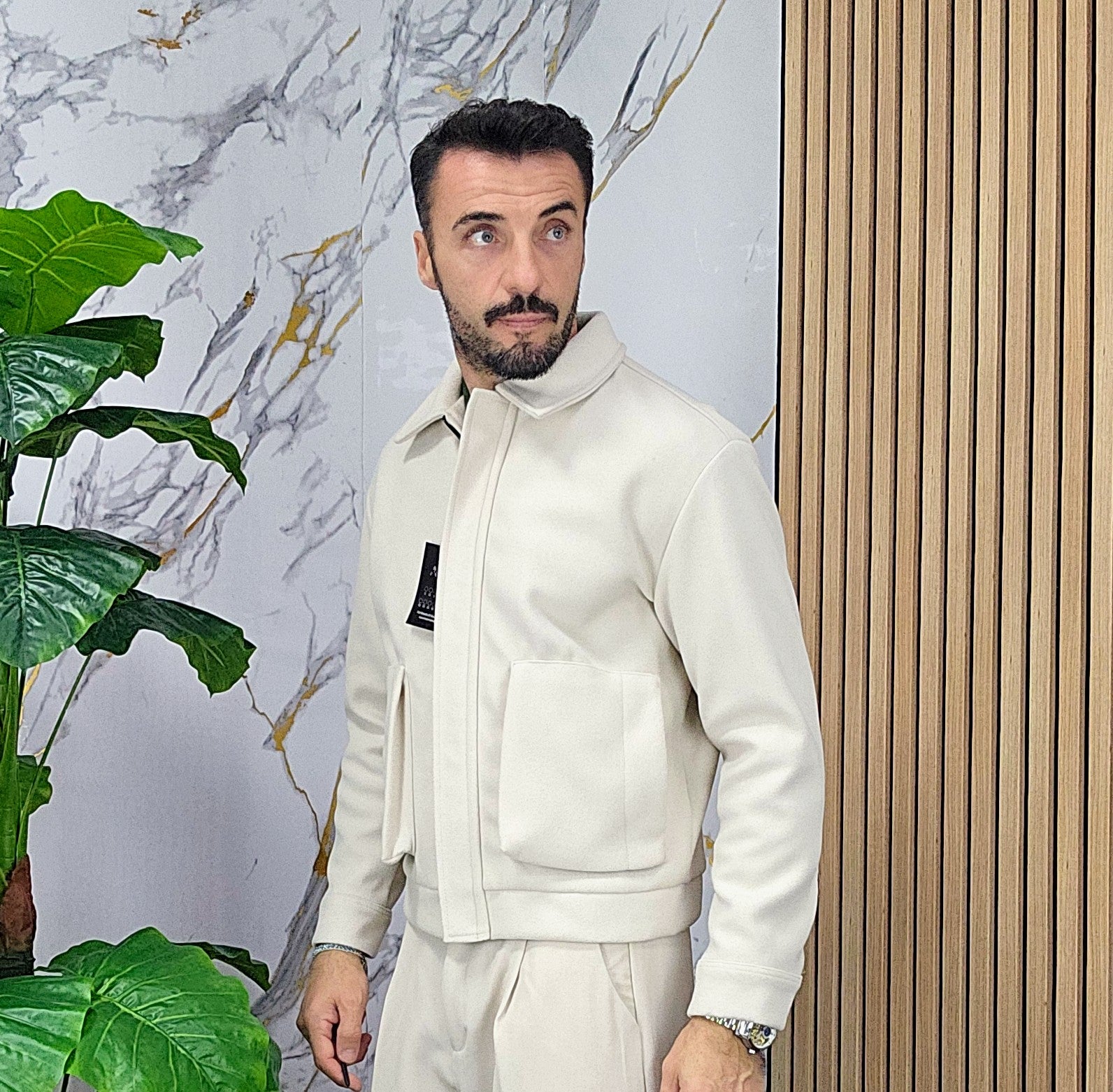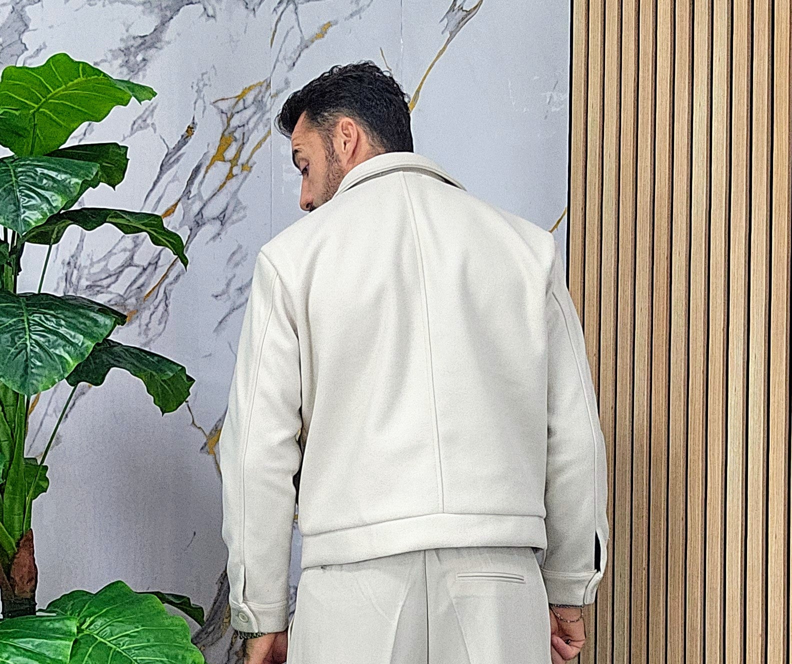 Giubbino dalla vestibilità comoda foderato all'interno tessuto in panno caldo chiusura zip centrale 2 tasche laterali collo alla francese dalla S alla XXL, il modello in foto è alto 1.82x76kg è indossa una taglia S.Prodotto Made in Italy