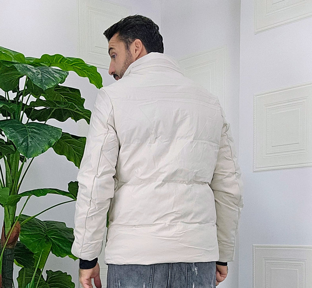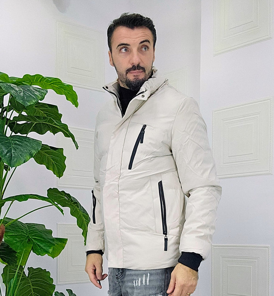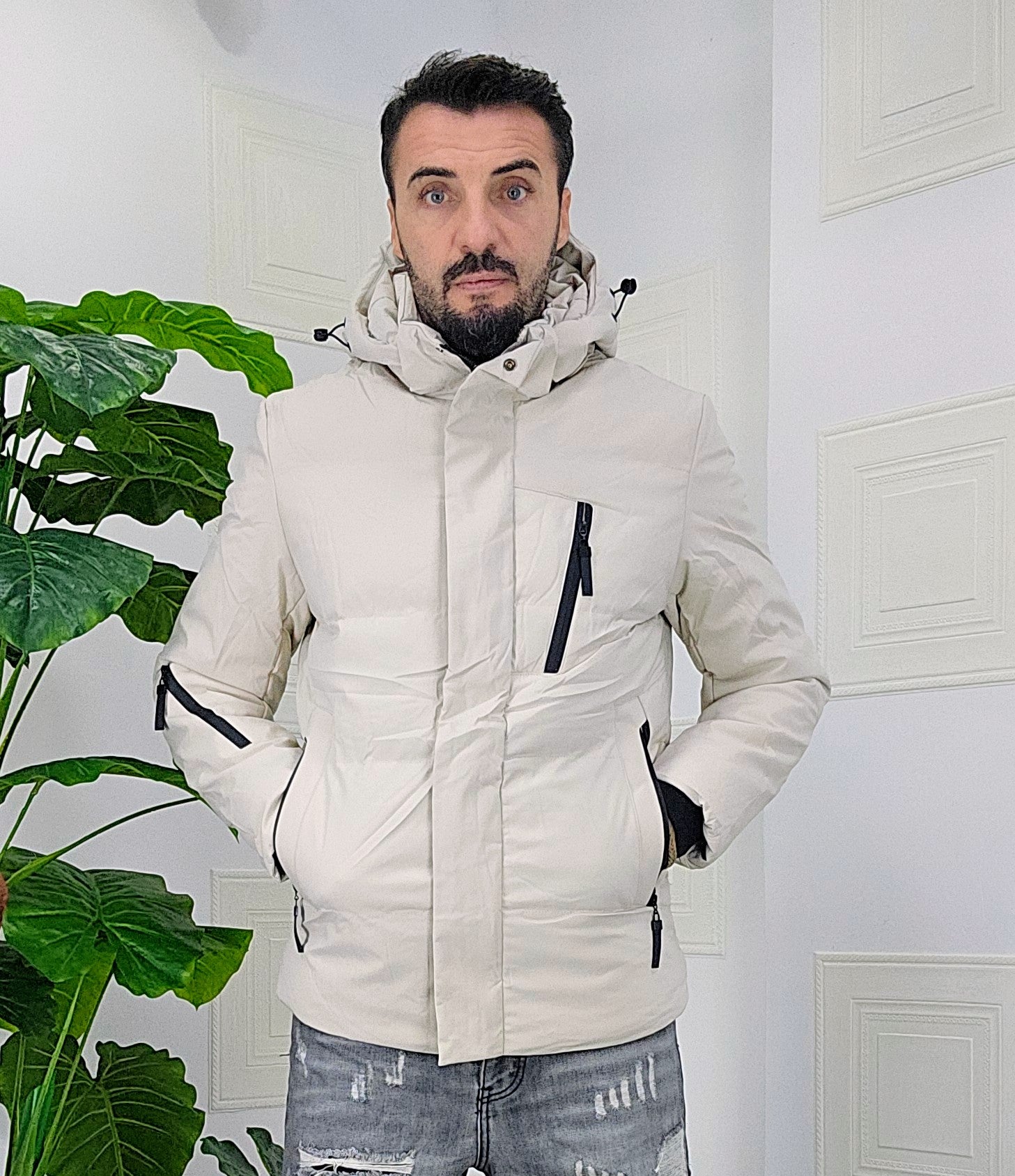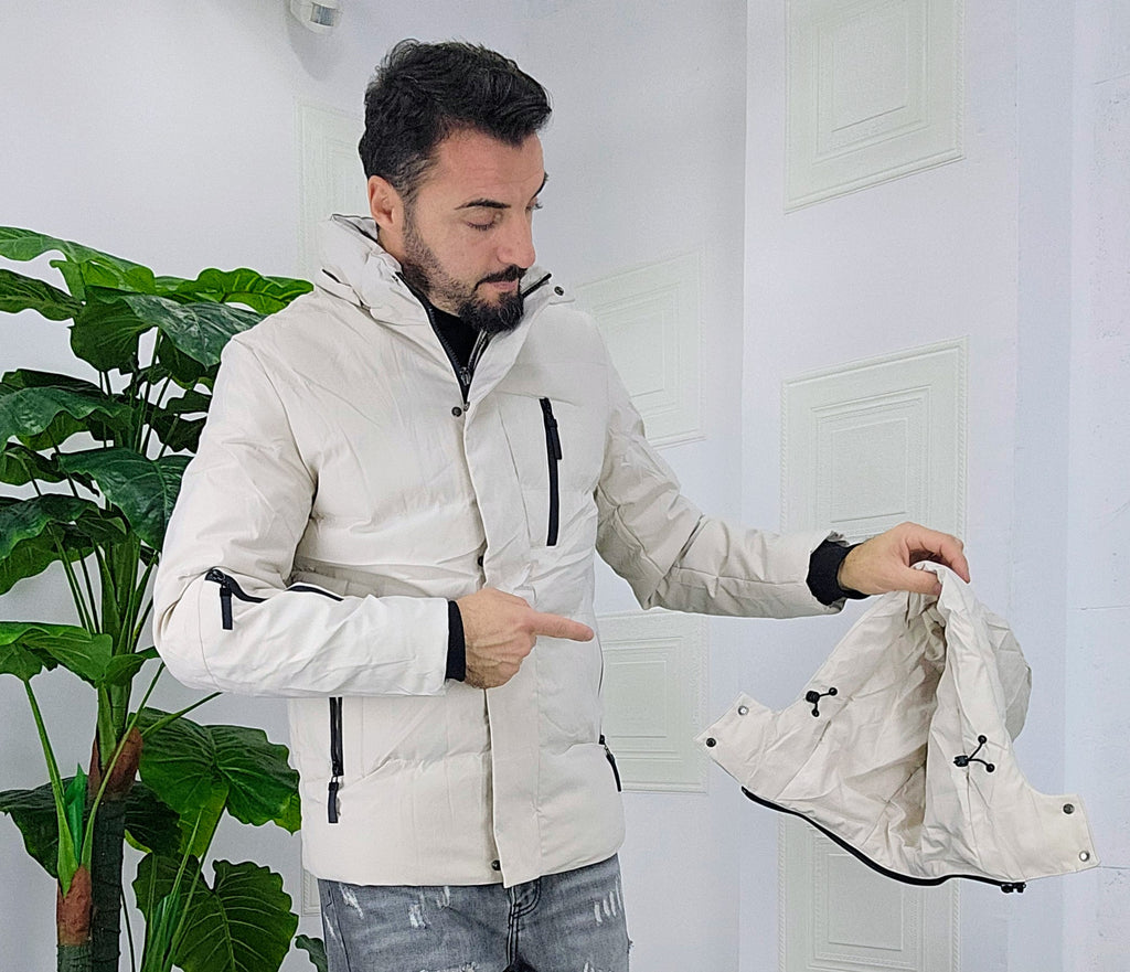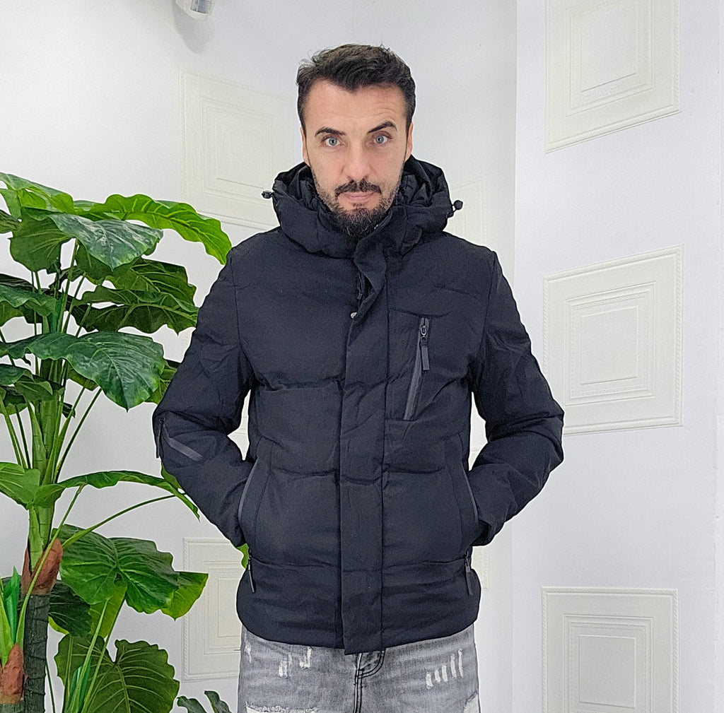 Giubbino imbottito con chiusura a zip chiusura a ciappa con 2 tasche laterali una tasca al petto taschino sul braccio taschino all'interno cappuccio estraibile regolabile cappuccio con chiusura a ciappa a scomparsa dalla M alla XXXL, il modello in foto è alto 1.82x76kg è indossa una taglia M.Prodotto Made in Italy