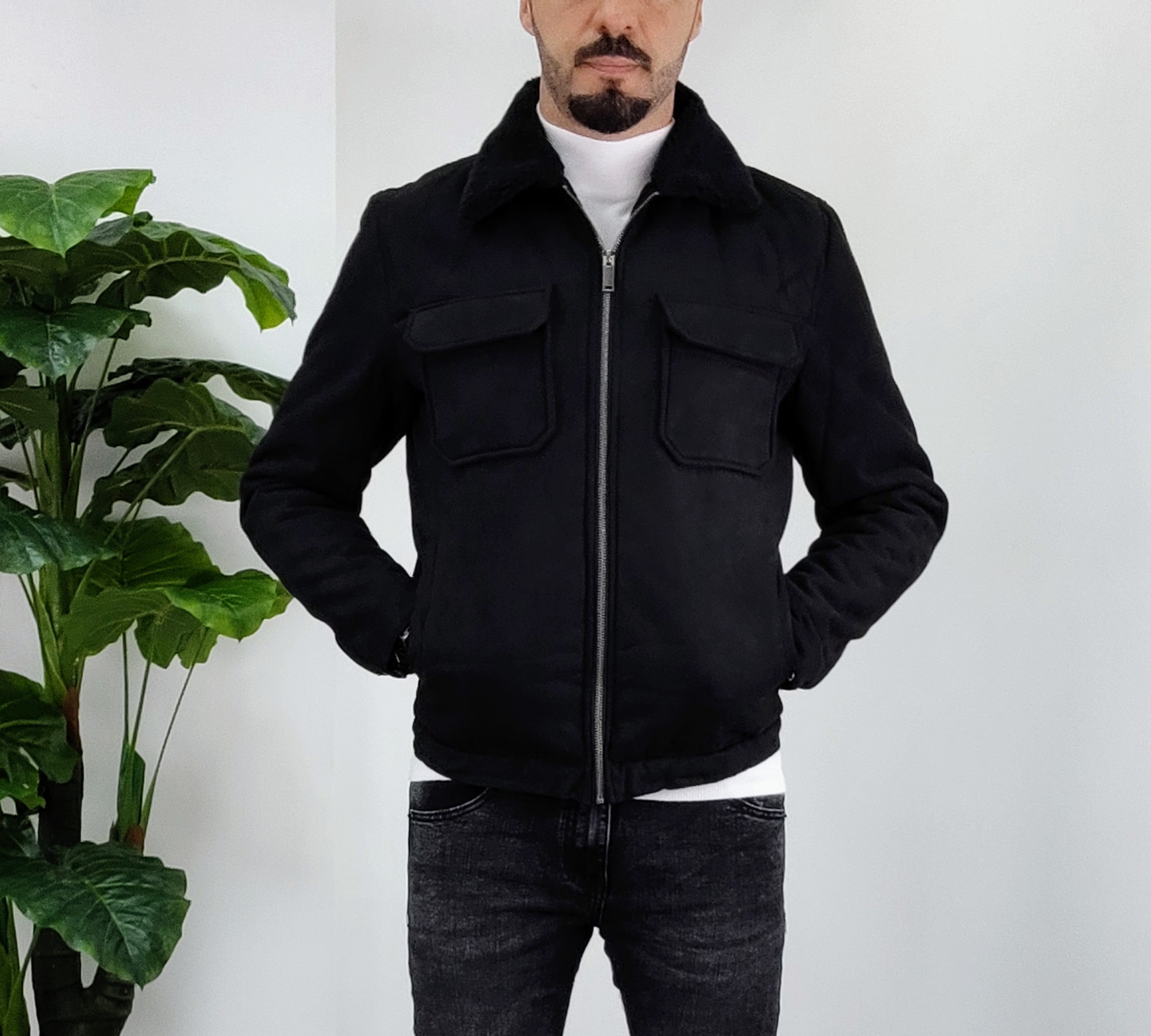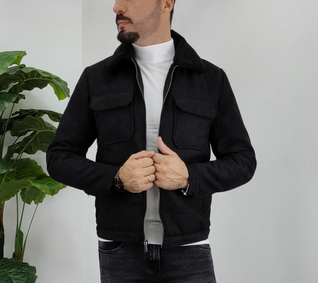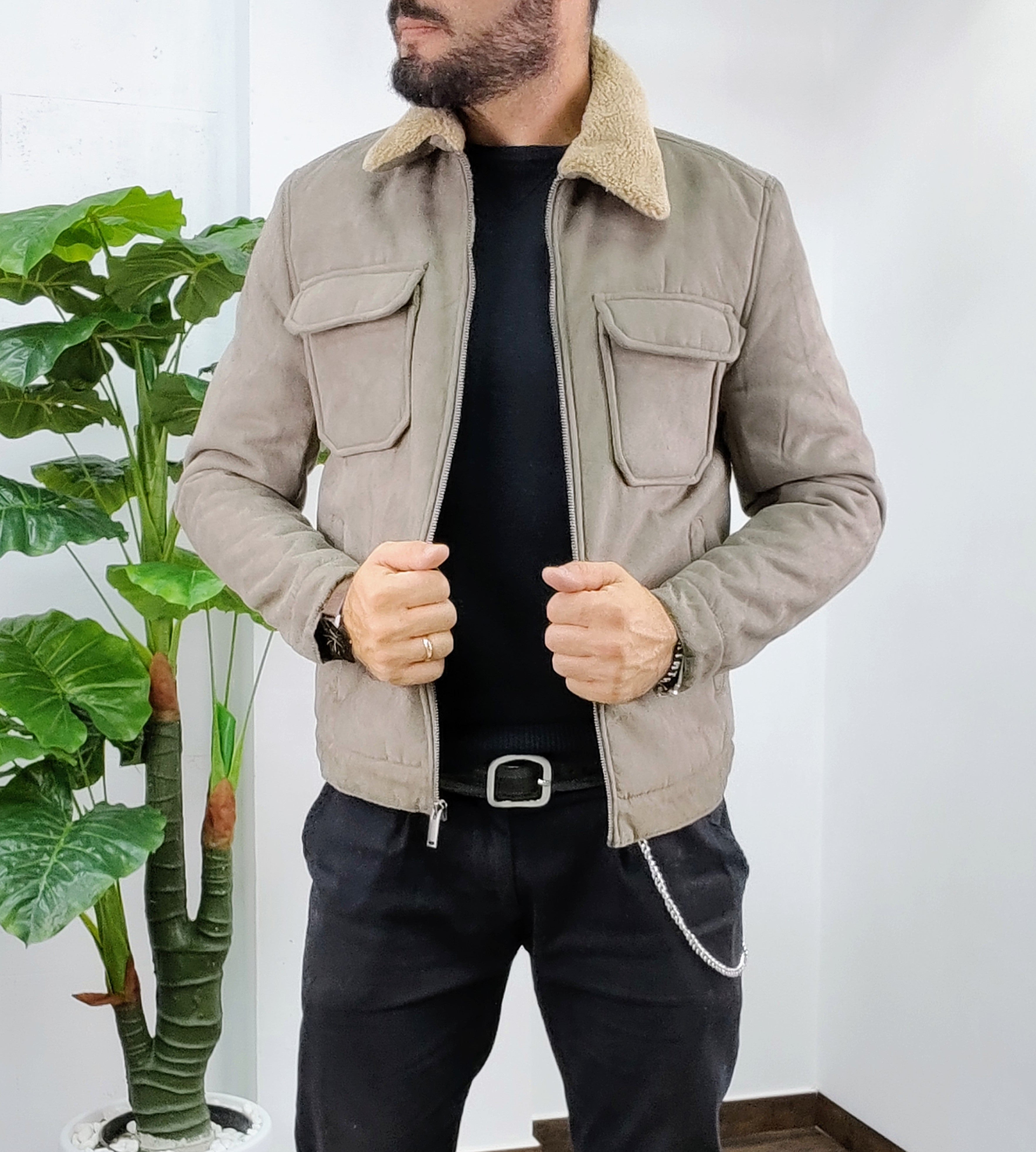 Montone in velluto all'esterno con chiusura a zip 2 tasche laterali chiusura ciappa 2 tasche al petto chiusura a ciappa pelliccia collo imbottito all'interno dalla M alla XXL, il modello in foto è alto 1.82x76kg è indossa una taglia M.Prodotto Made in Italy