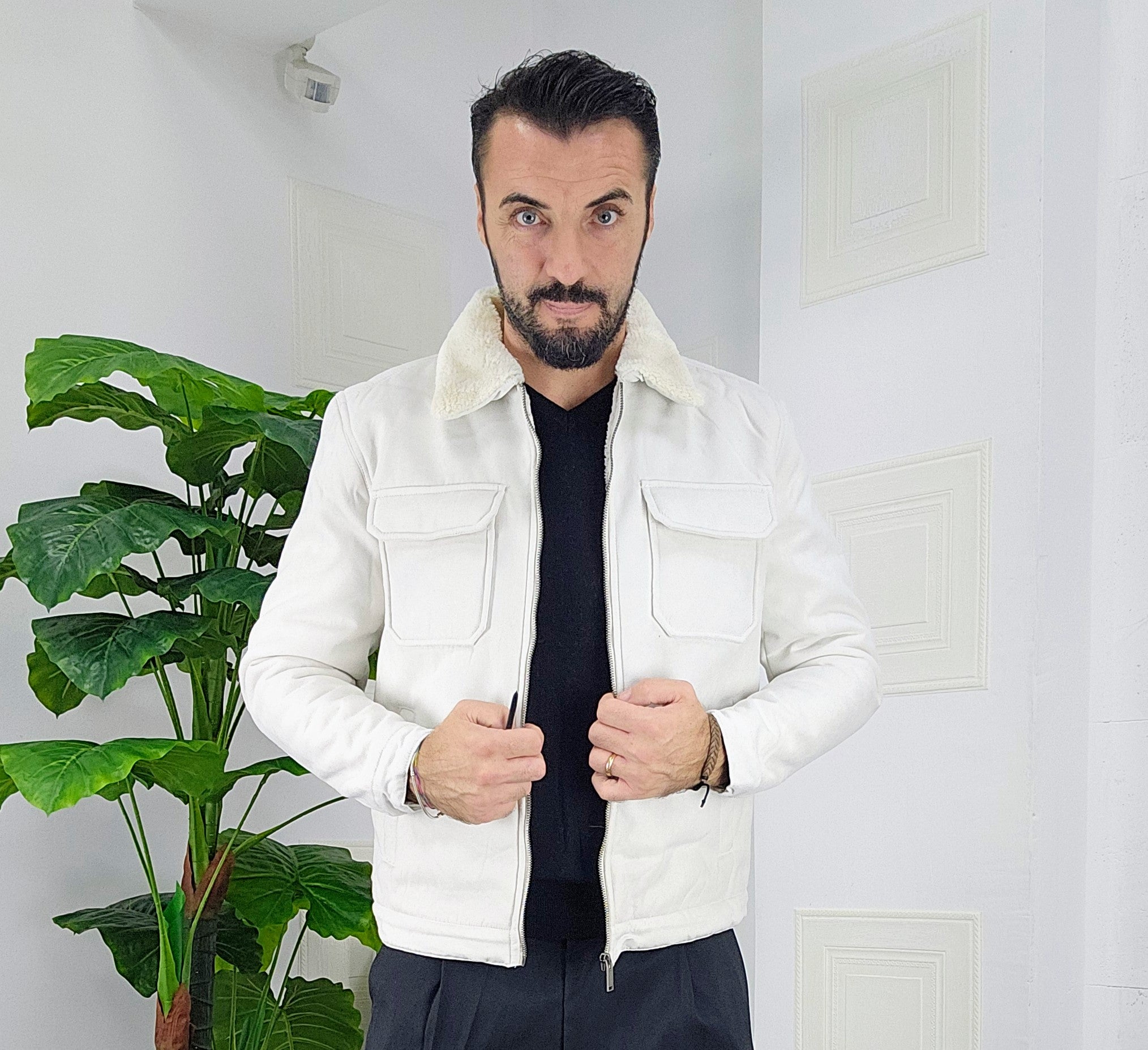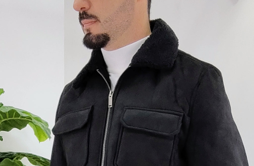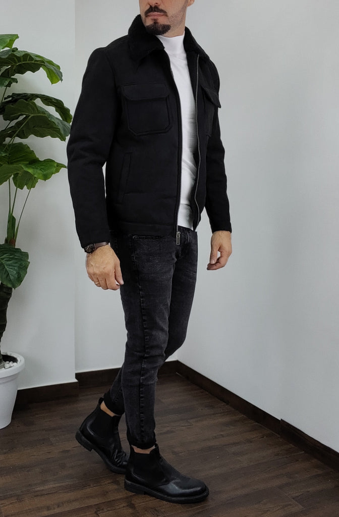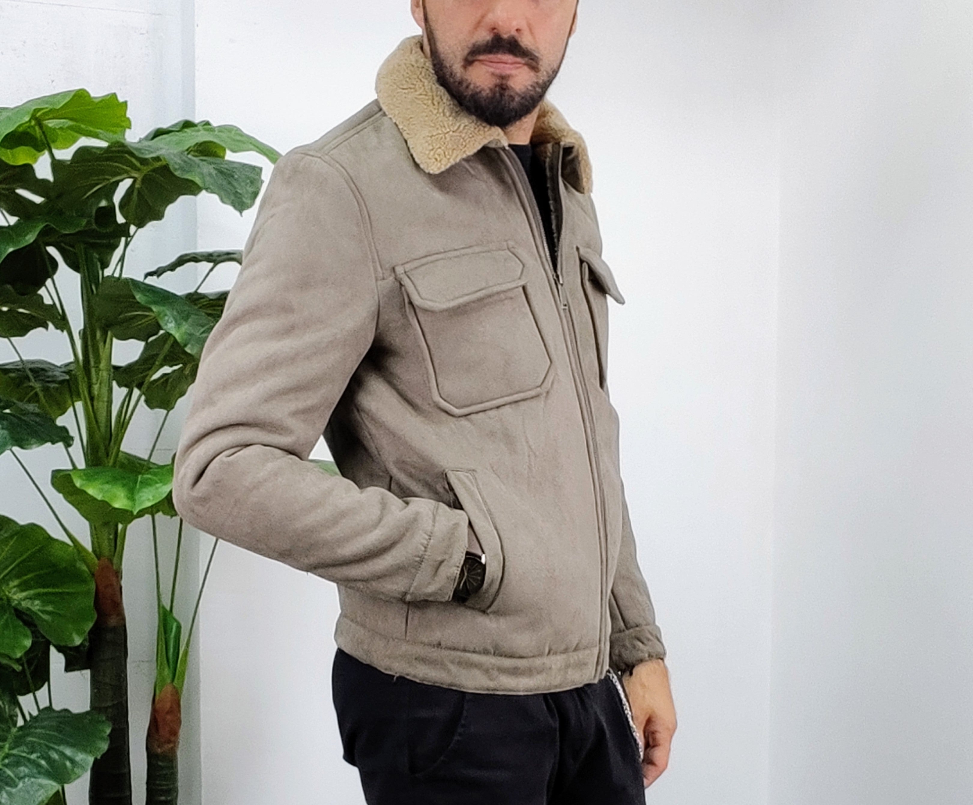 Montone in velluto all'esterno con chiusura a zip 2 tasche laterali chiusura ciappa 2 tasche al petto chiusura a ciappa pelliccia collo imbottito all'interno dalla M alla XXL, il modello in foto è alto 1.82x76kg è indossa una taglia M.Prodotto Made in Italy