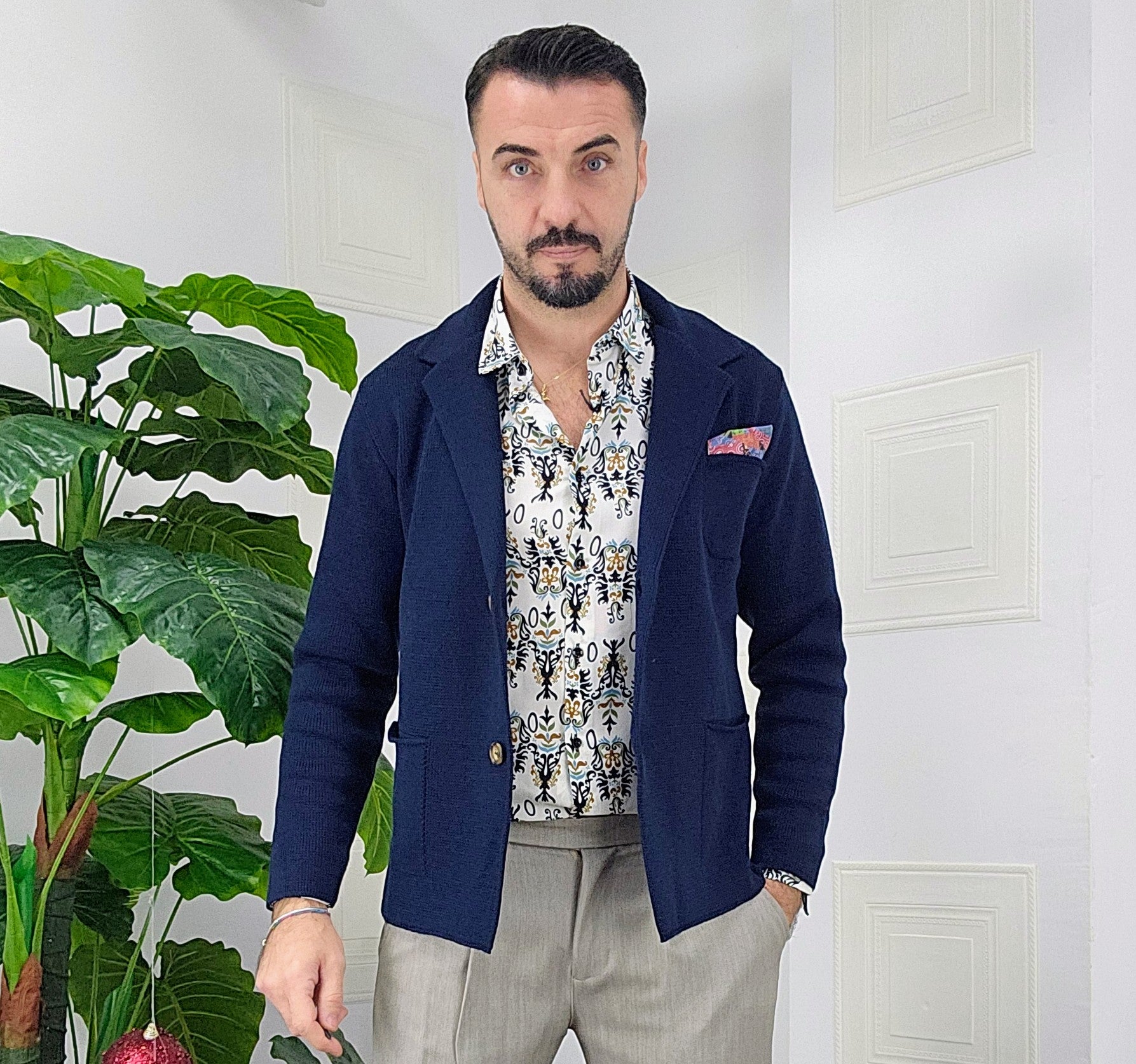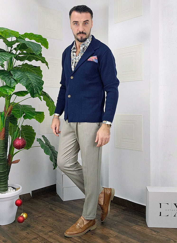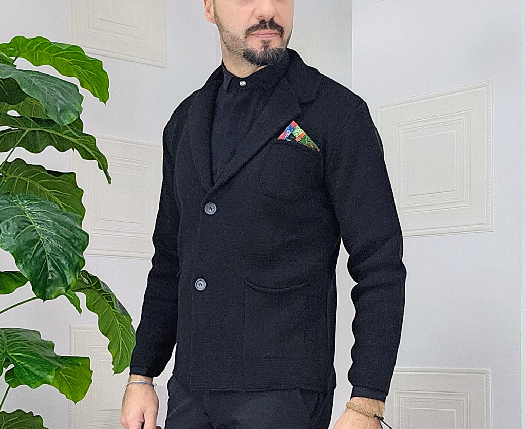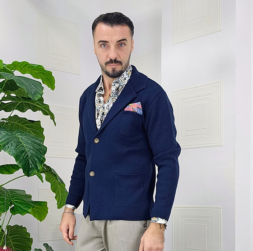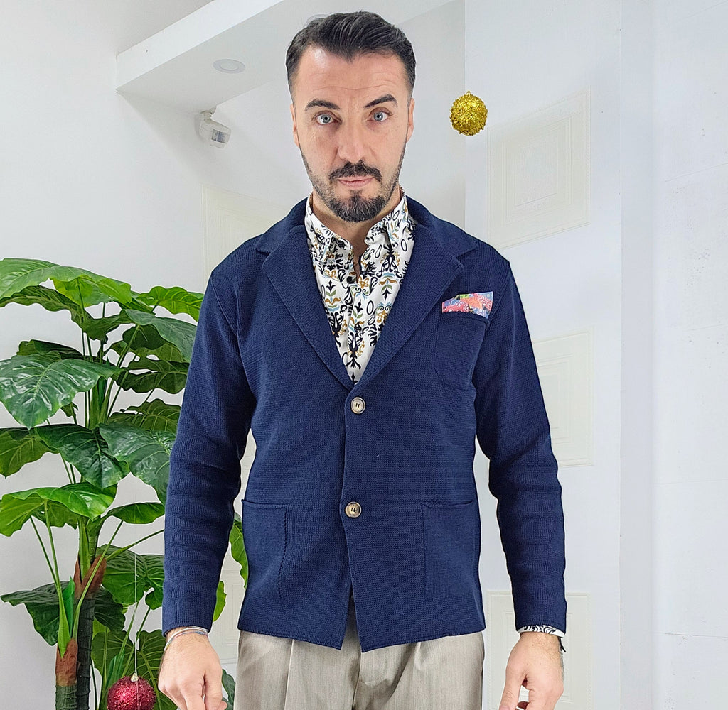 Giacca vestibilità regolare chiusura 2 bottoni con 30% di lana fazzolettino in omaggio dalla S alla XXL, il modello in foto è alto 1.82x76kg è indossa una taglia S.Prodotto Made in Italy