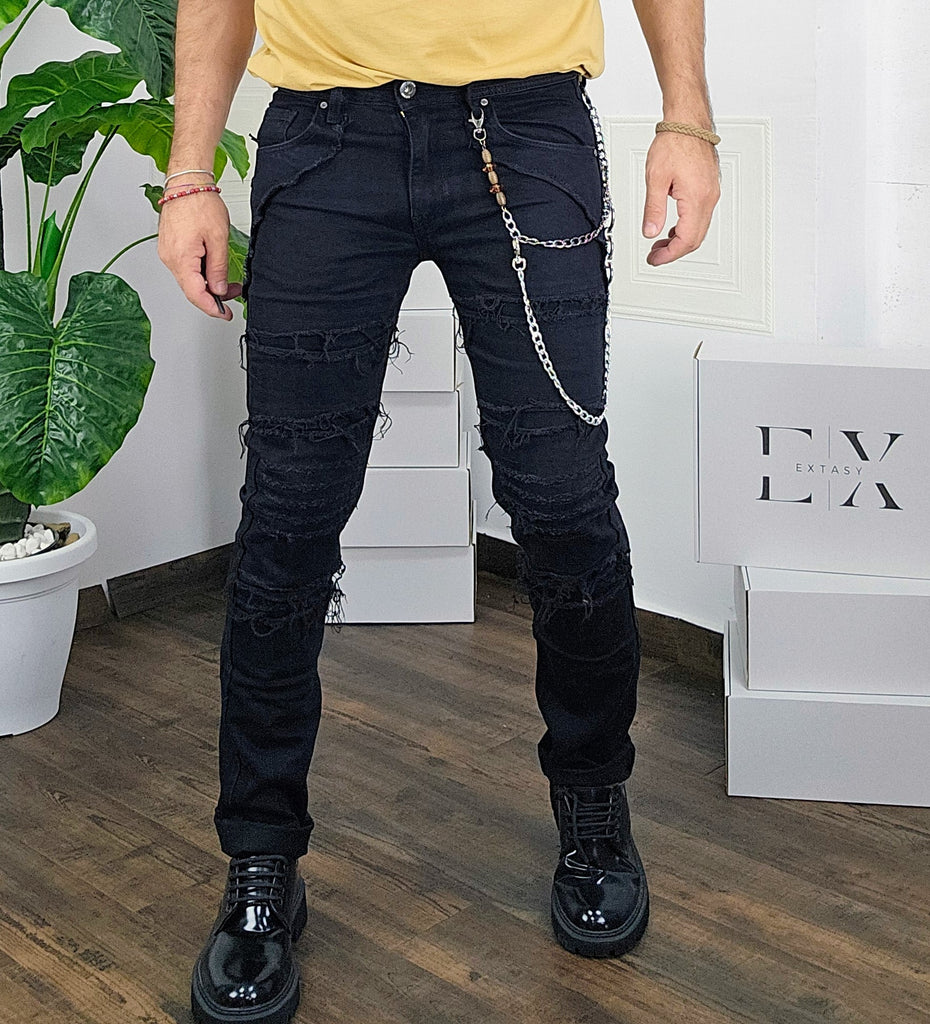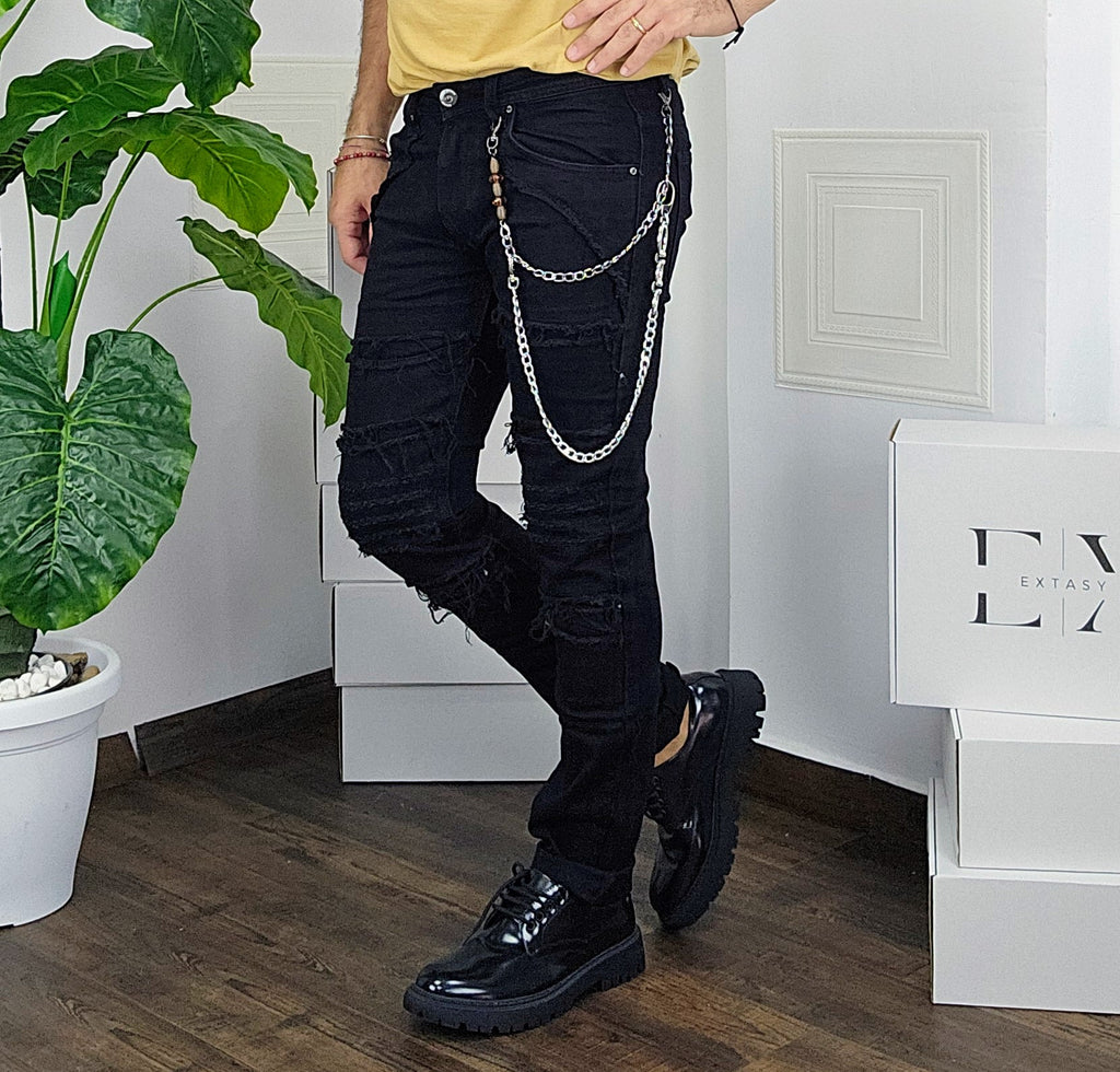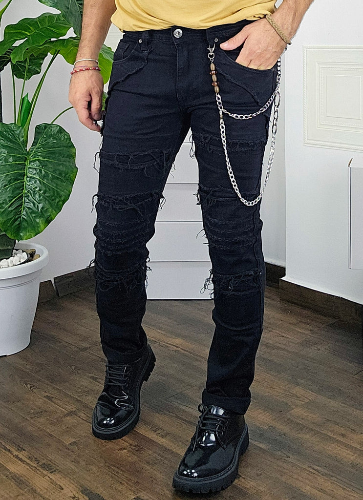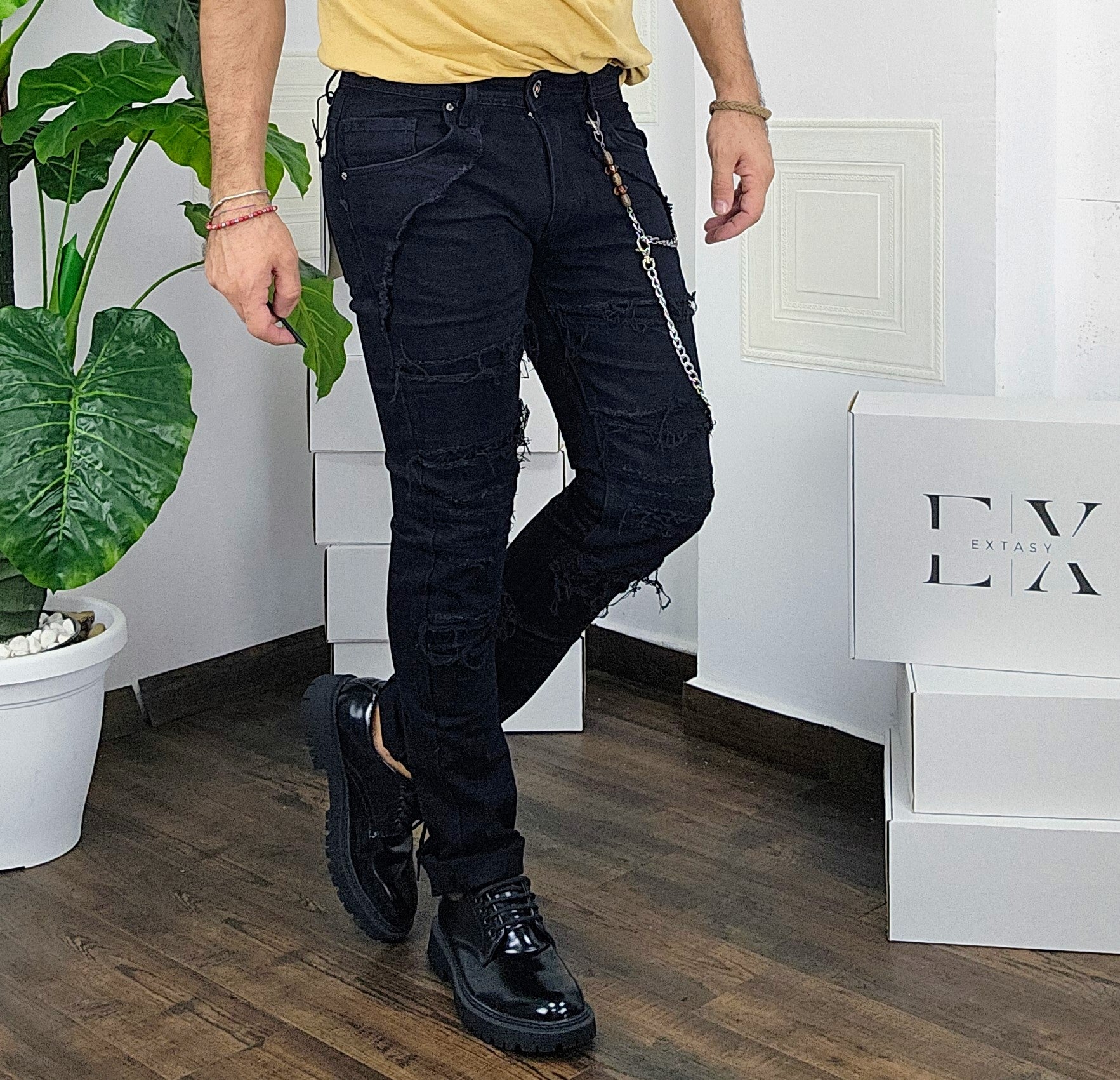 Jeans con rilievi sfrangiati vestibilità regolare elastico dalla 44 alla 54,il modello in foto è alto 1.82x76kg è indossa una taglia 46.Prodotto Made in Italy