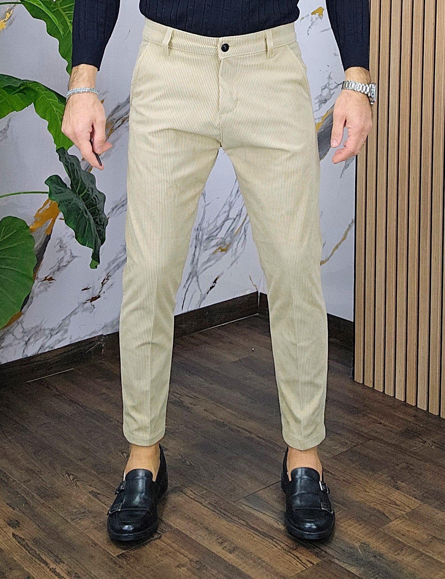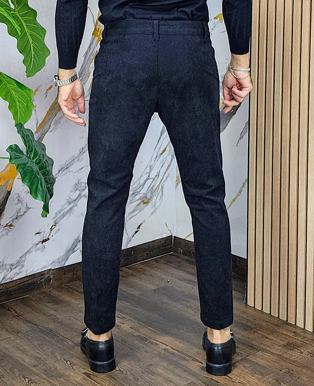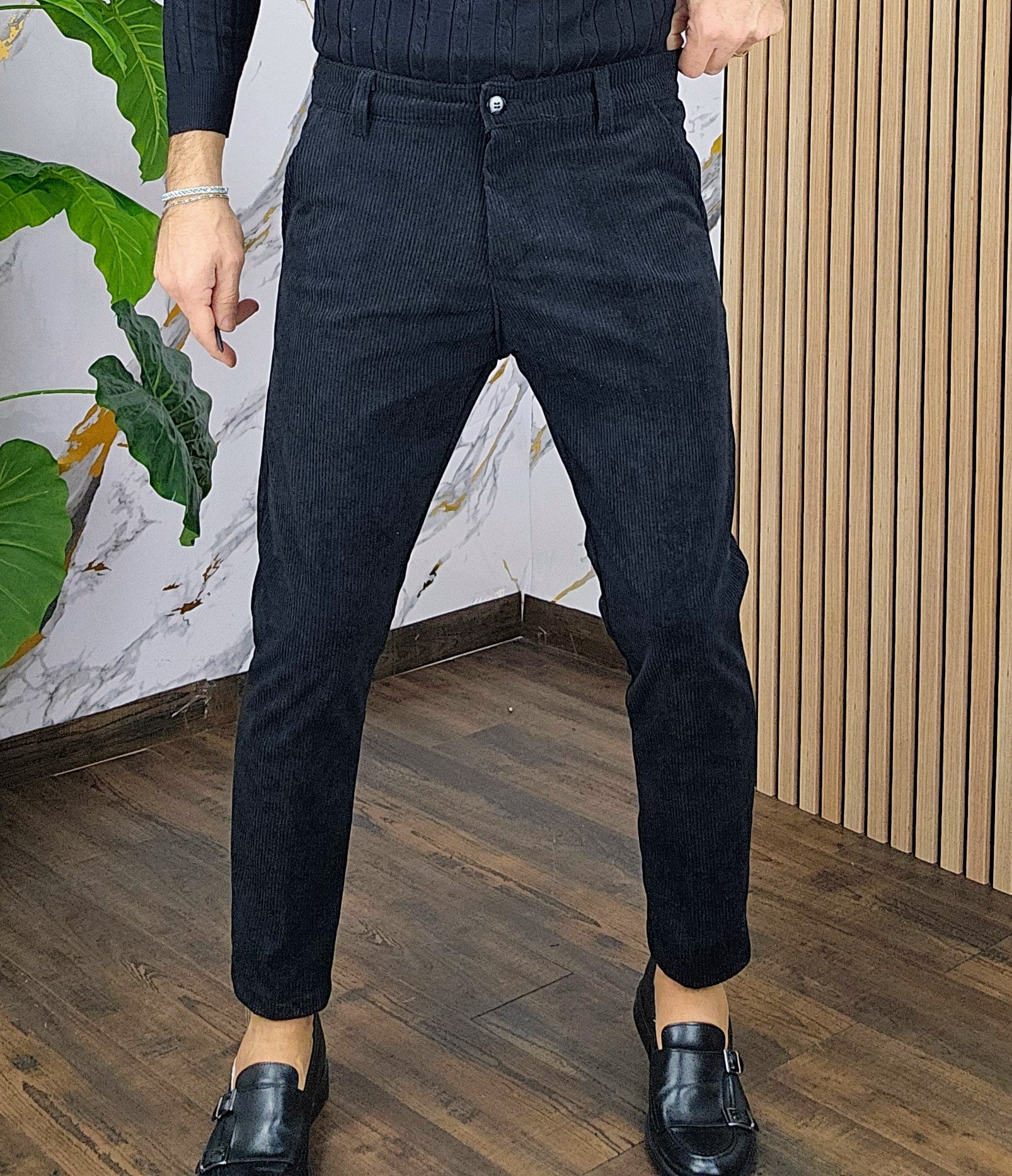 Pantalone velluto elastico comodo chiusira bottone centrale 2 tasche America dalla S alla XXL, il modello in foto è alto 1.82x76kg è indossa una taglia S.Prodotto Made in Italy