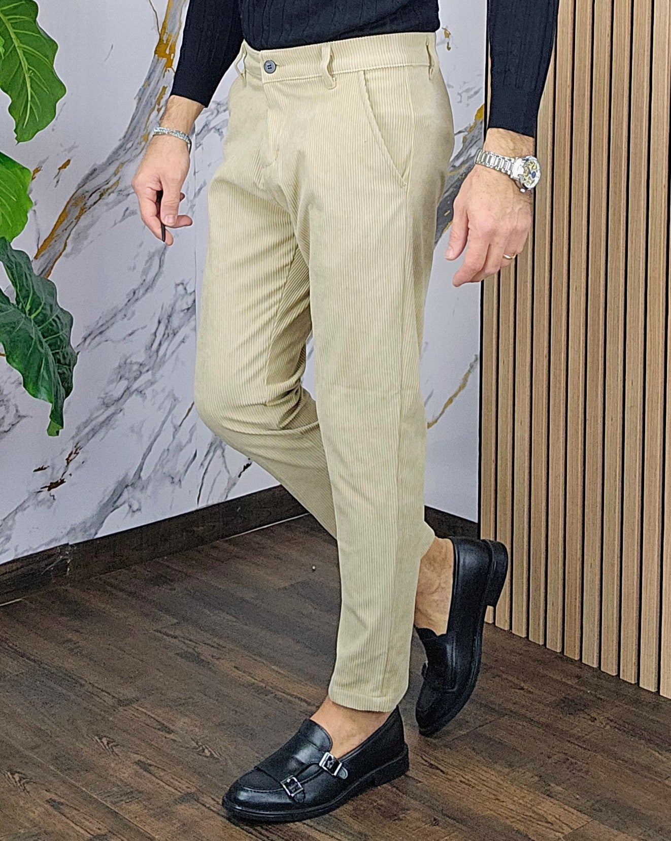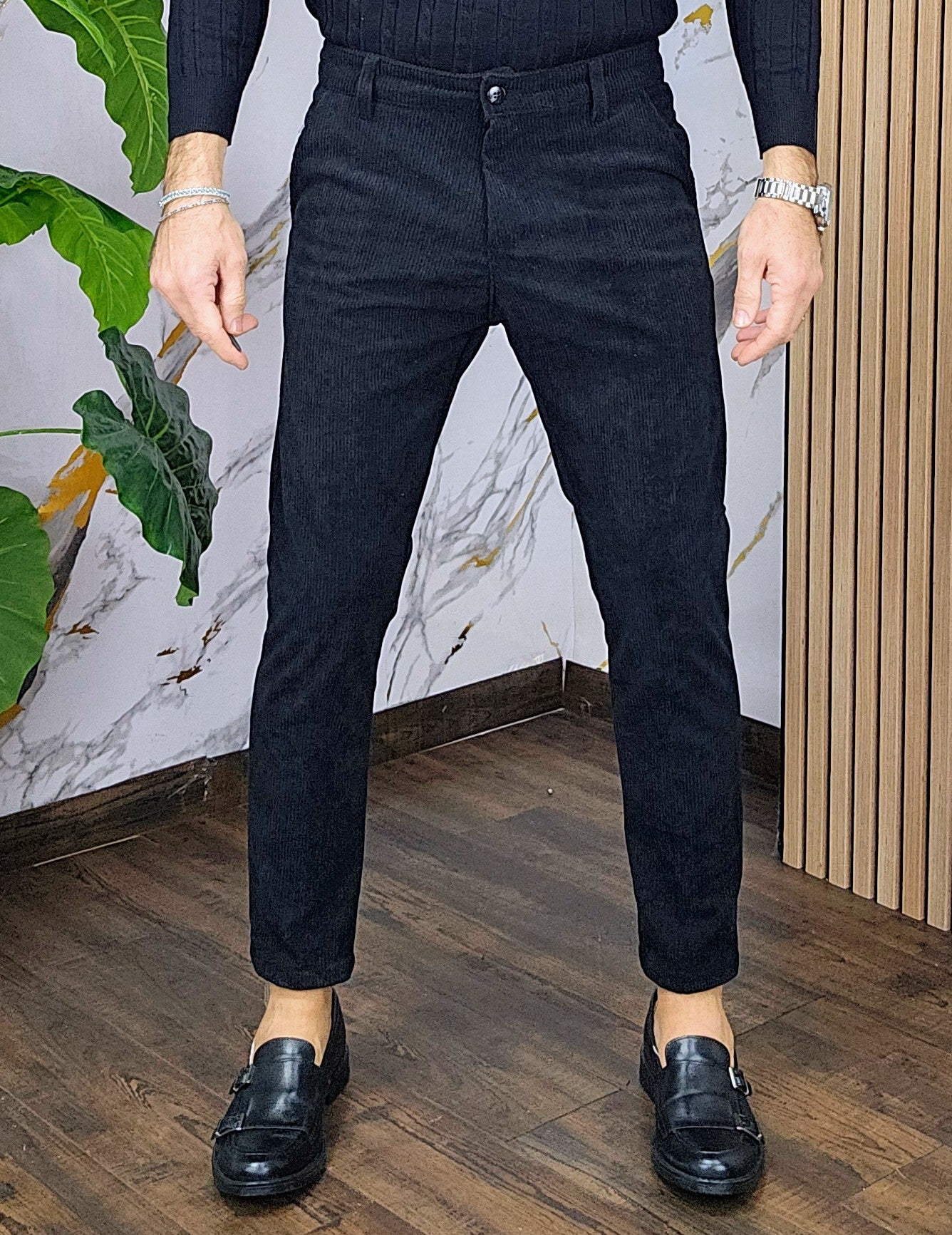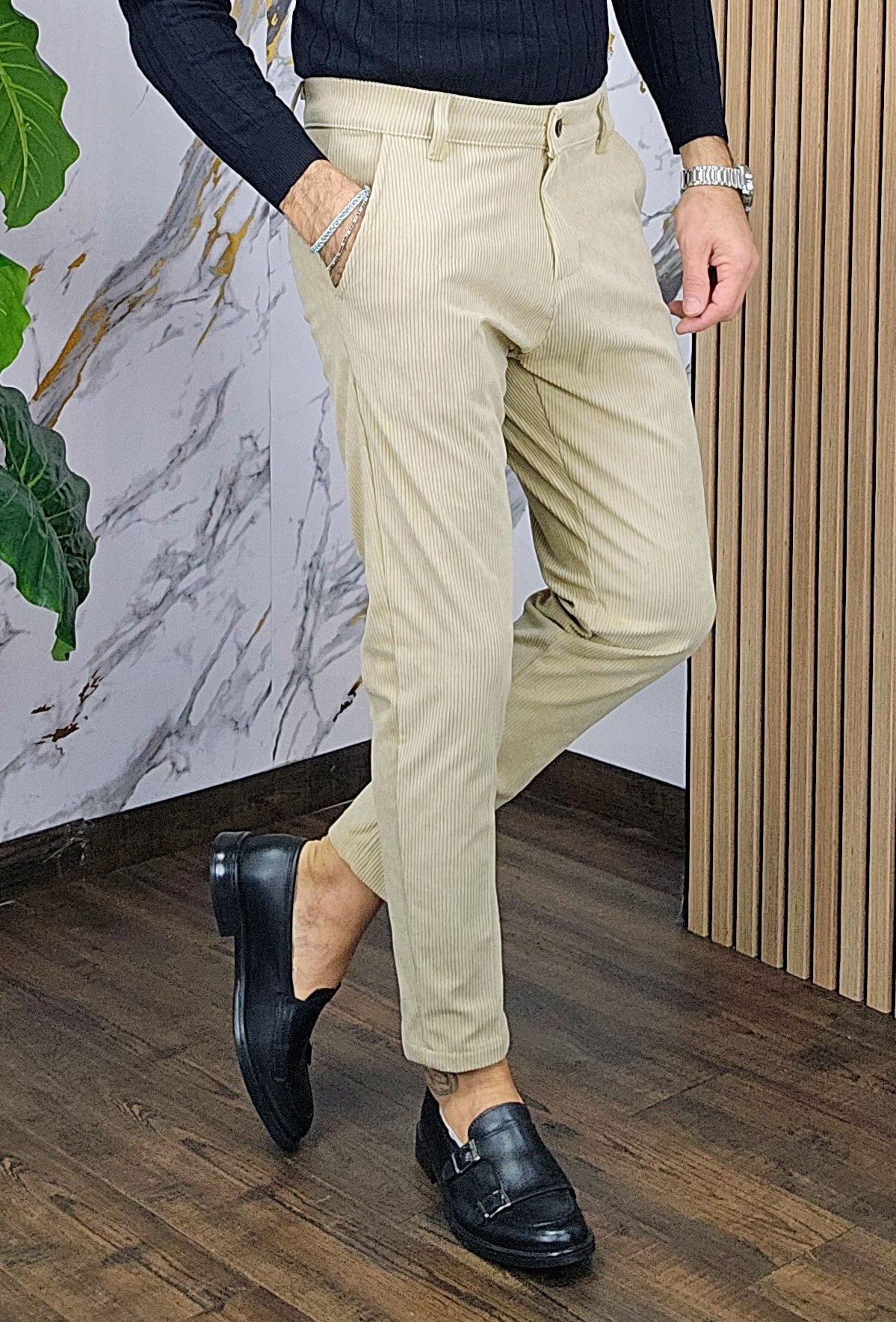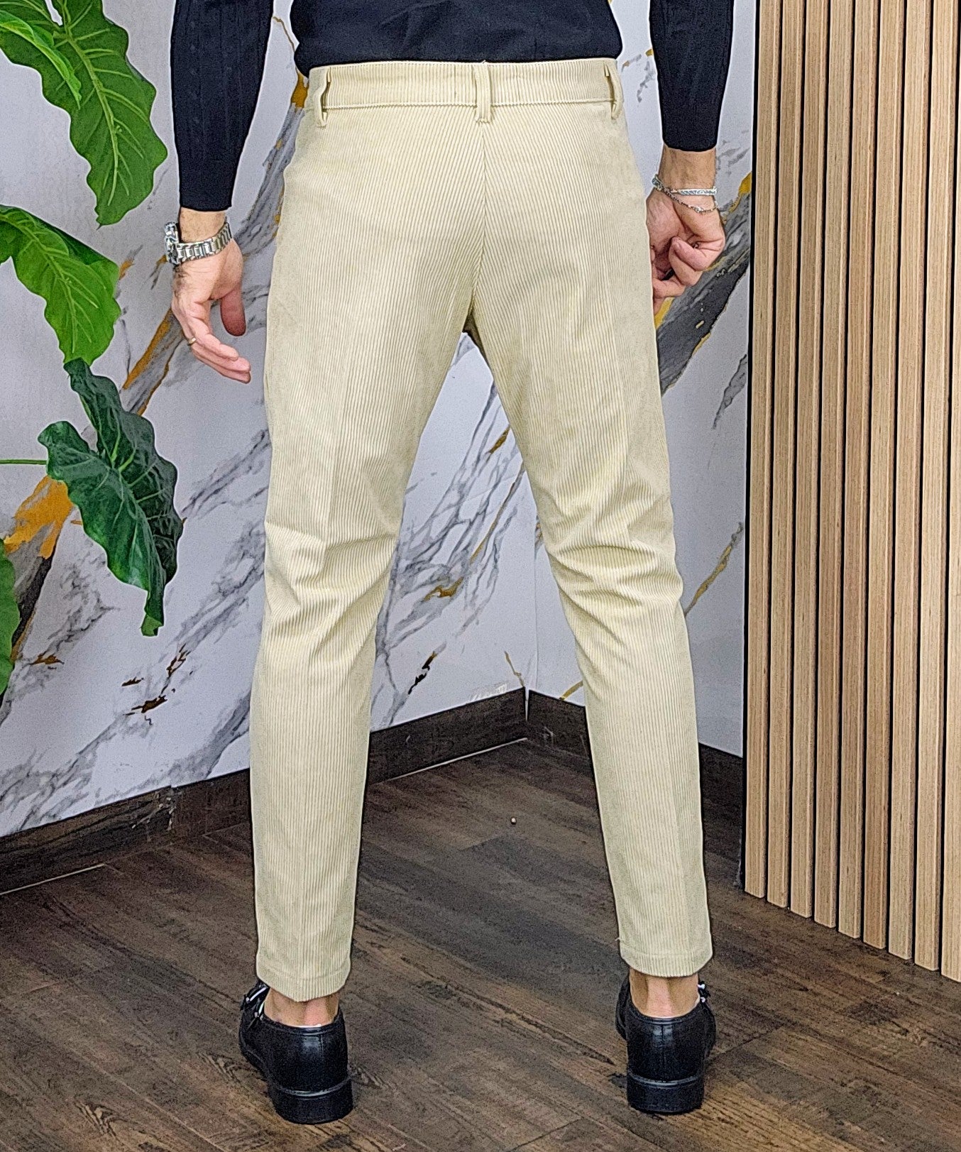 Pantalone velluto elastico comodo chiusira bottone centrale 2 tasche America dalla S alla XXL, il modello in foto è alto 1.82x76kg è indossa una taglia S.Prodotto Made in Italy