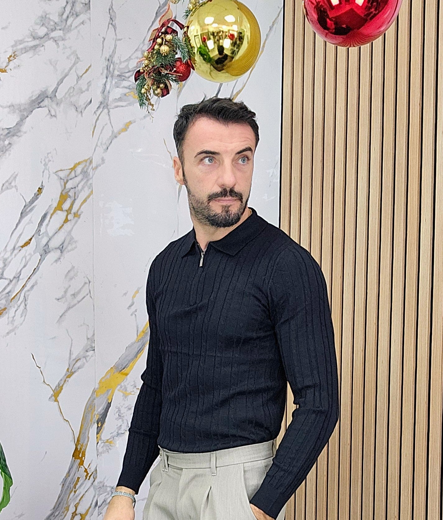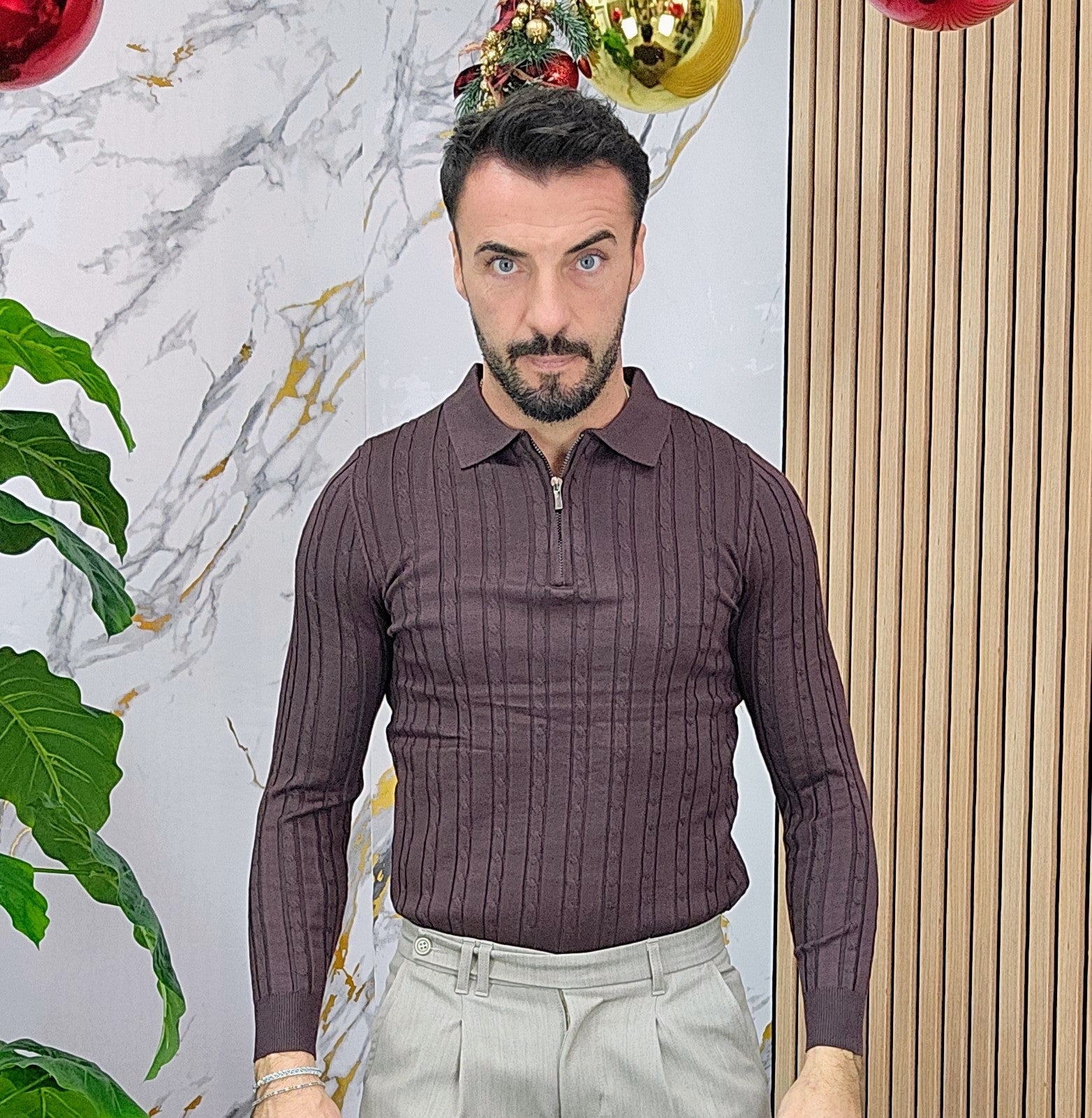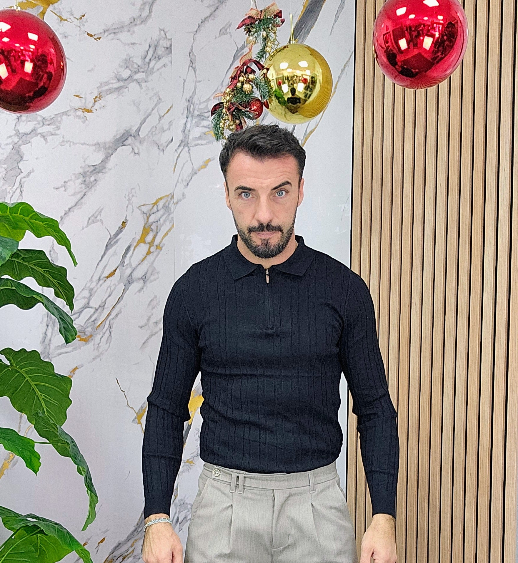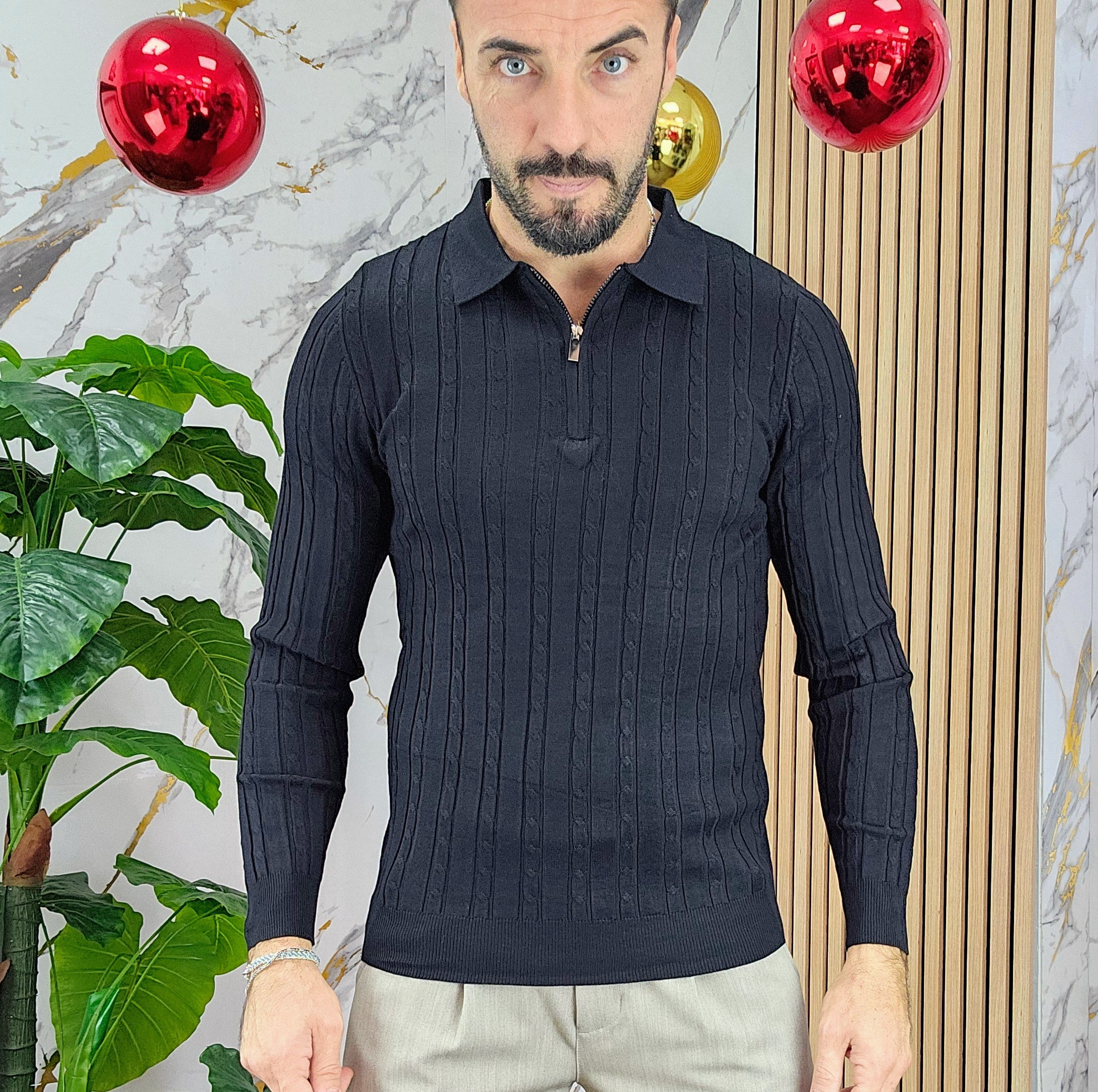 Polo slim fit chiusura zip decorata all'interno dalla S alla XL, il modello in foto è alto 1.82x76kg è indossa una taglia S.Prodotto Made in Italy