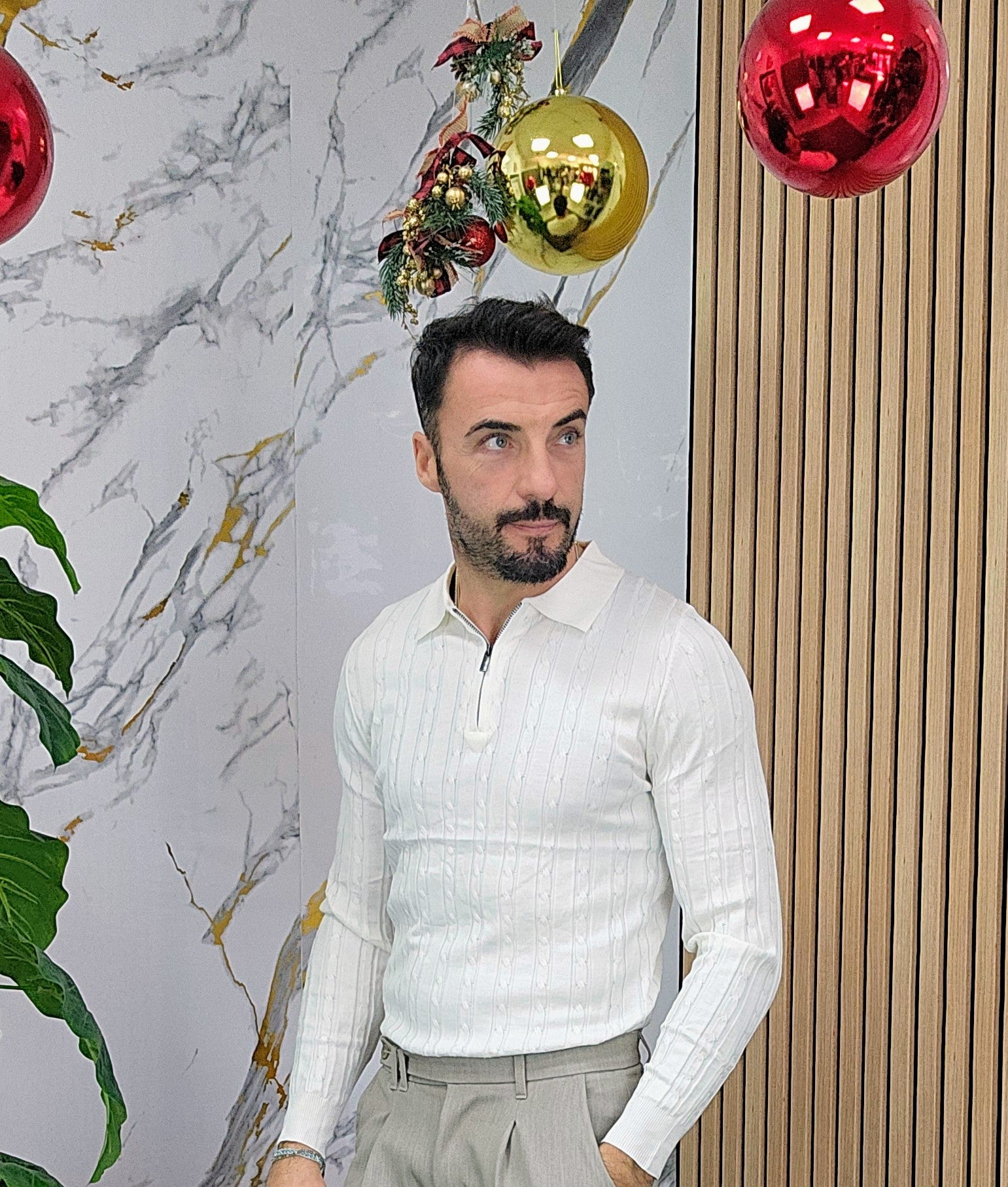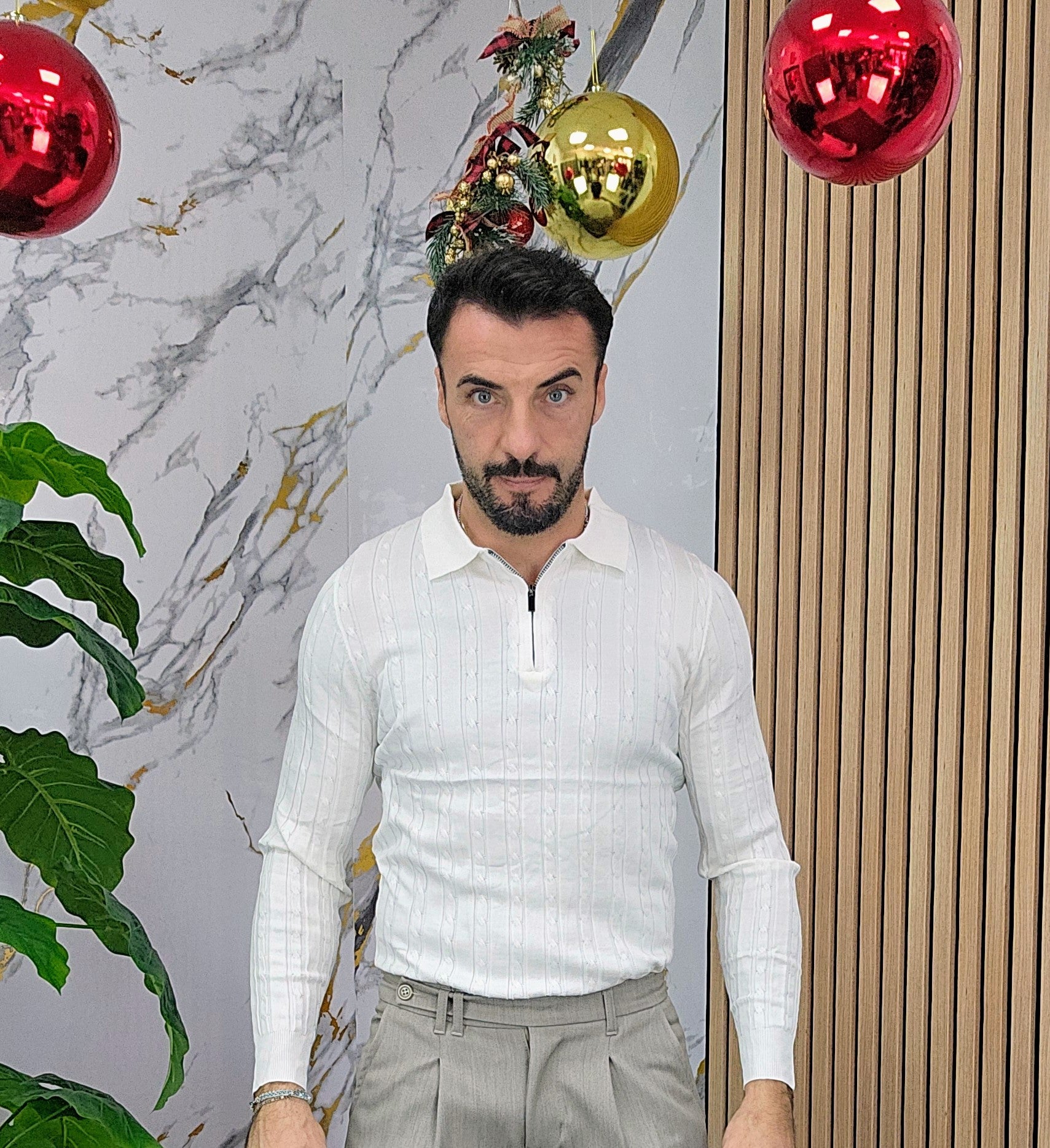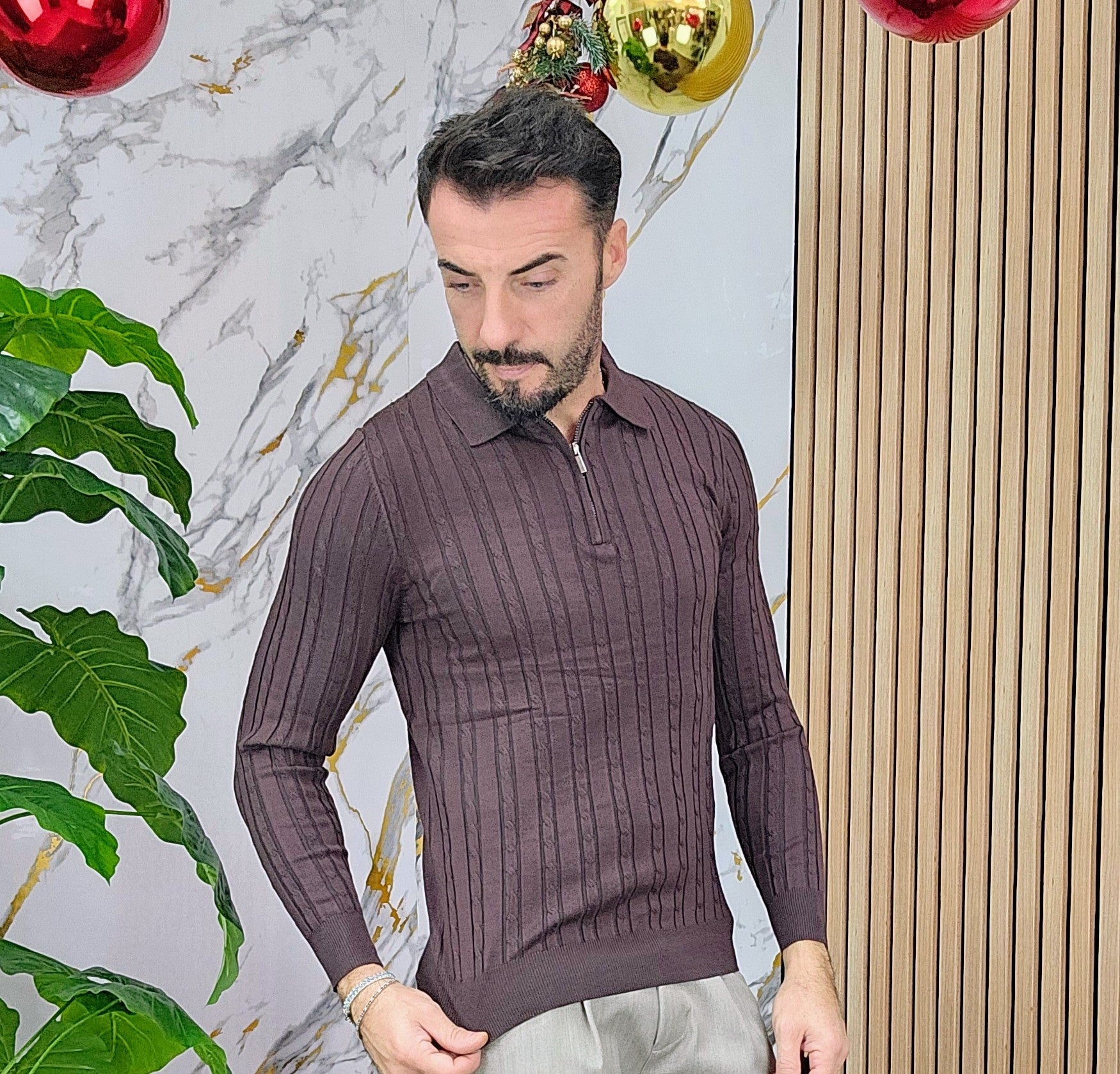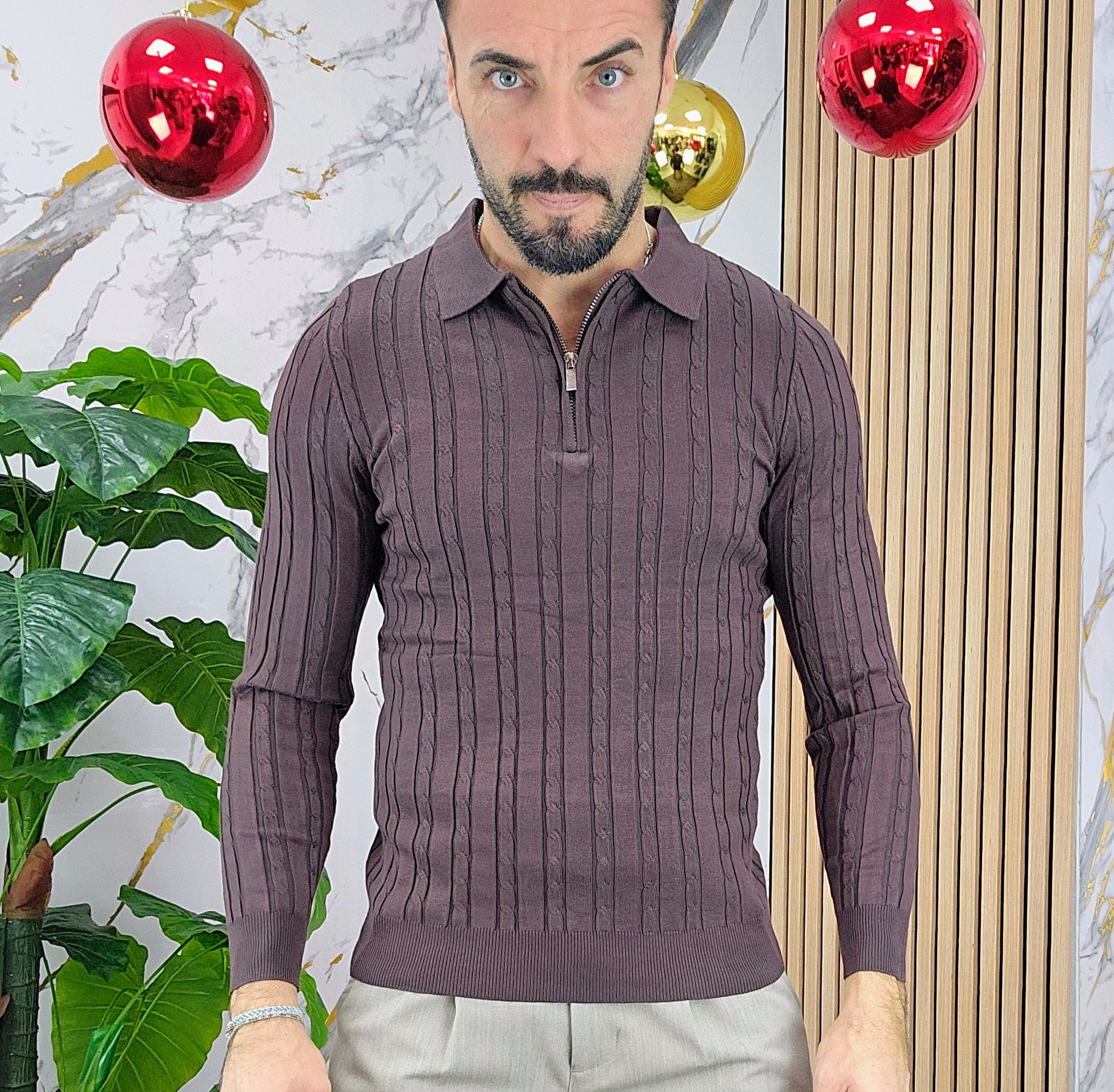 Polo slim fit chiusura zip decorata all'interno dalla S alla XL, il modello in foto è alto 1.82x76kg è indossa una taglia S.Prodotto Made in Italy