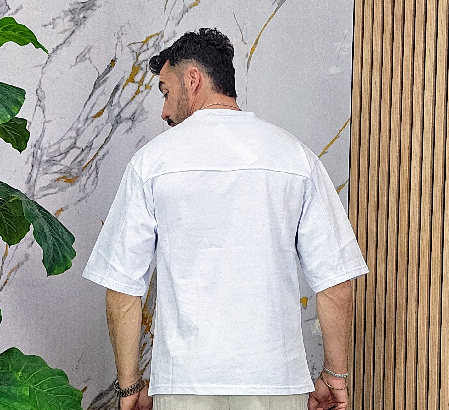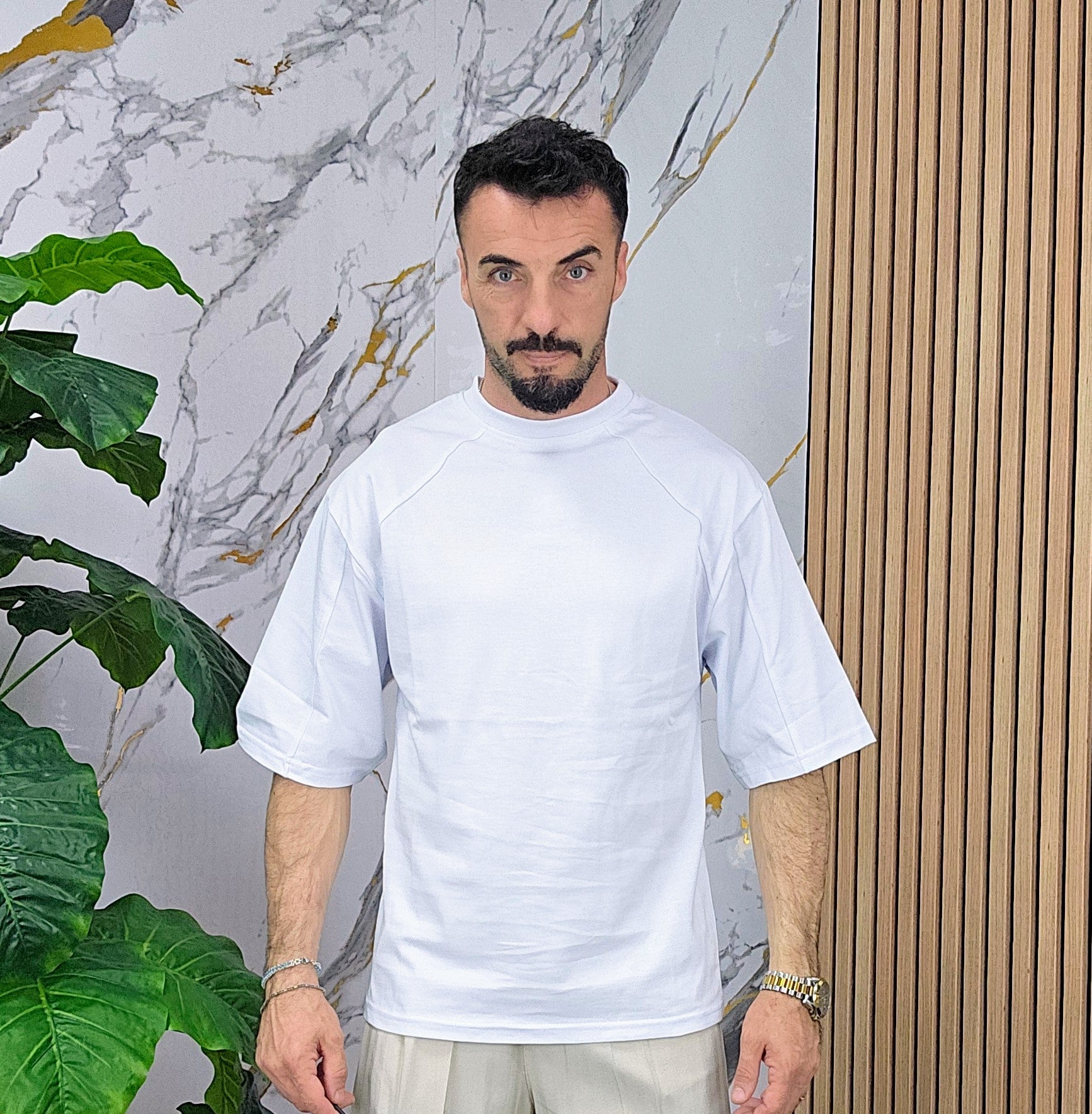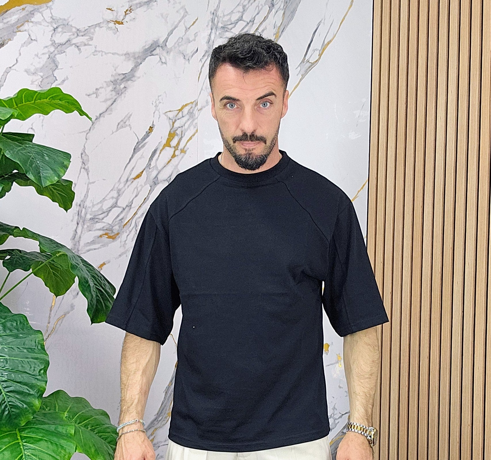Maglia vestibilità regolare con maniche 3/4 dalla S alla XXL, il modello in foto è alto 1.82x76kg è indossa una taglia S.Prodotto Made in Italy