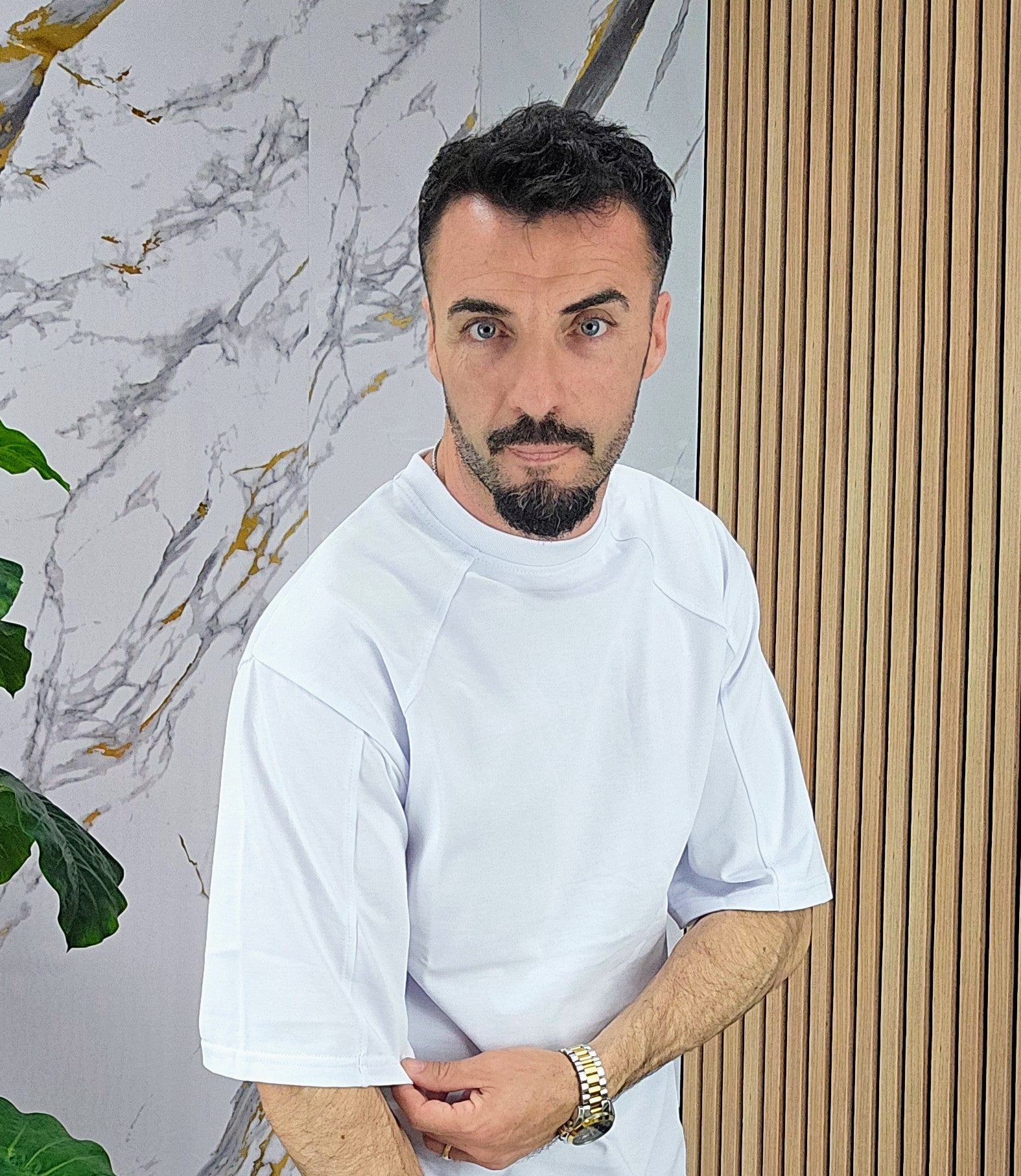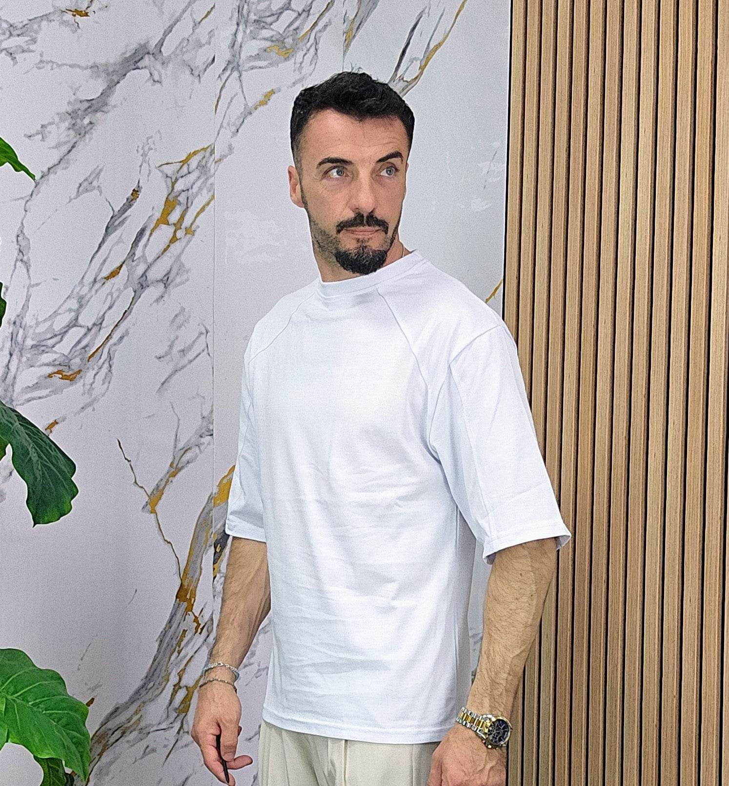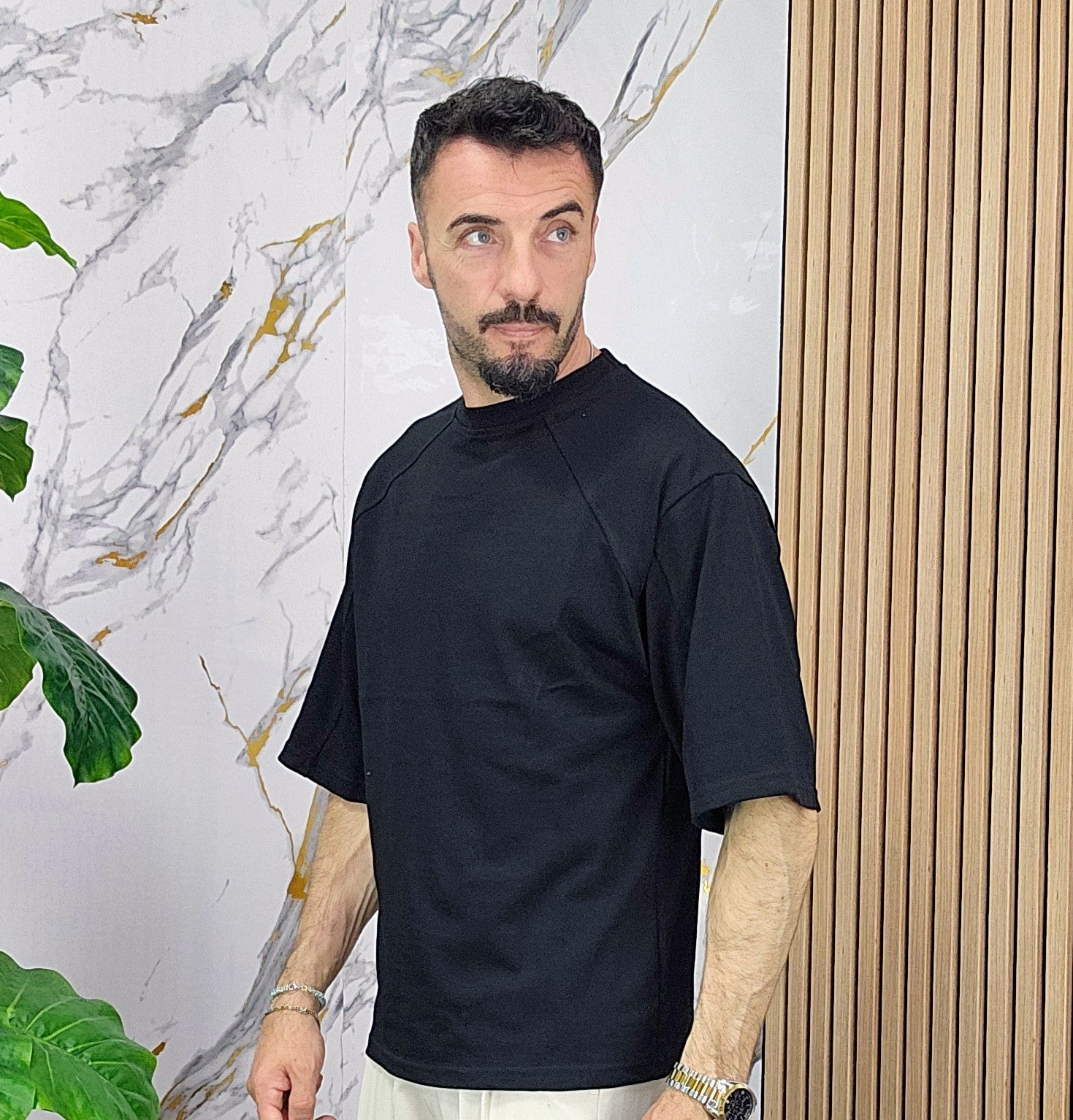 Maglia vestibilità regolare con maniche 3/4 dalla S alla XXL, il modello in foto è alto 1.82x76kg è indossa una taglia S.Prodotto Made in Italy