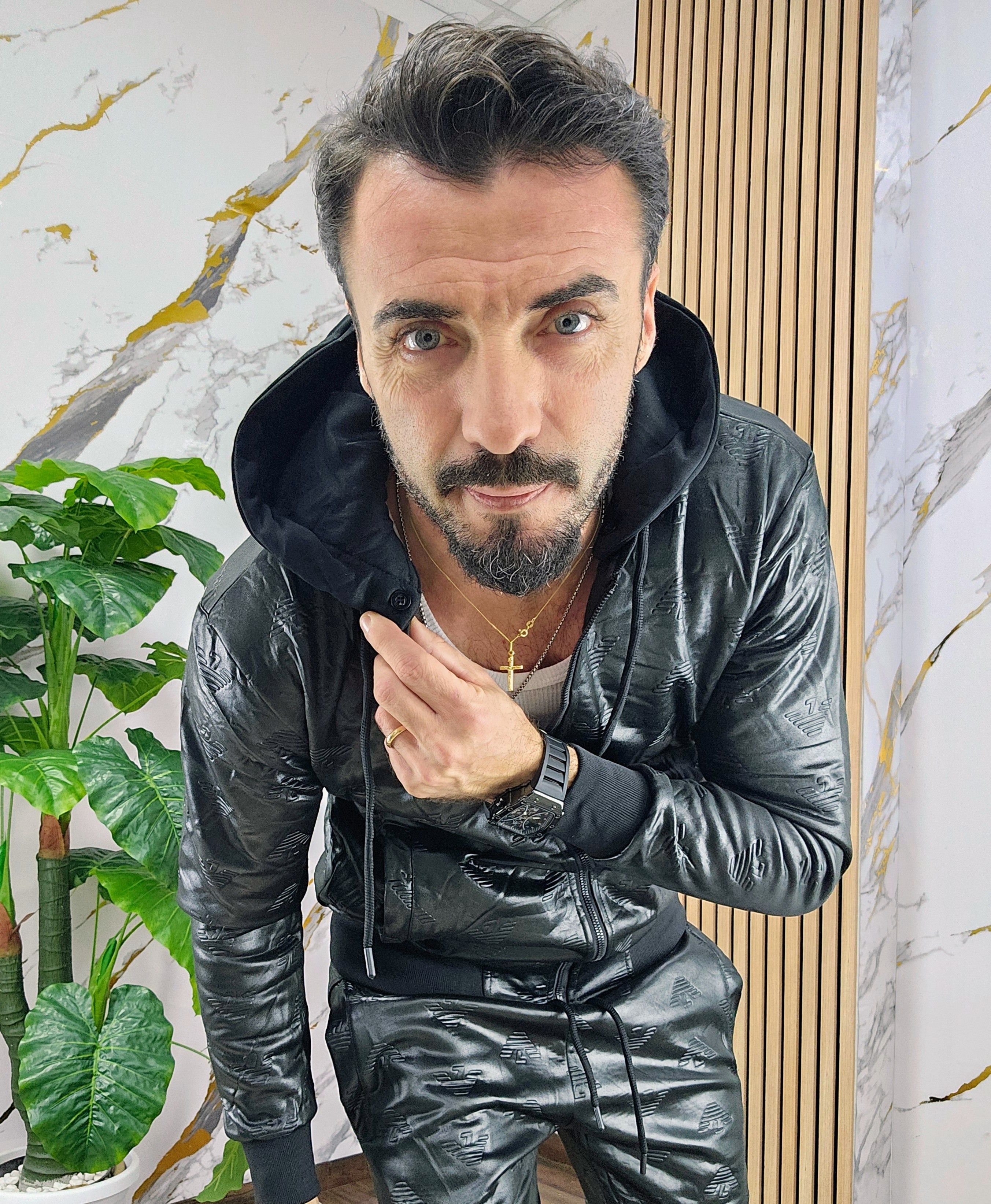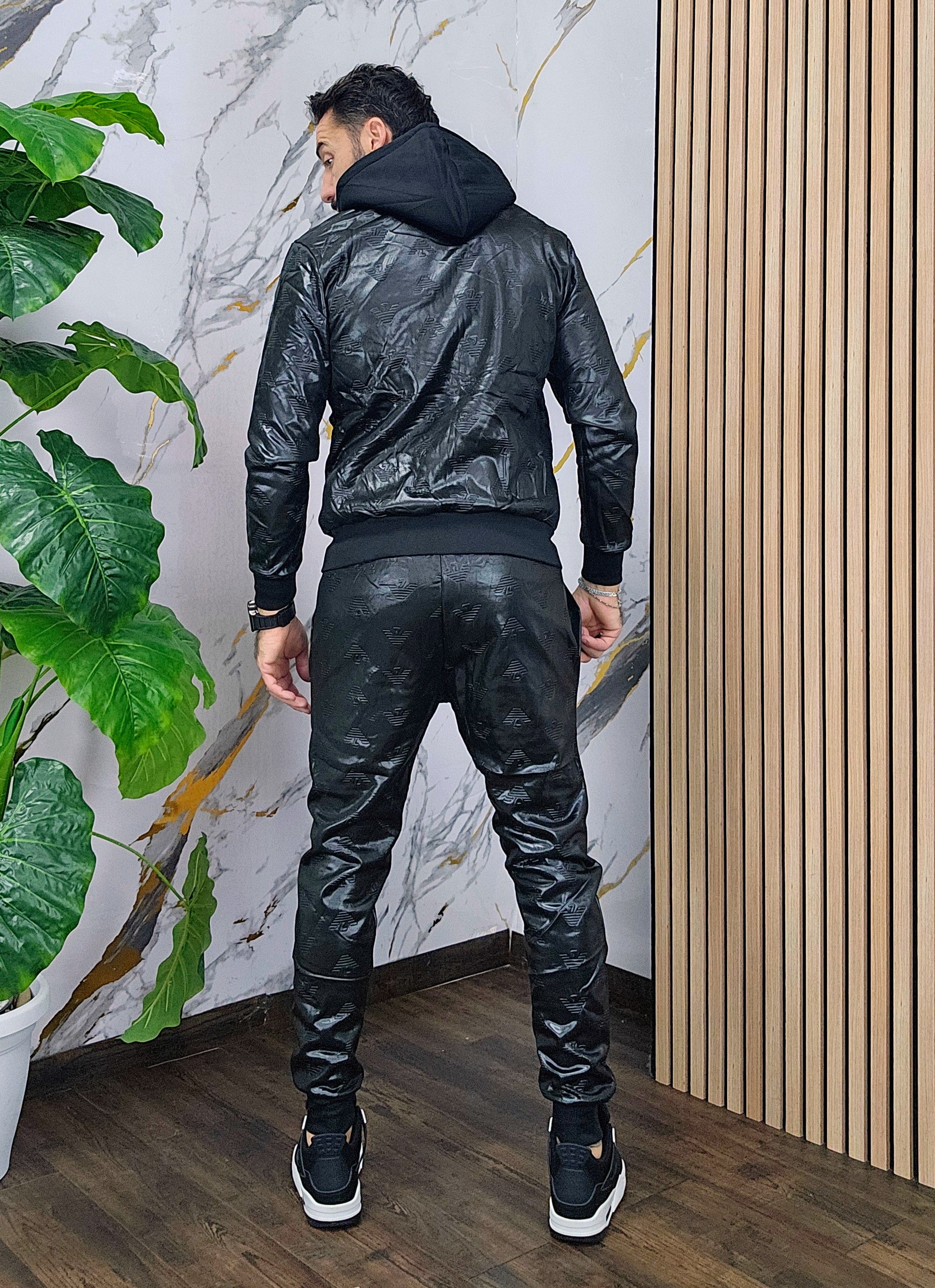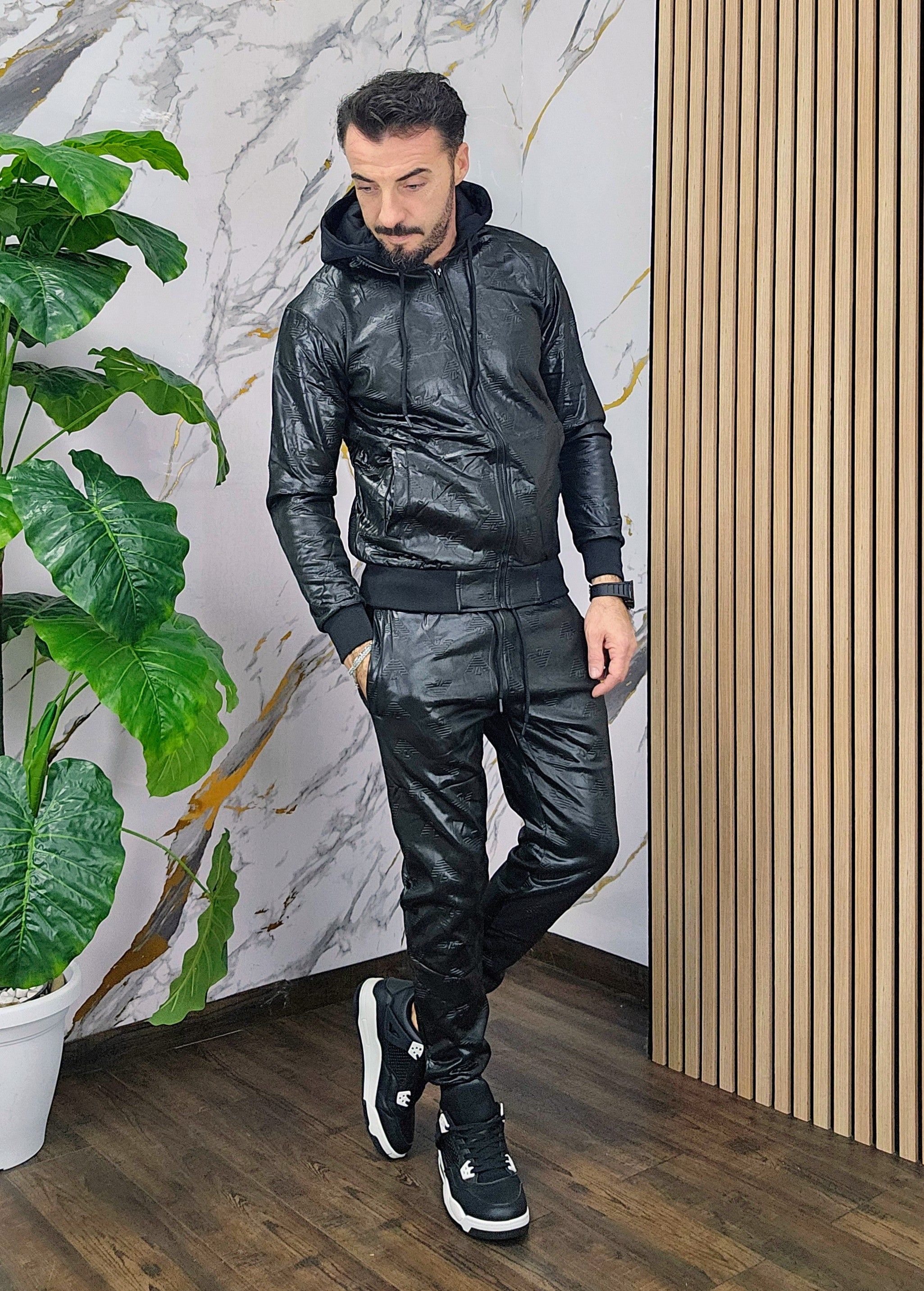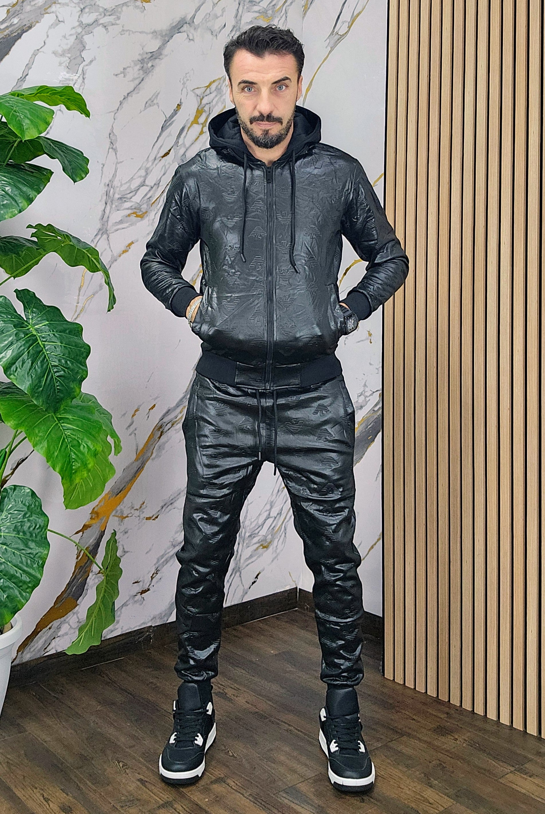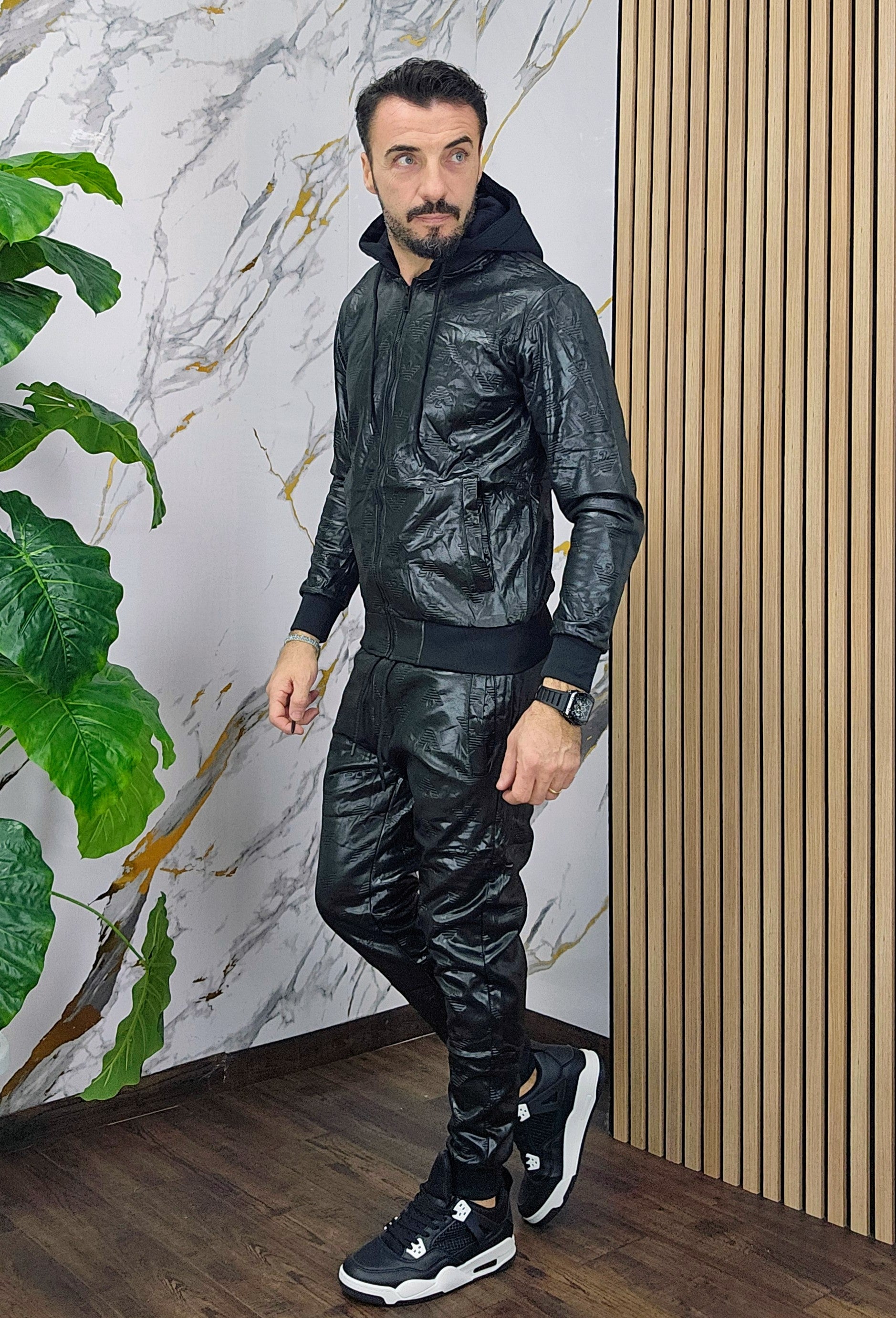Tuta slim fit acedata imbottita all'interno con cappuccio estraibile chiusura zip centrale 2 tasche laterali alla felpa pantatuta con 2 tasche laterali polsino alla caviglia dalla S alla XXL, il modello in foto è alto 1.82x76kg è indossa una taglia S.Prodotto Made in Italy