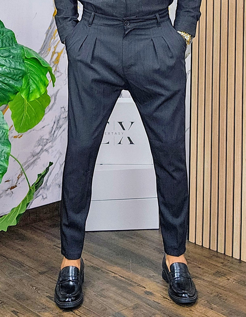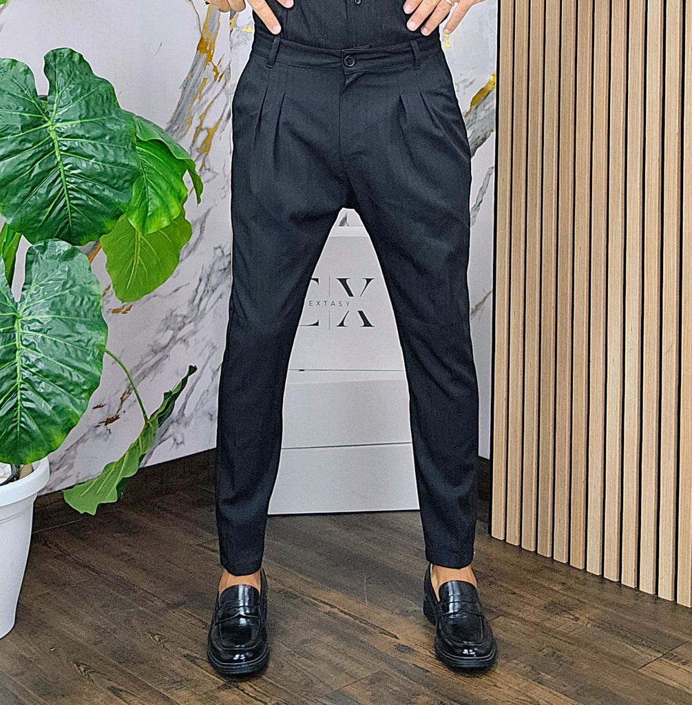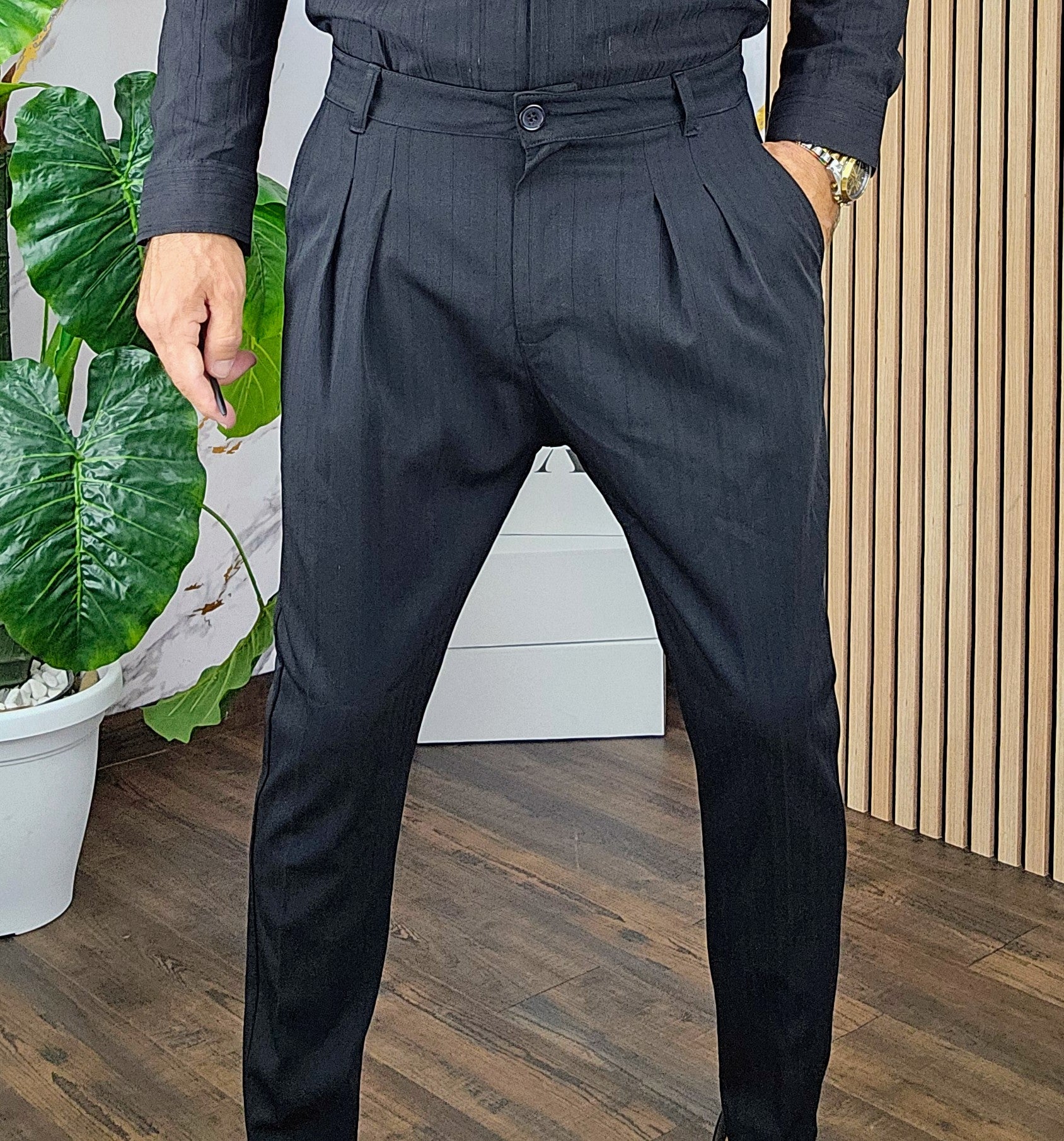 Pantalone capri slim fit elastico con righe all'interno nero su nero dalla S alla XXL, il modello in foto è alto 1.82x76kg è indossa una taglia M.Prodotto Made in Italy
