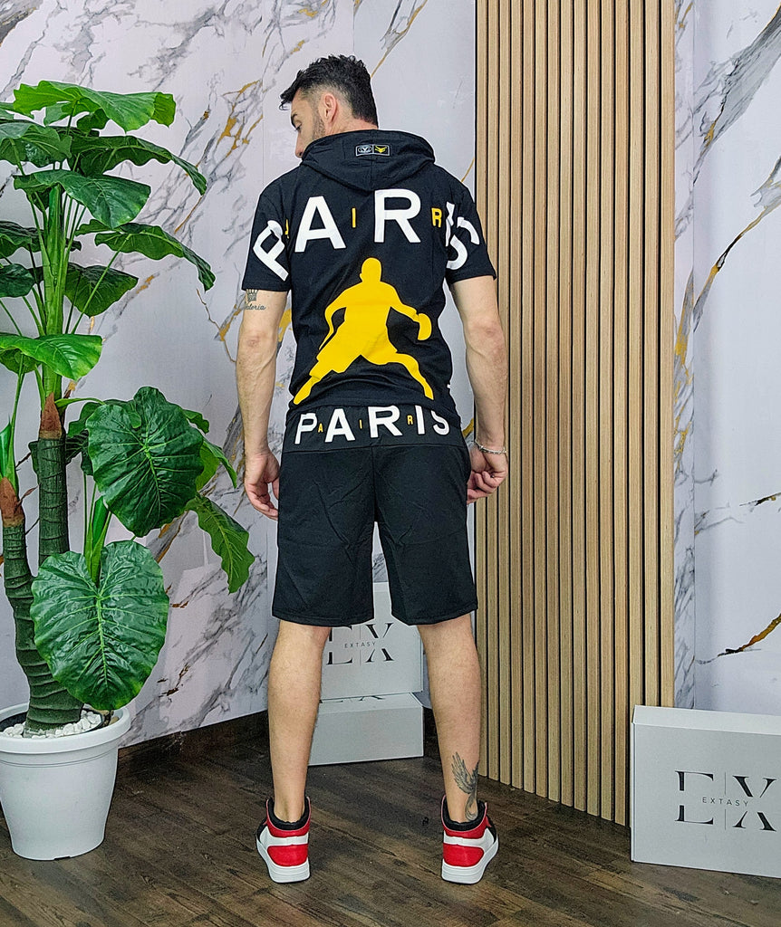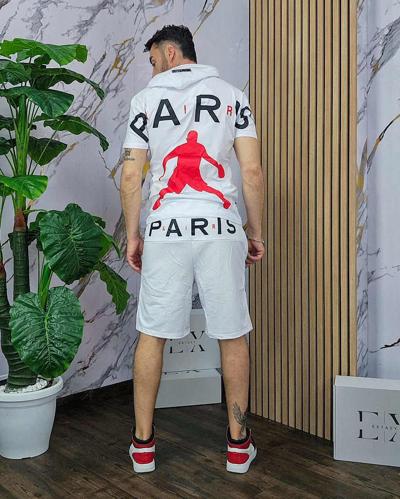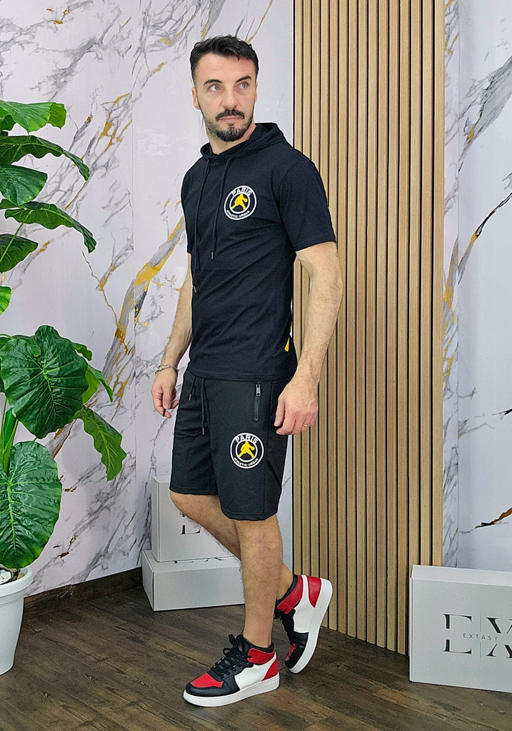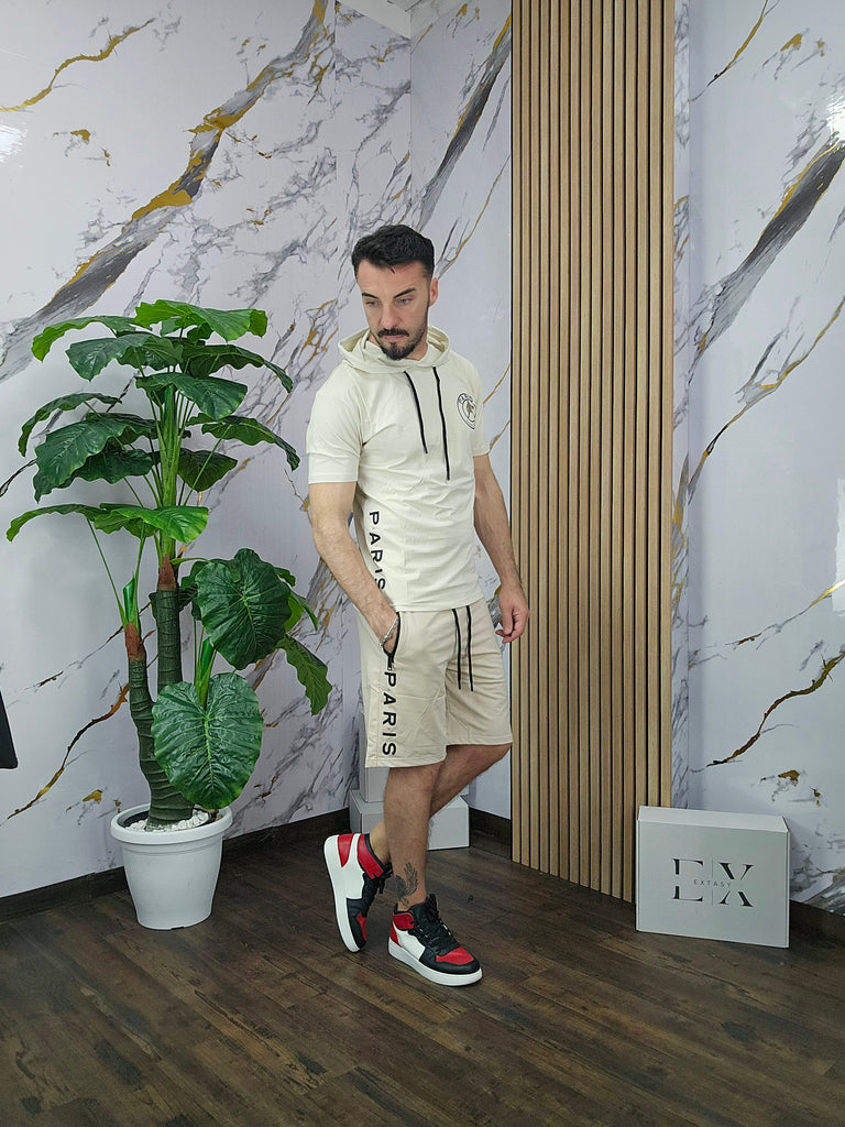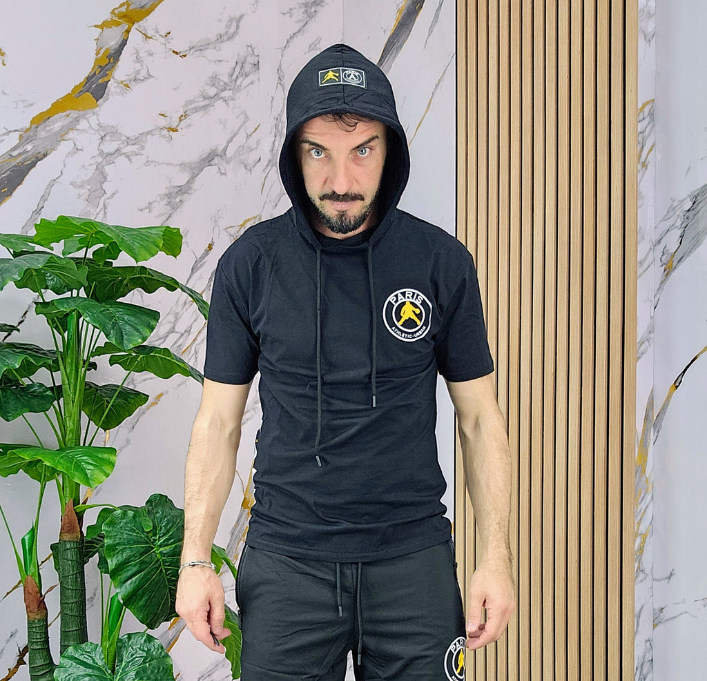 Completo corto con stampe scritta cucita al cappuccio bermuda con 2 tasche chiusura zip dalla M alla XXL, il modello in foto è alto 1.82x76kg è indossa una taglia M.Prodotto Made in Italy