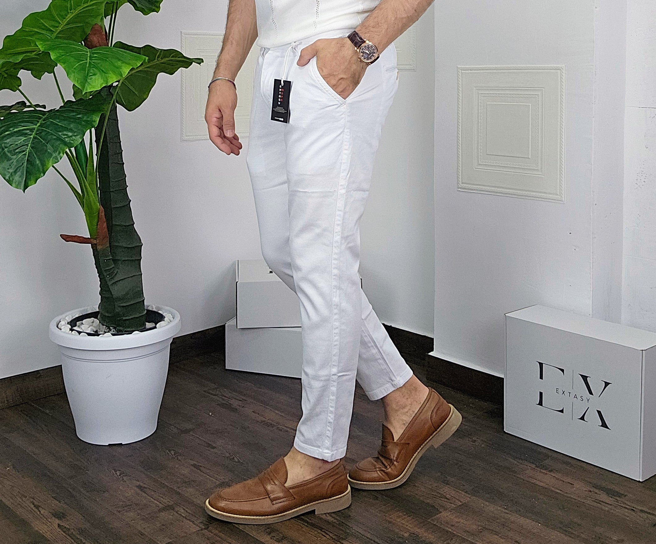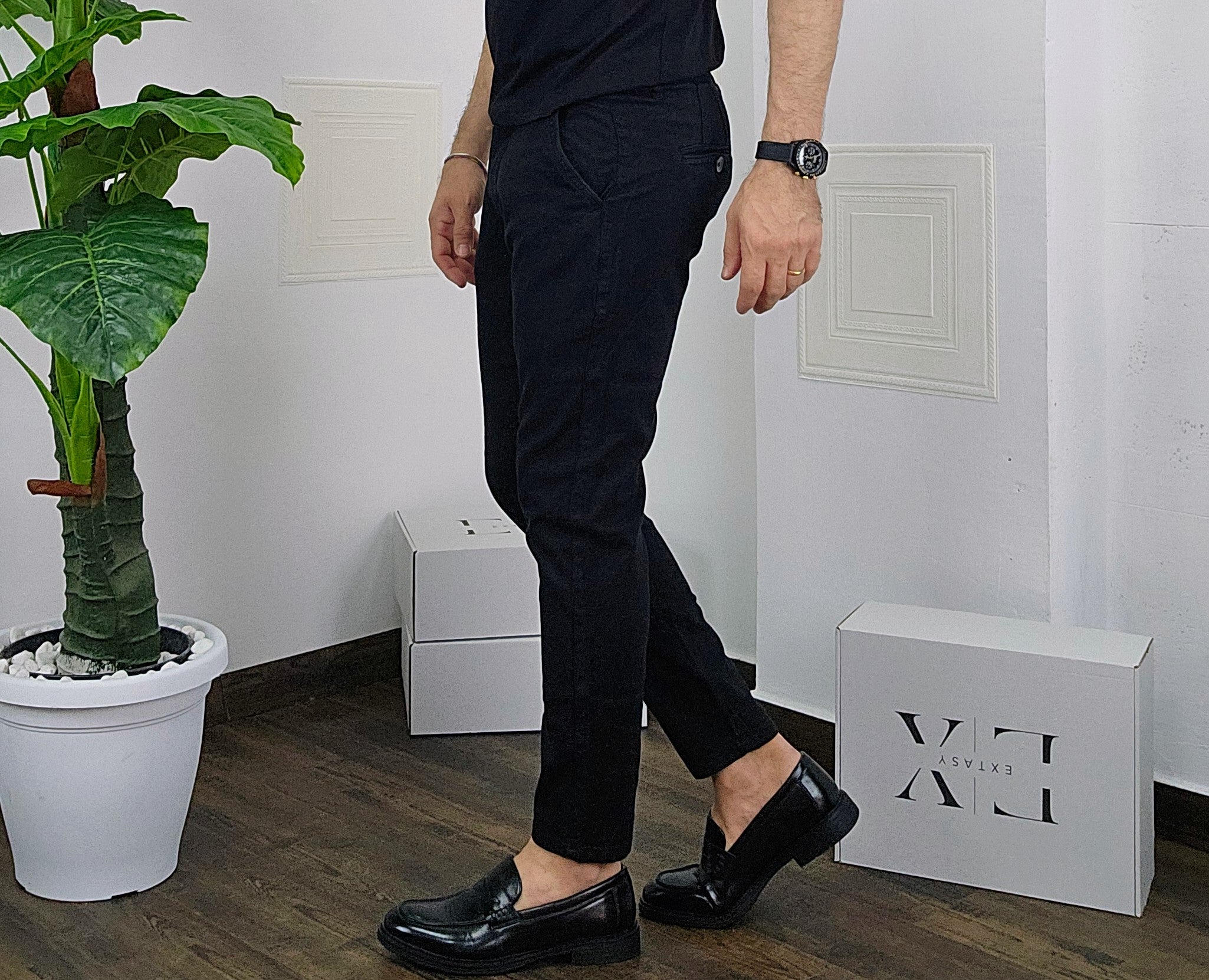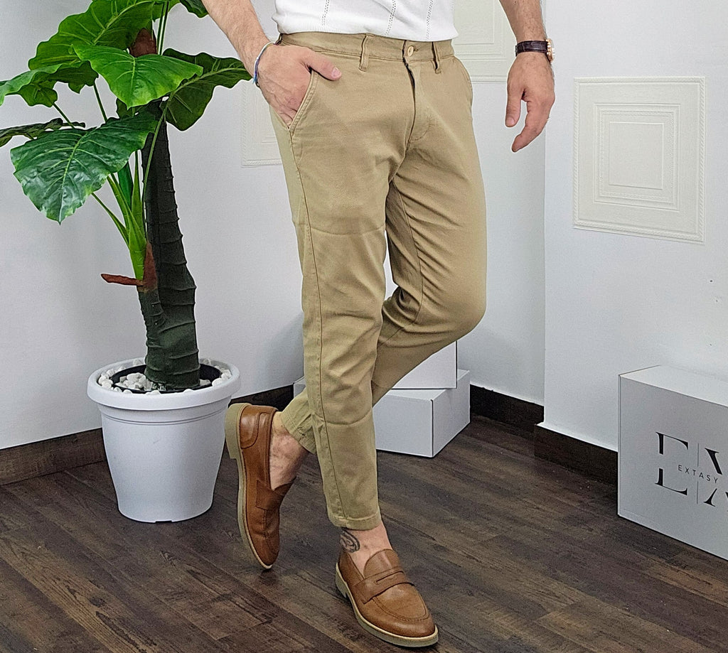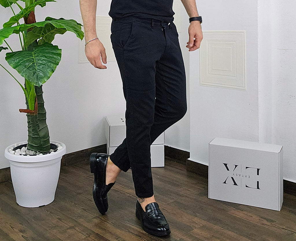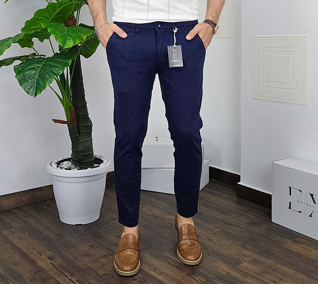 Pantalone slim fit elastico tessuto a nido d'ape con 2 tasche America e 2 tasche sul retro con chiusura bottone dalla 44 alla 54,il modello in foto è alto 1.82x76kg è indossa una taglia 44.Prodotto Made in Italy