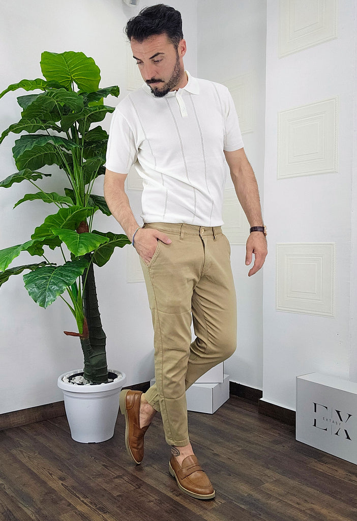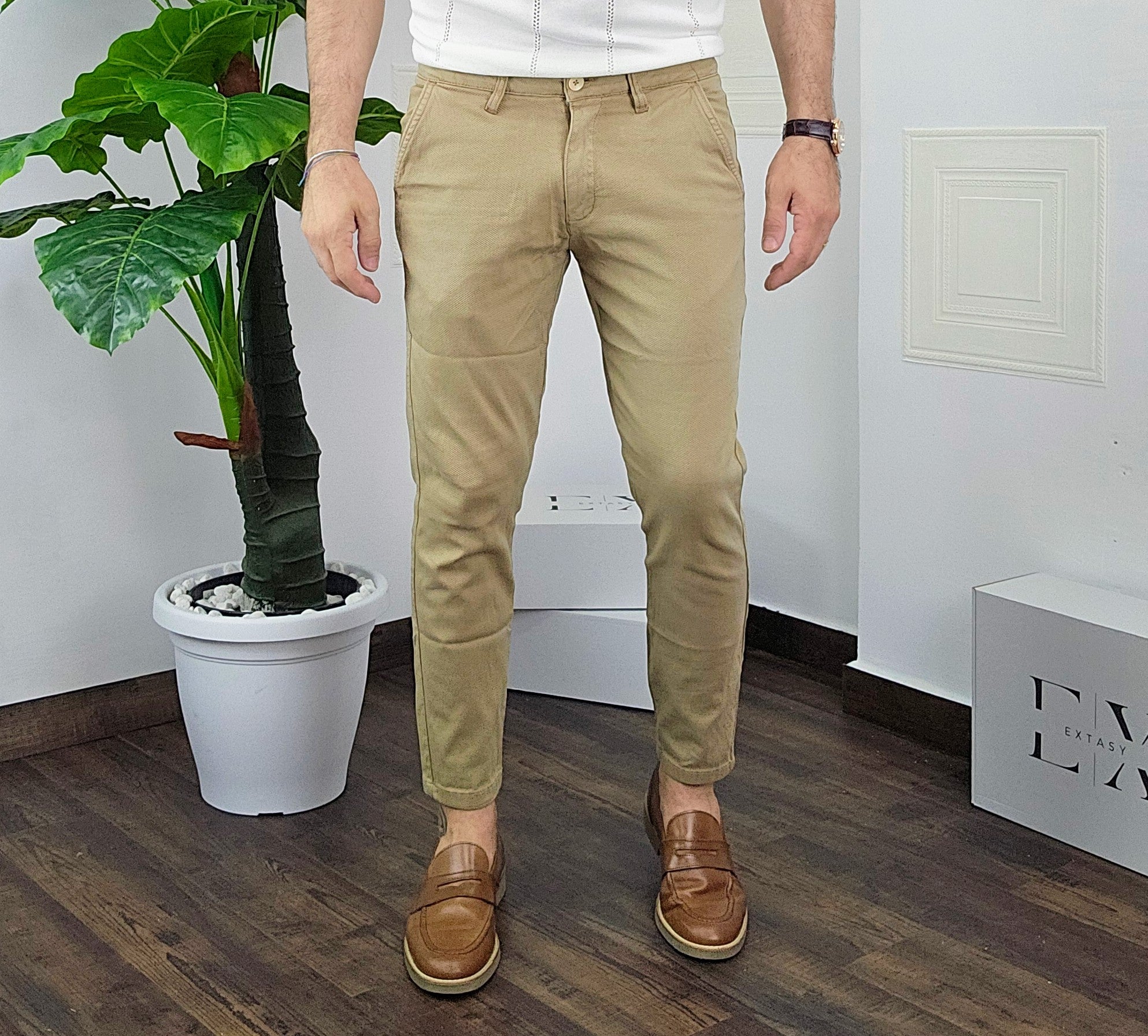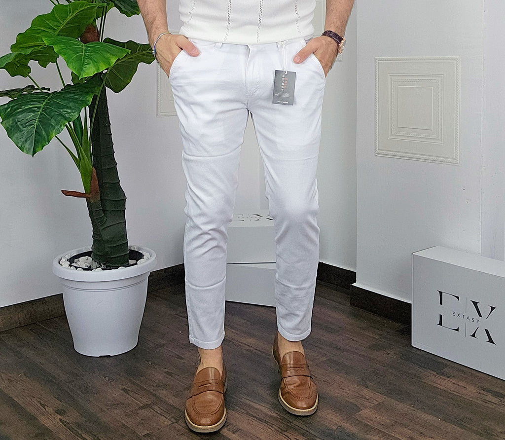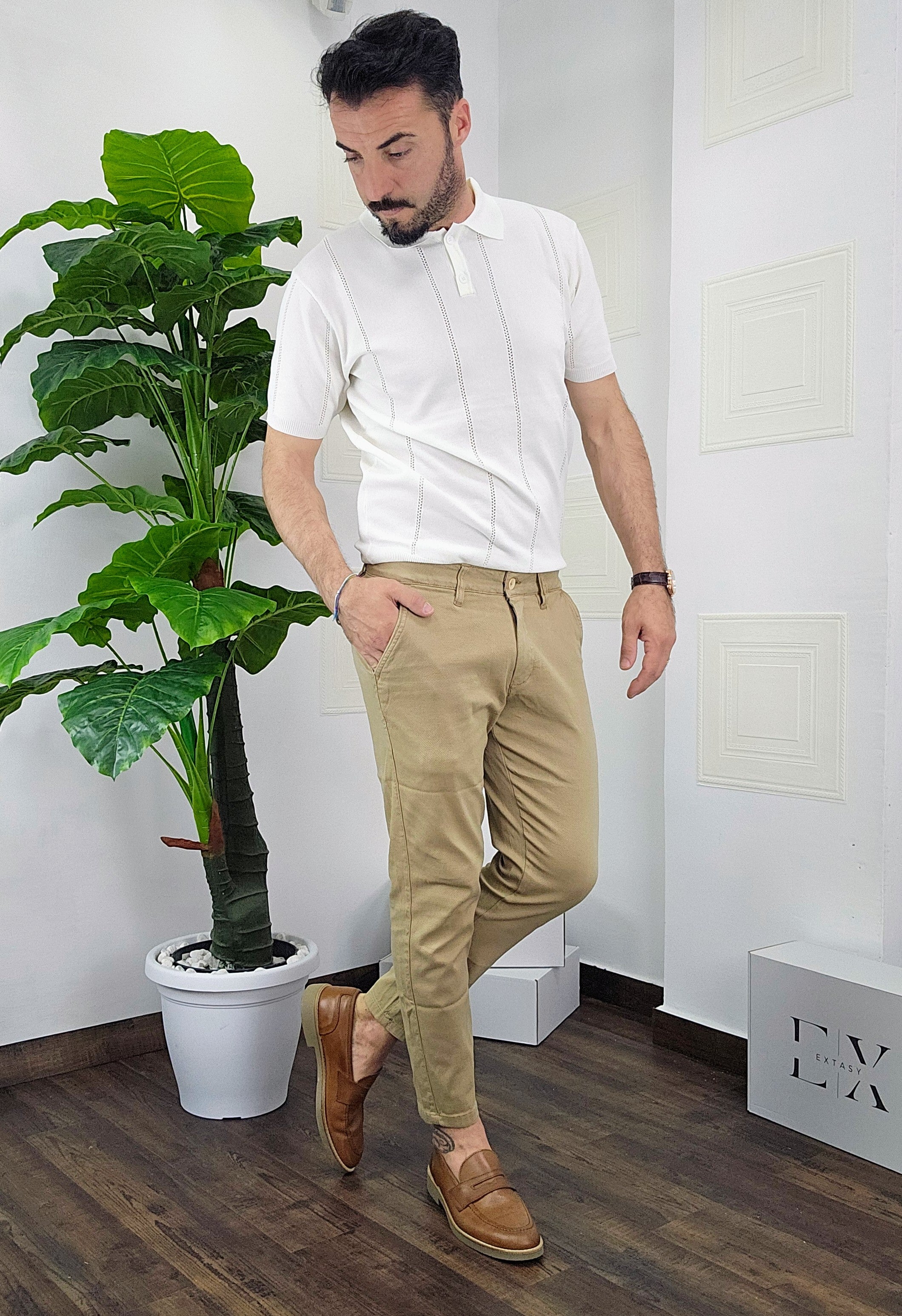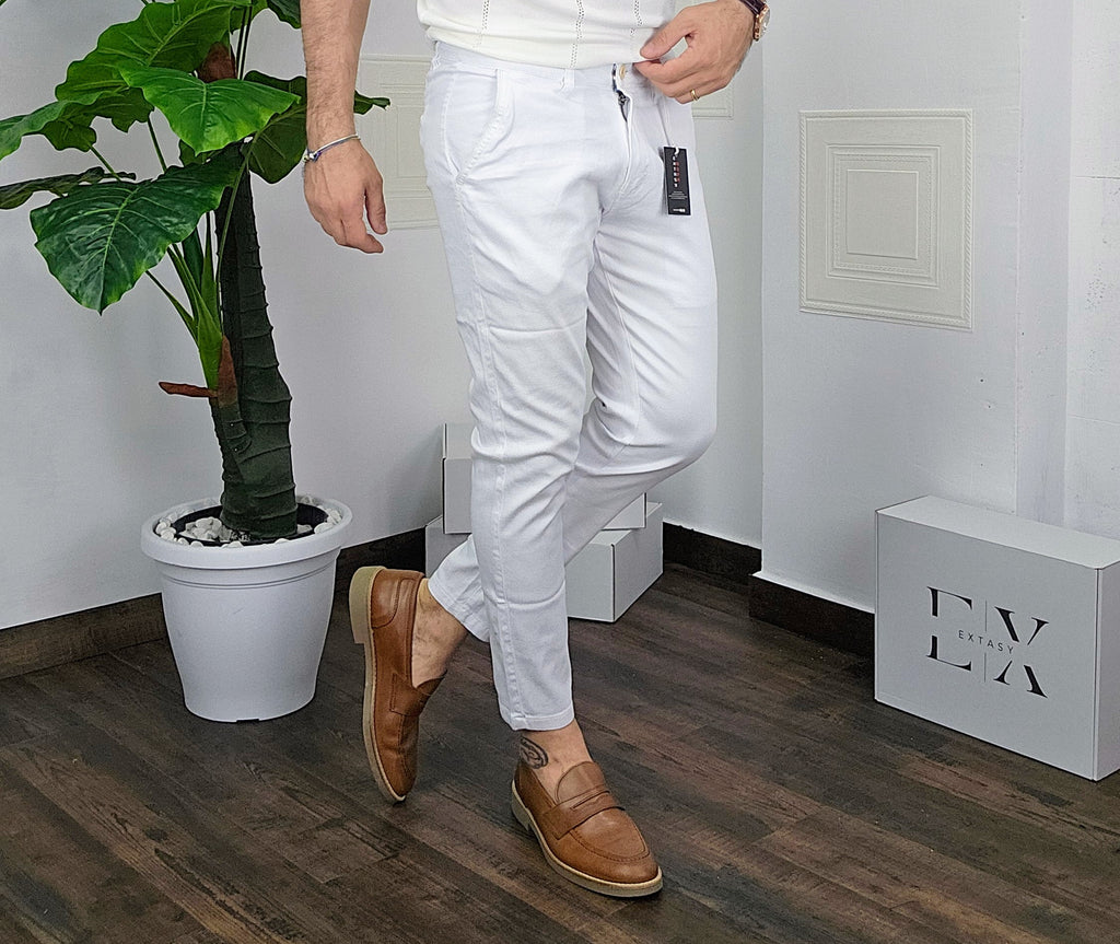 Pantalone slim fit elastico tessuto a nido d'ape con 2 tasche America e 2 tasche sul retro con chiusura bottone dalla 44 alla 54,il modello in foto è alto 1.82x76kg è indossa una taglia 44.Prodotto Made in Italy