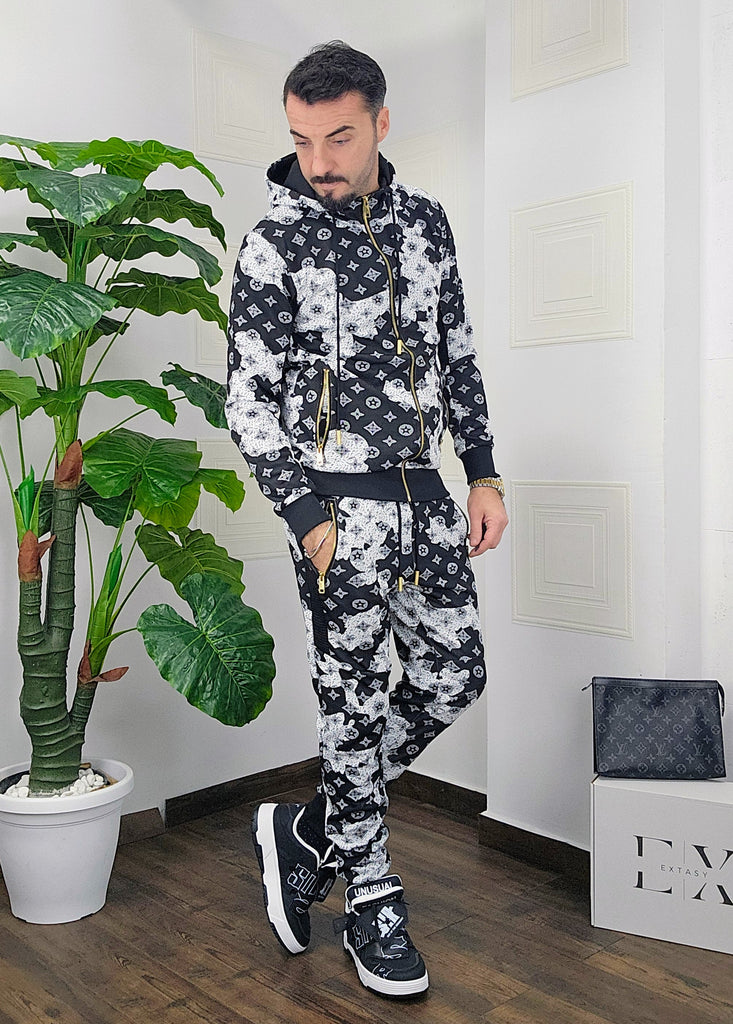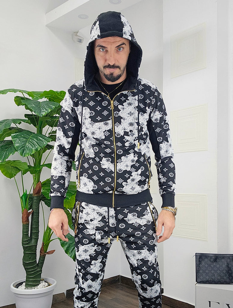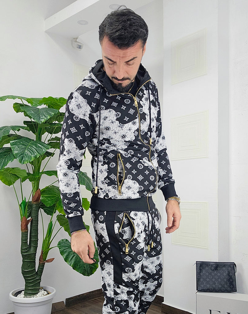 Tuta slim fit elastico 80% di cotone con cappuccio regolabile 2 chiusure a zip alla felpa 2 chiusure a zip al pantalone polsino alla caviglia dalla s alla xxl, il modello in foto è alto 1.82x76kg è indossa una taglia M.Prodotto Made in Italy