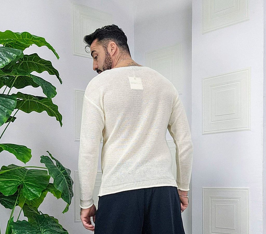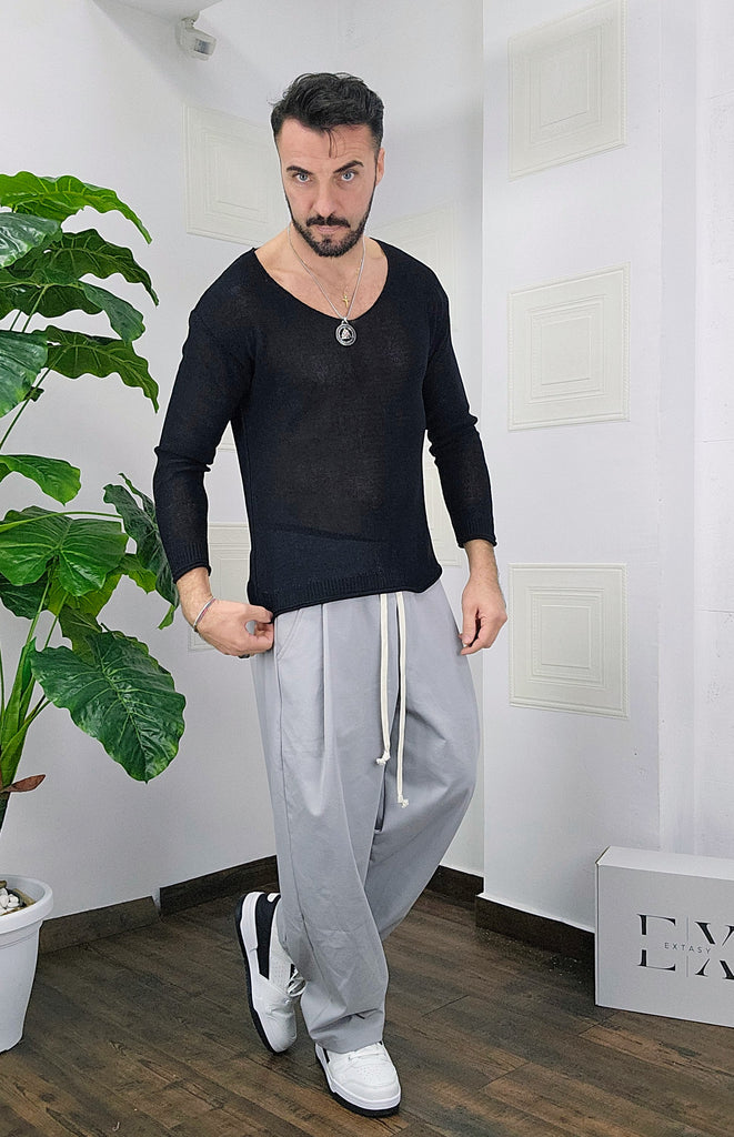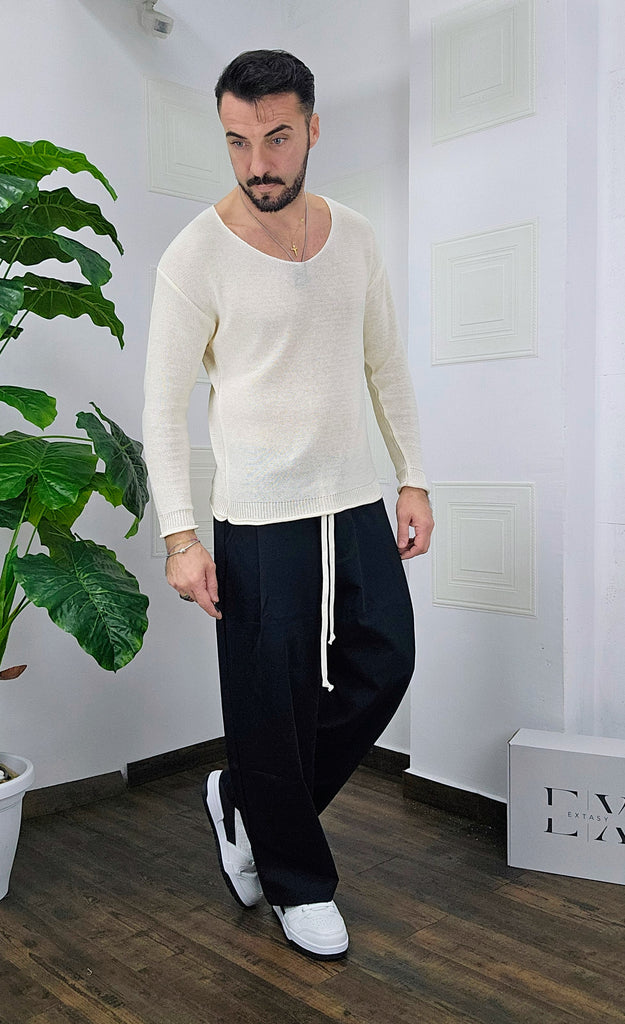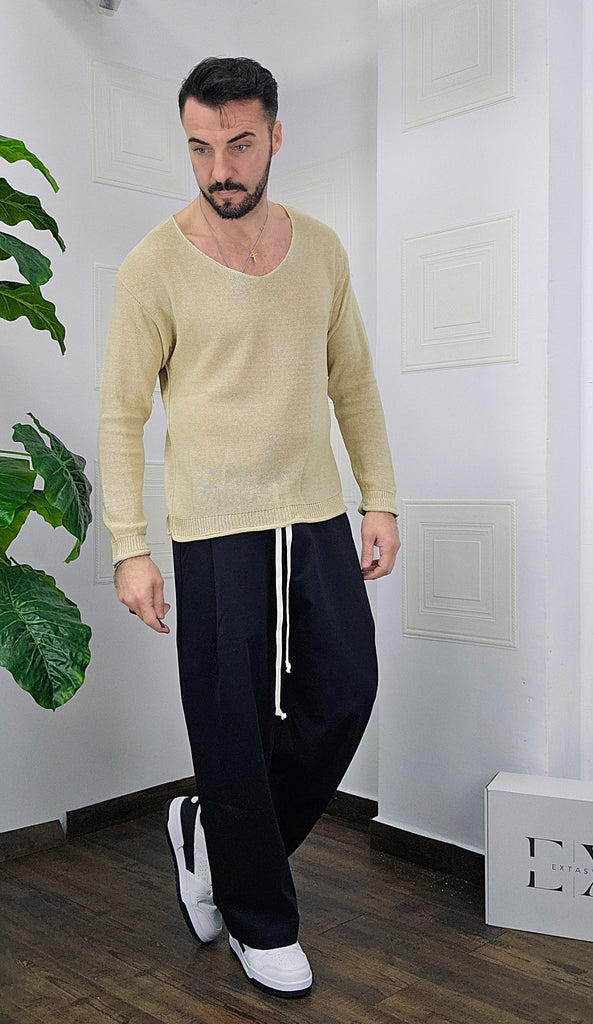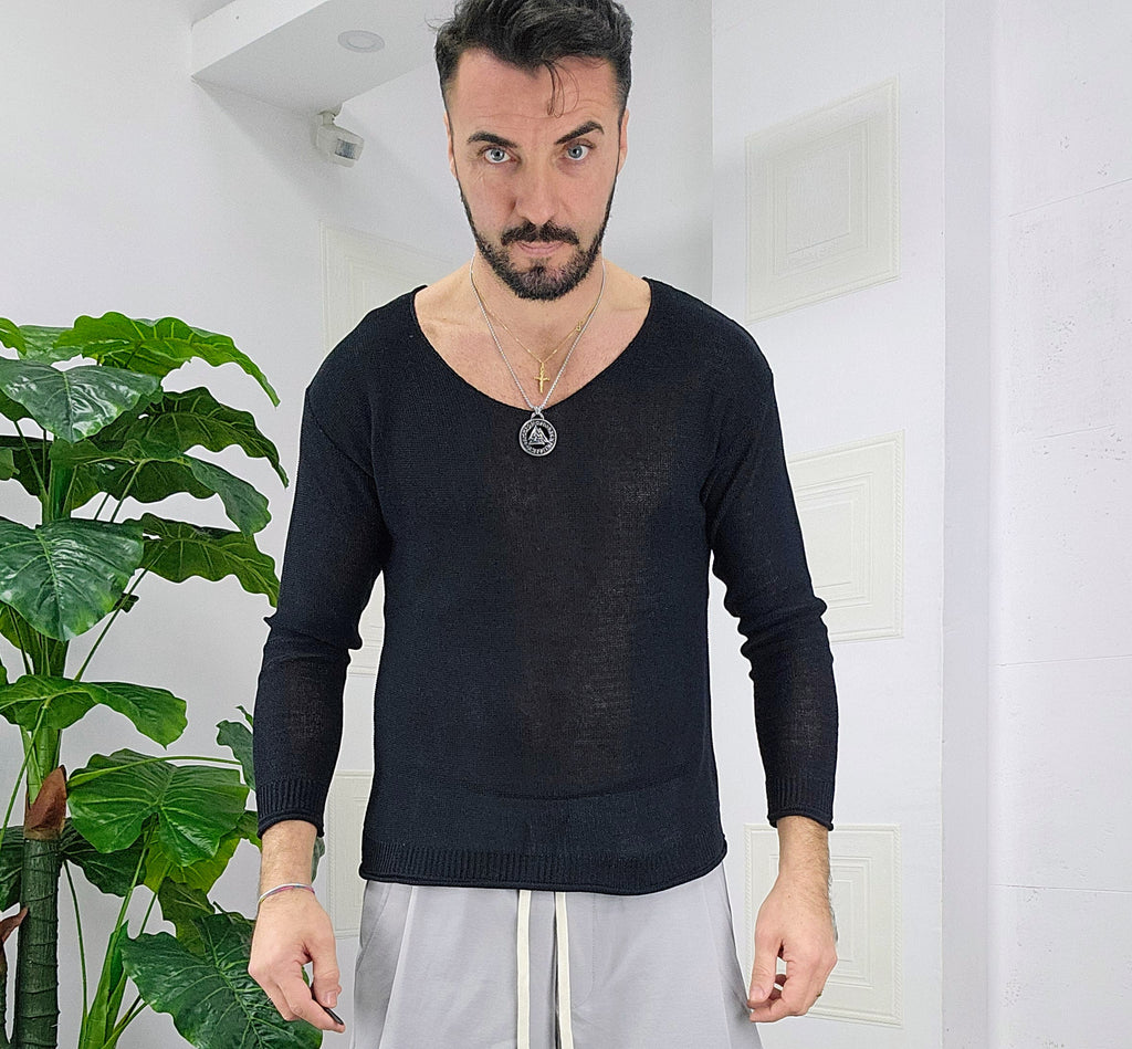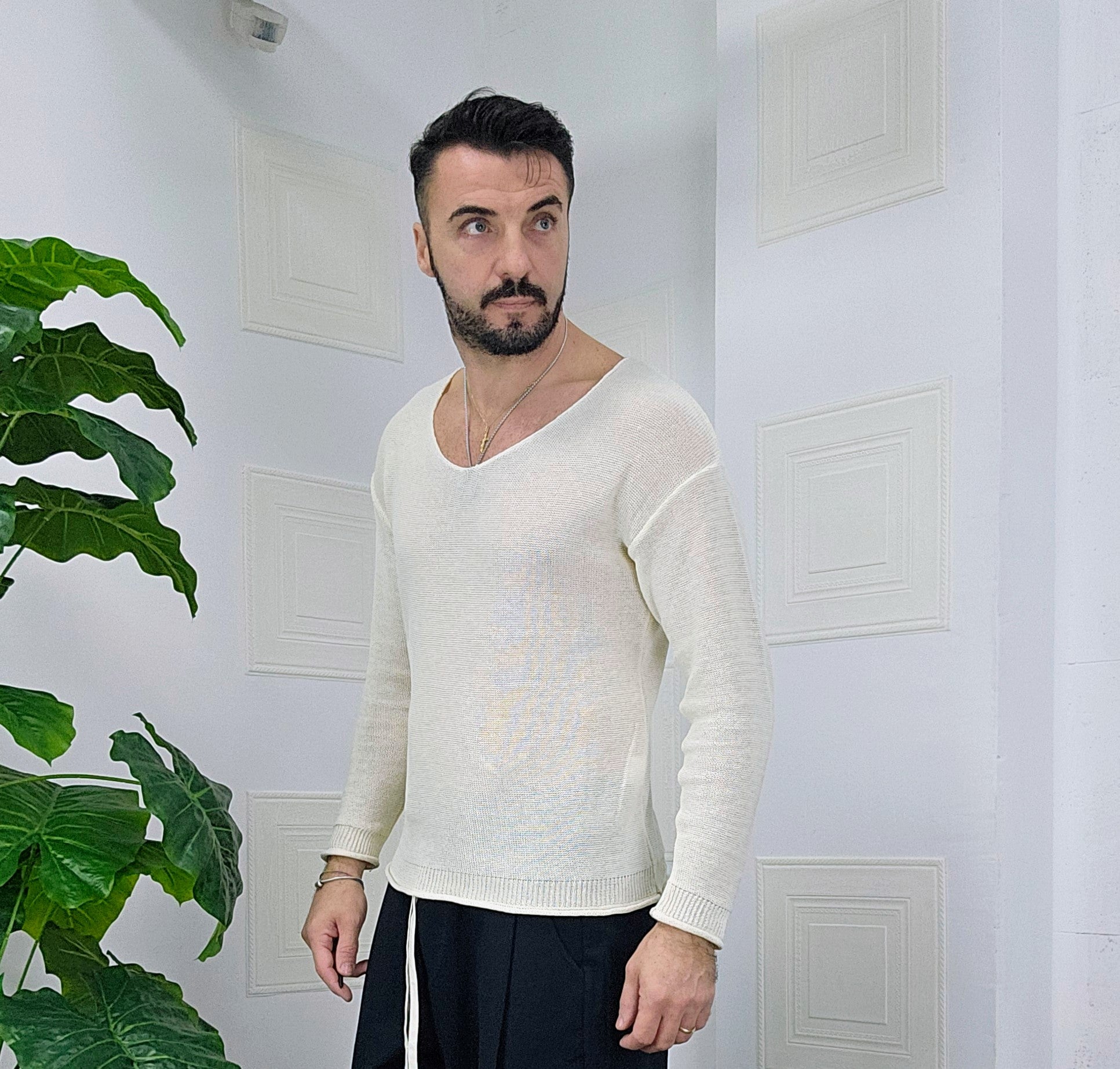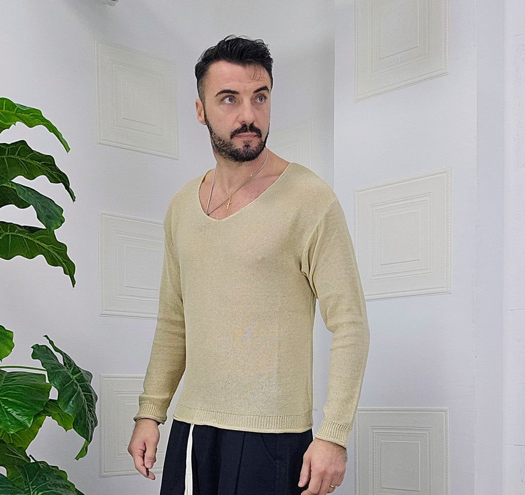 Maglia in filo con scollo a V ampio slim fit dalla S alla XXL, il modello in foto è alto 1.82x76kg è indossa una taglia M.Prodotto Made in Italy