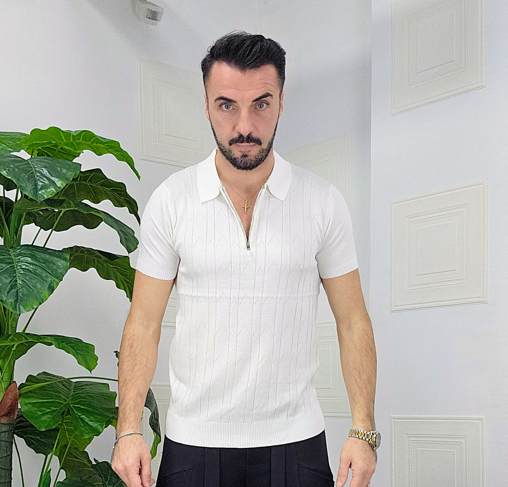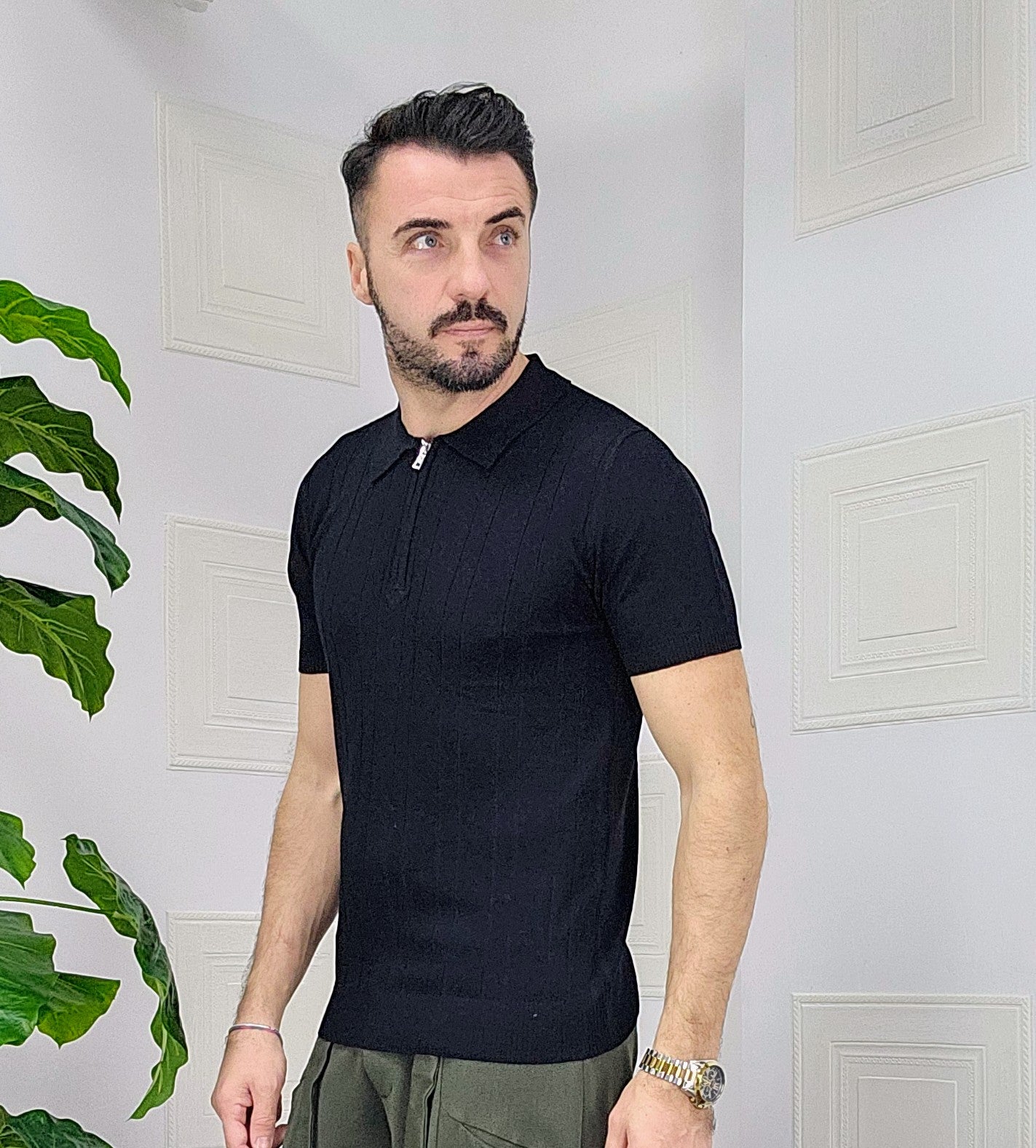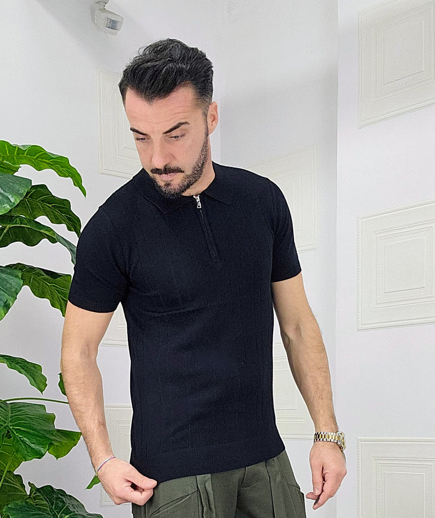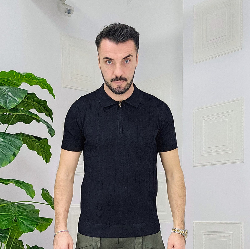 Polo slim fit con chiusura cerniera 80% di cotone dalla M alla XXL, il modello in foto è alto 1.82x76kg è indossa una taglia M.Prodotto Made in Italy