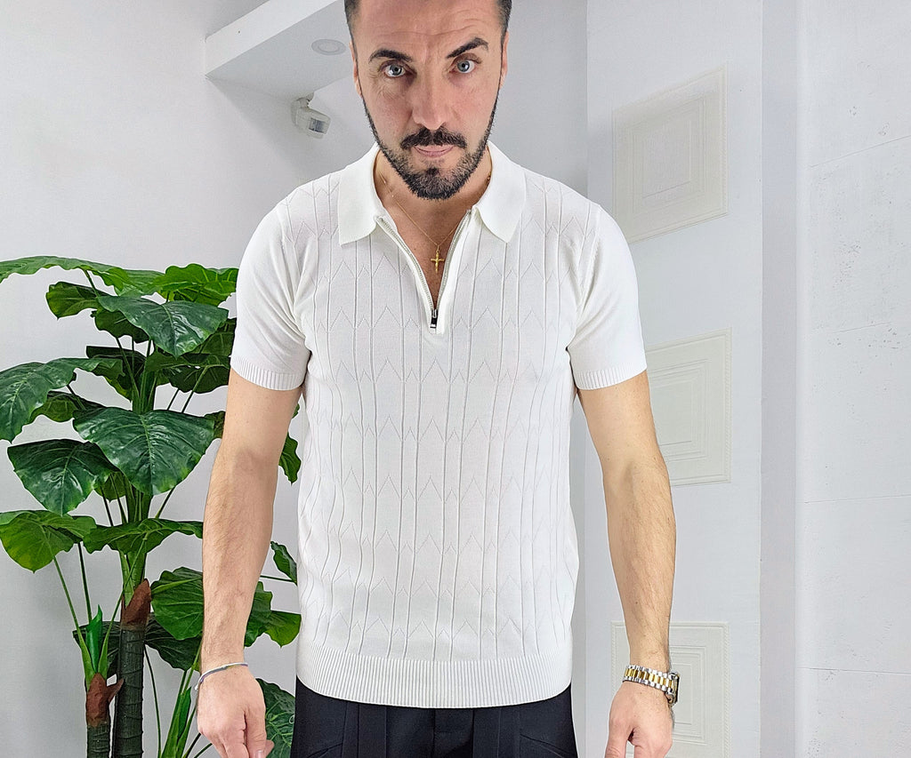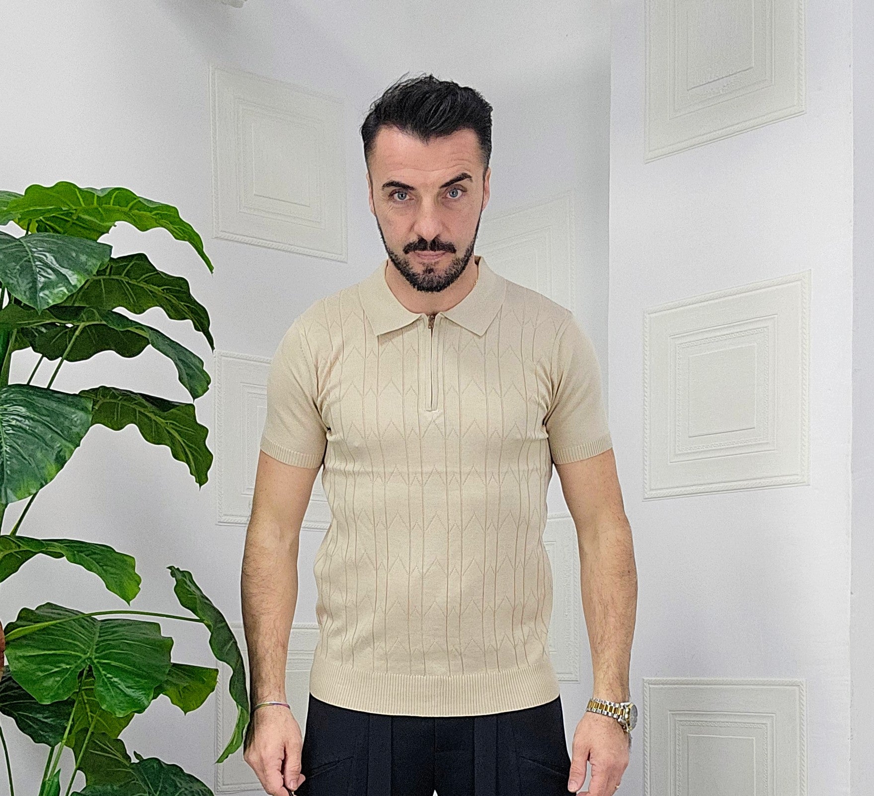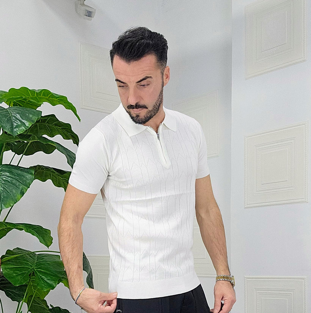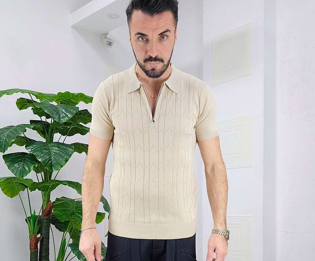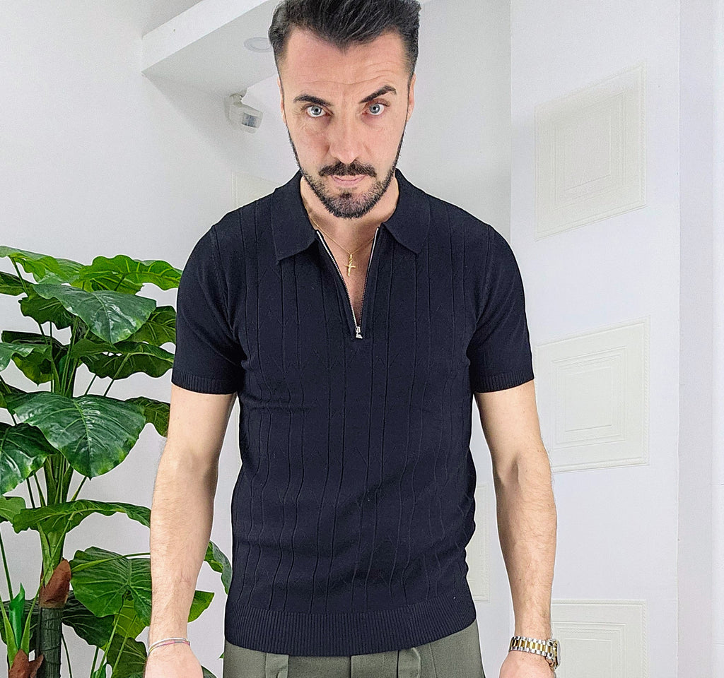 Polo slim fit con chiusura cerniera 80% di cotone dalla M alla XXL, il modello in foto è alto 1.82x76kg è indossa una taglia M.Prodotto Made in Italy