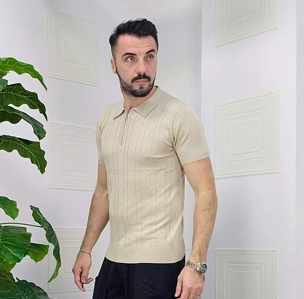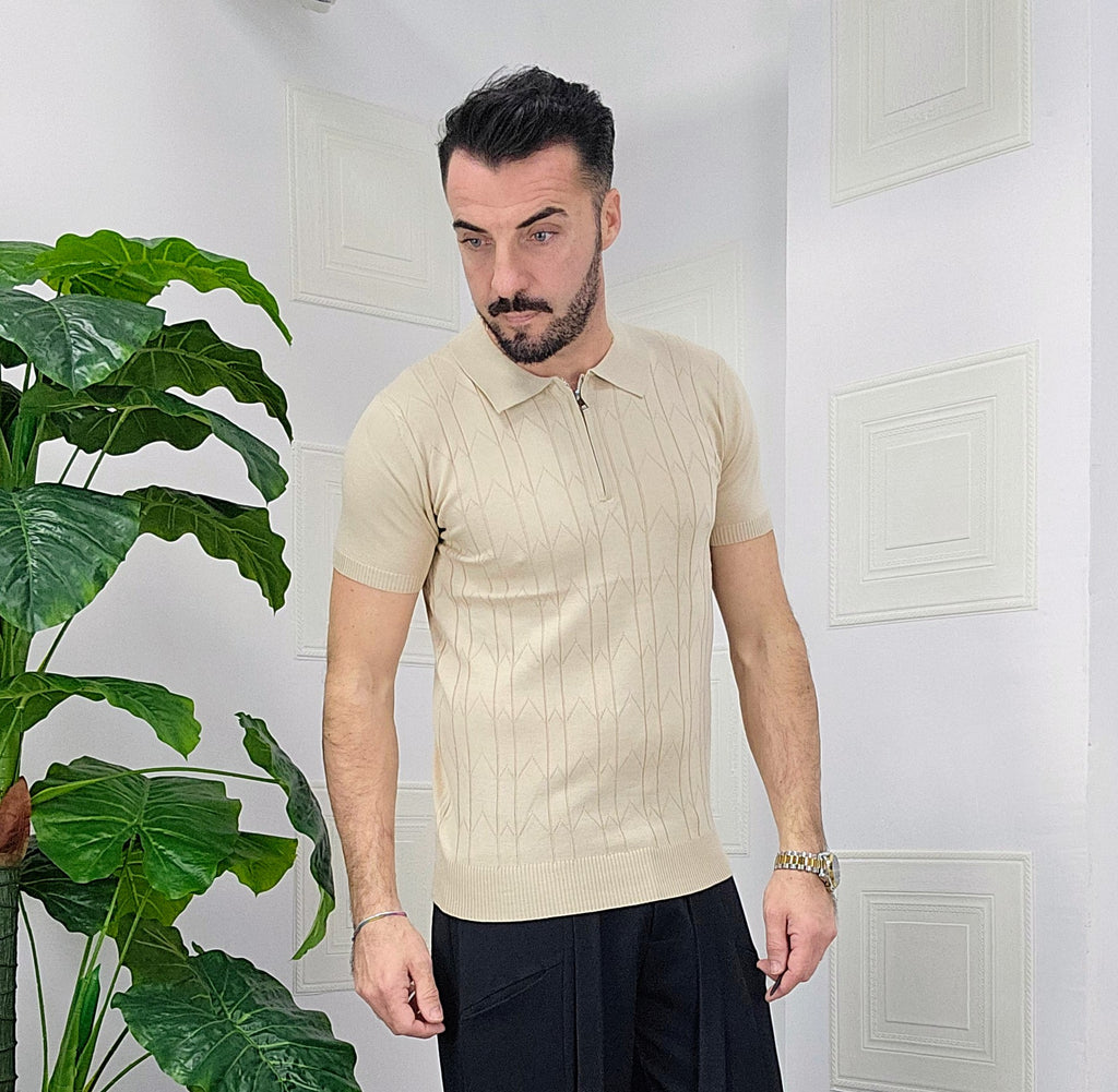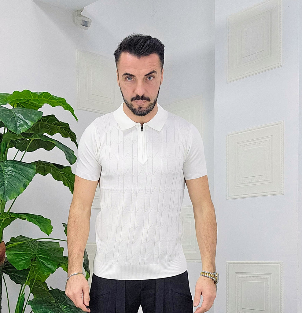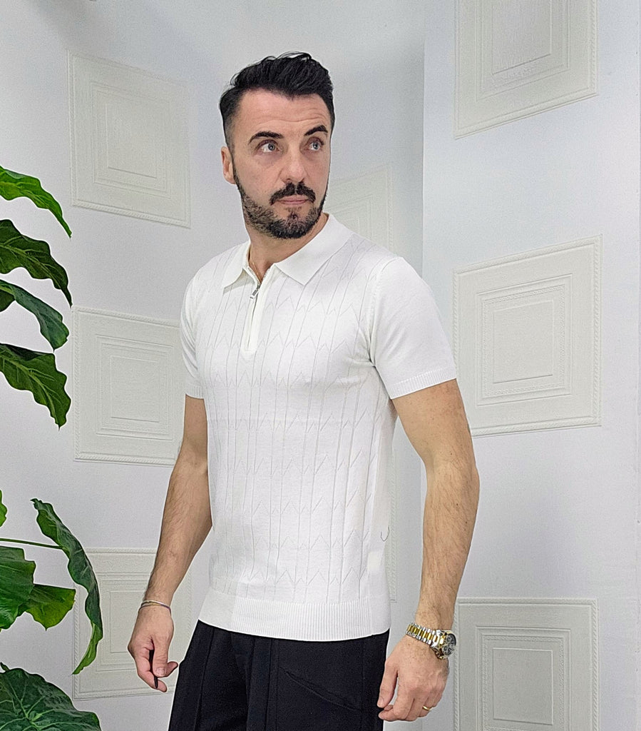 Polo slim fit con chiusura cerniera 80% di cotone dalla M alla XXL, il modello in foto è alto 1.82x76kg è indossa una taglia M.Prodotto Made in Italy