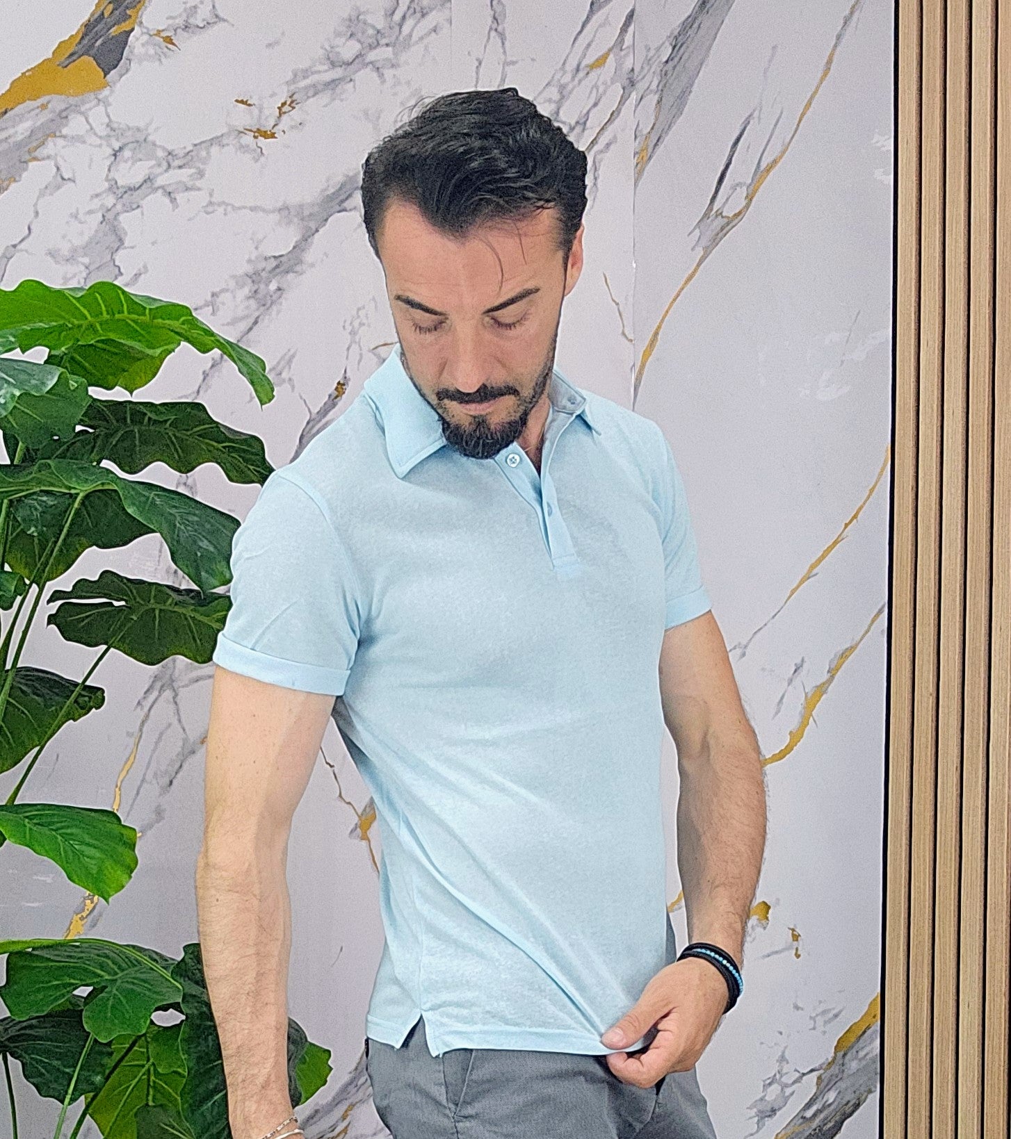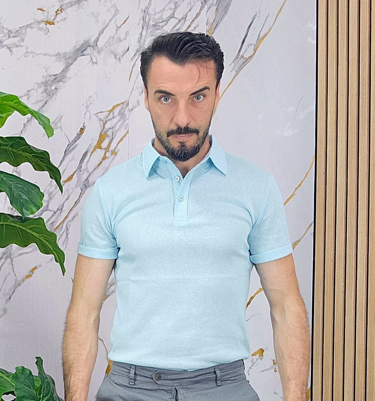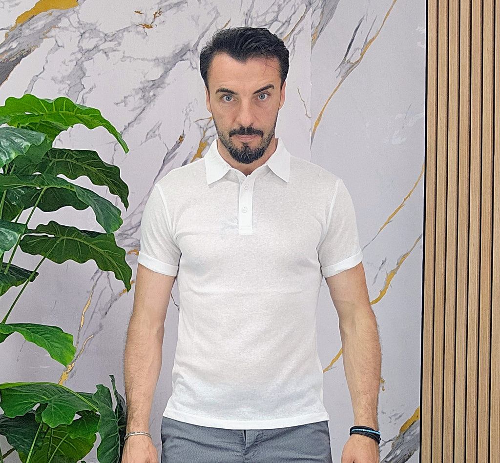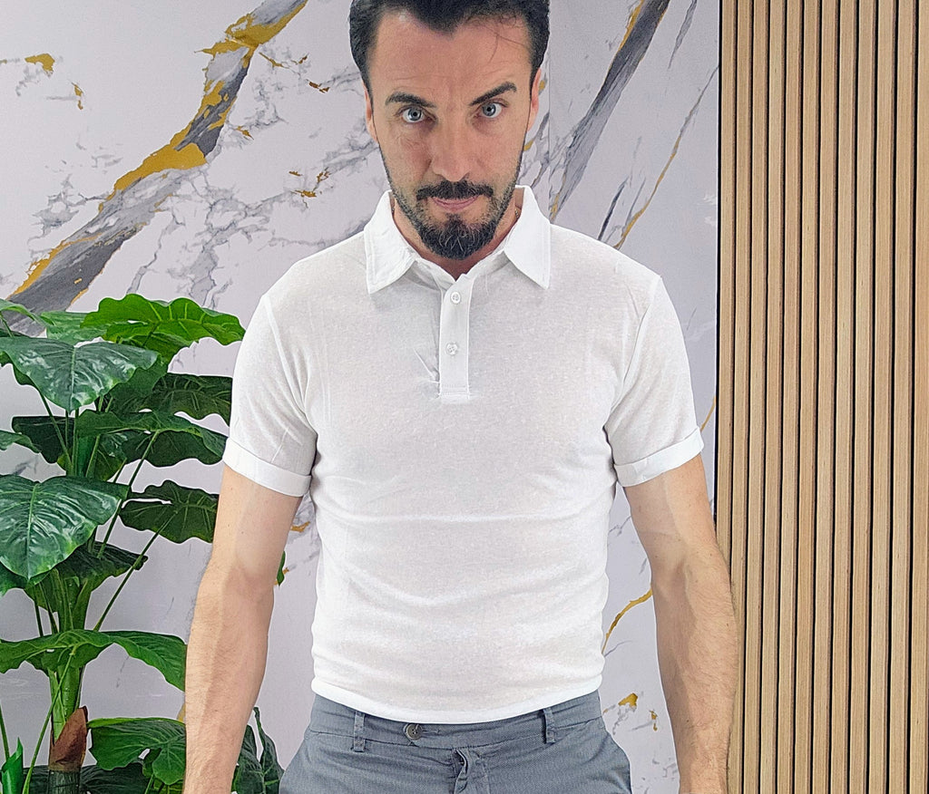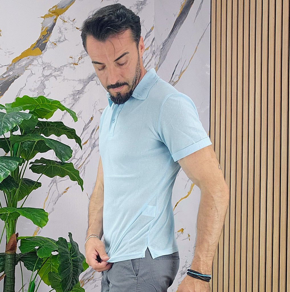 Polo.in cotone fresco slim fit dalla S alla XXL, il modello in foto è alto 1.82x76kg è indossa una taglia M.Prodotto Made in Italy