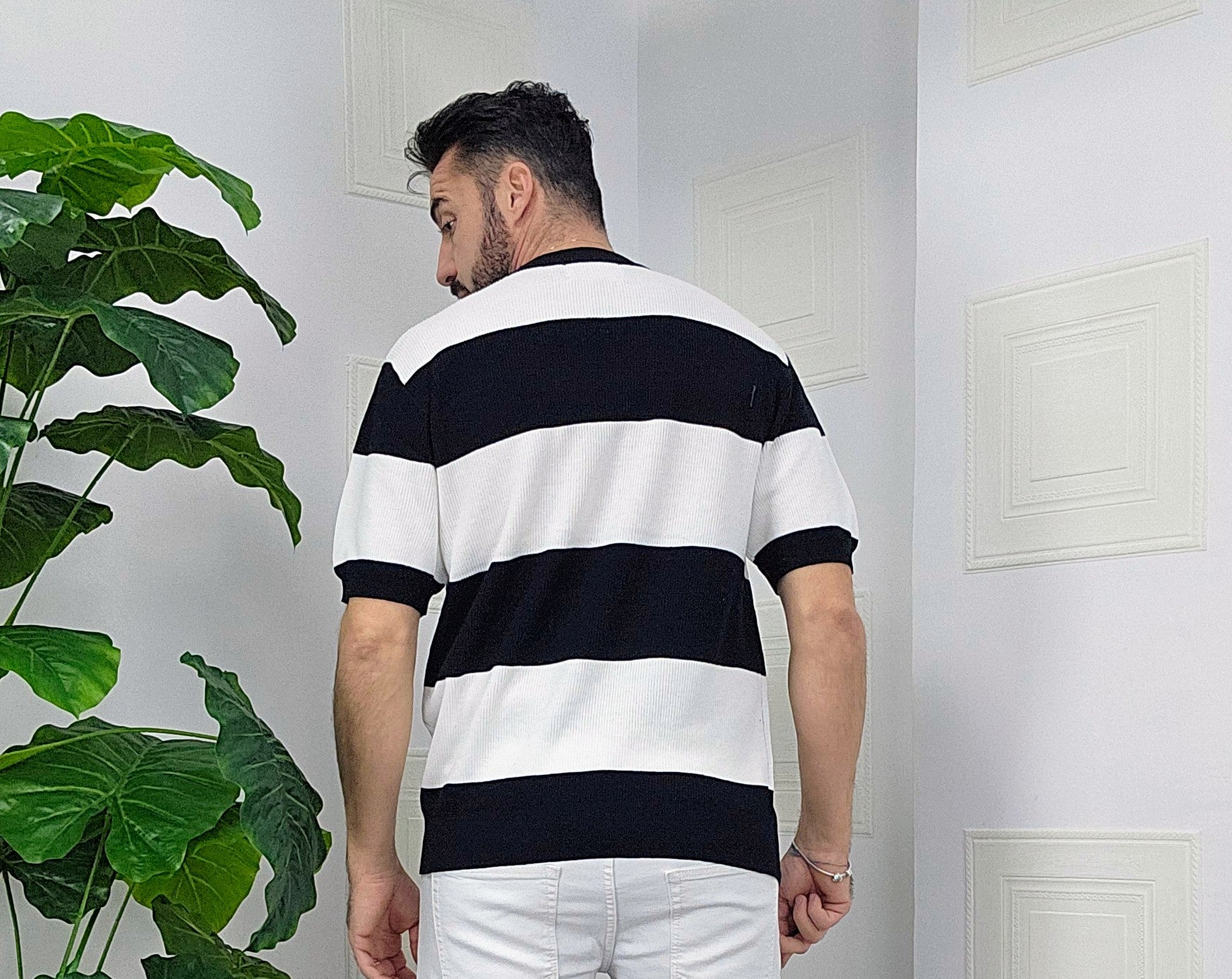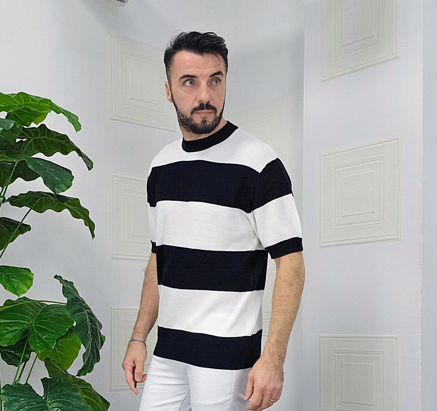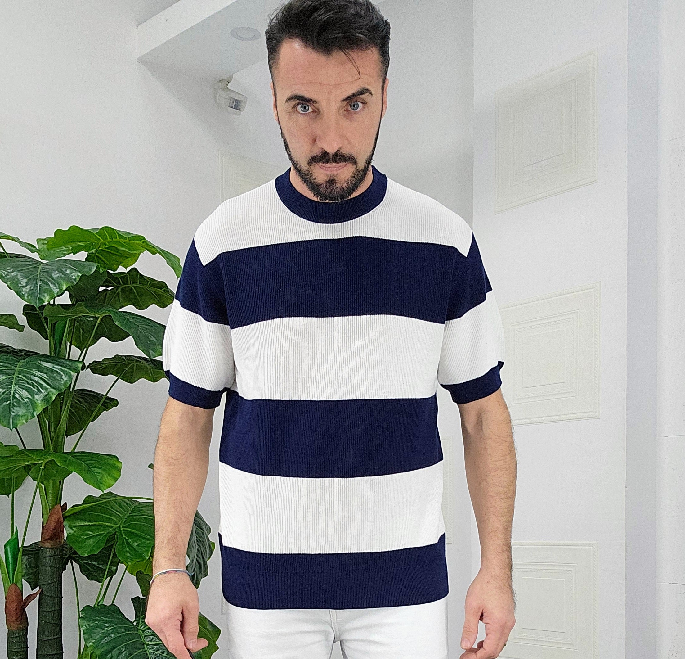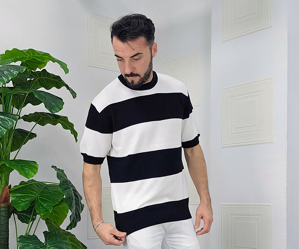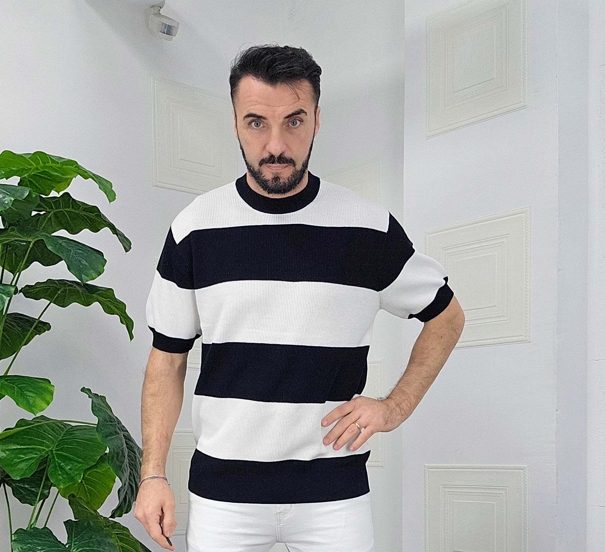 Maglia elastica calzata over size 100% cotone dalla S alla XL ,il modello in foto è alto 1.82x76kg è indossa una taglia S.Prodotto Made in Italy