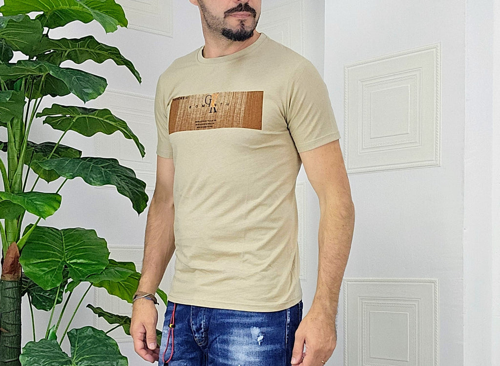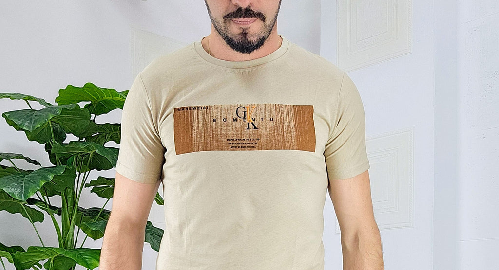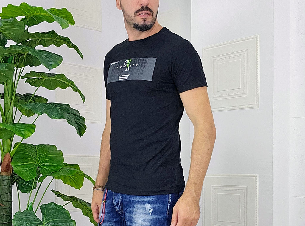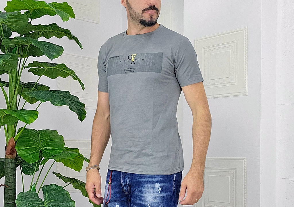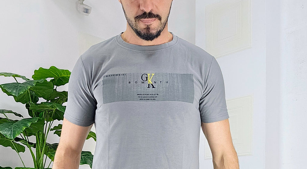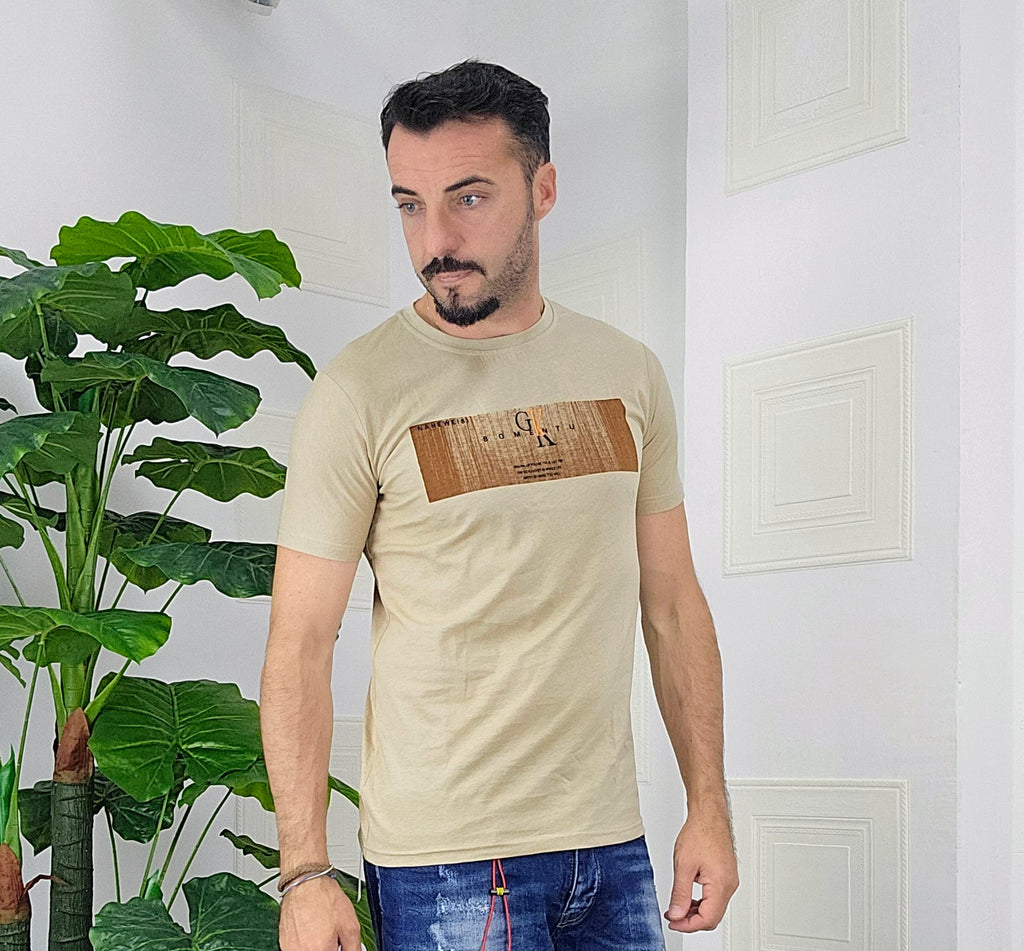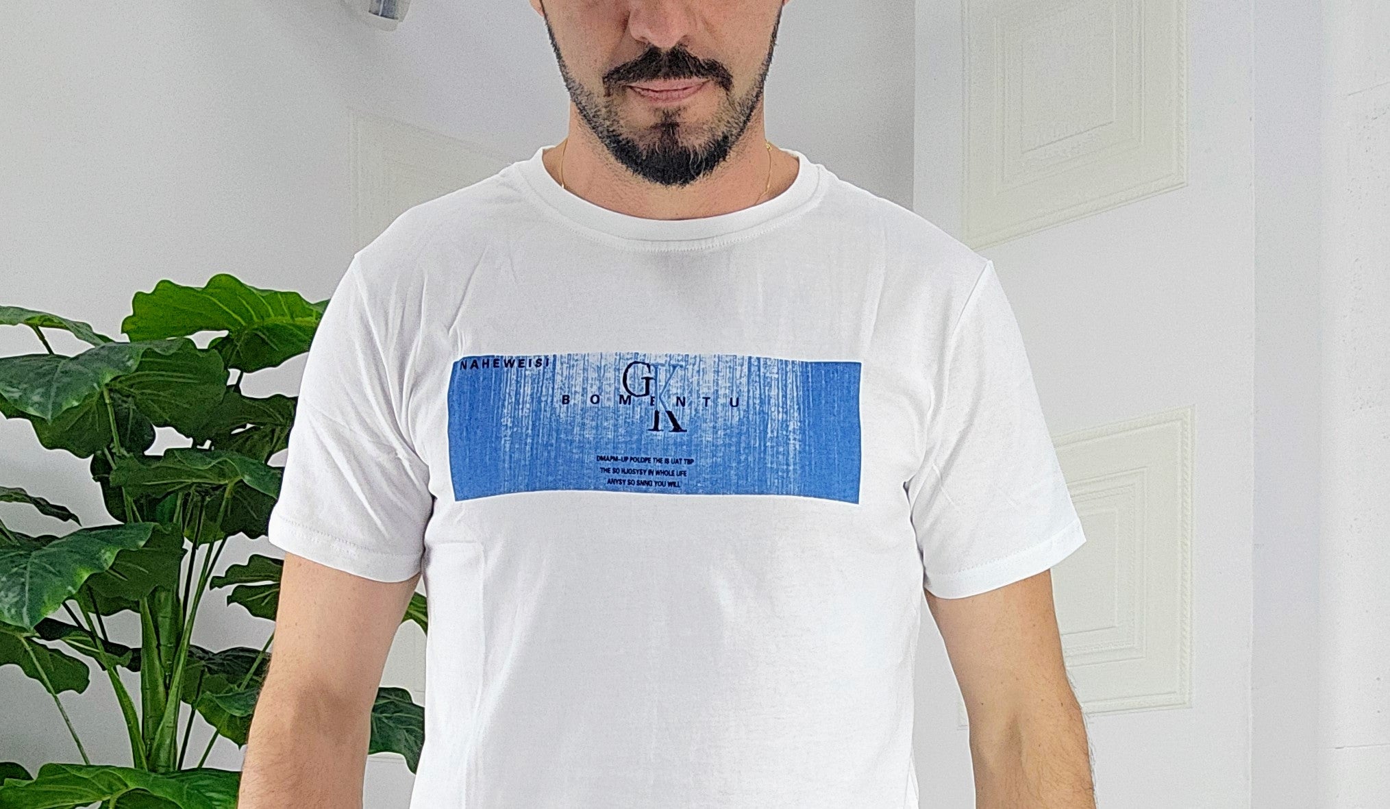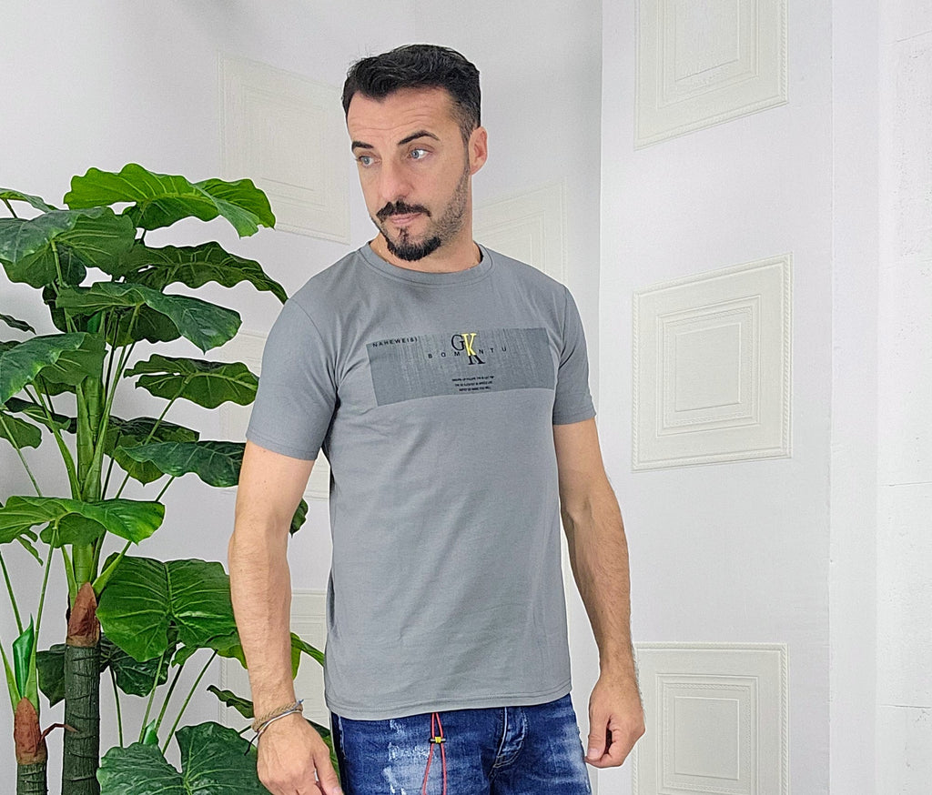 Maglia slim fit con stampa al petto con scritte cucite dalla M alla XXXL, il modello in foto è alto 1.82x76kg è indossa una taglia M.Prodotto Made in Italy
