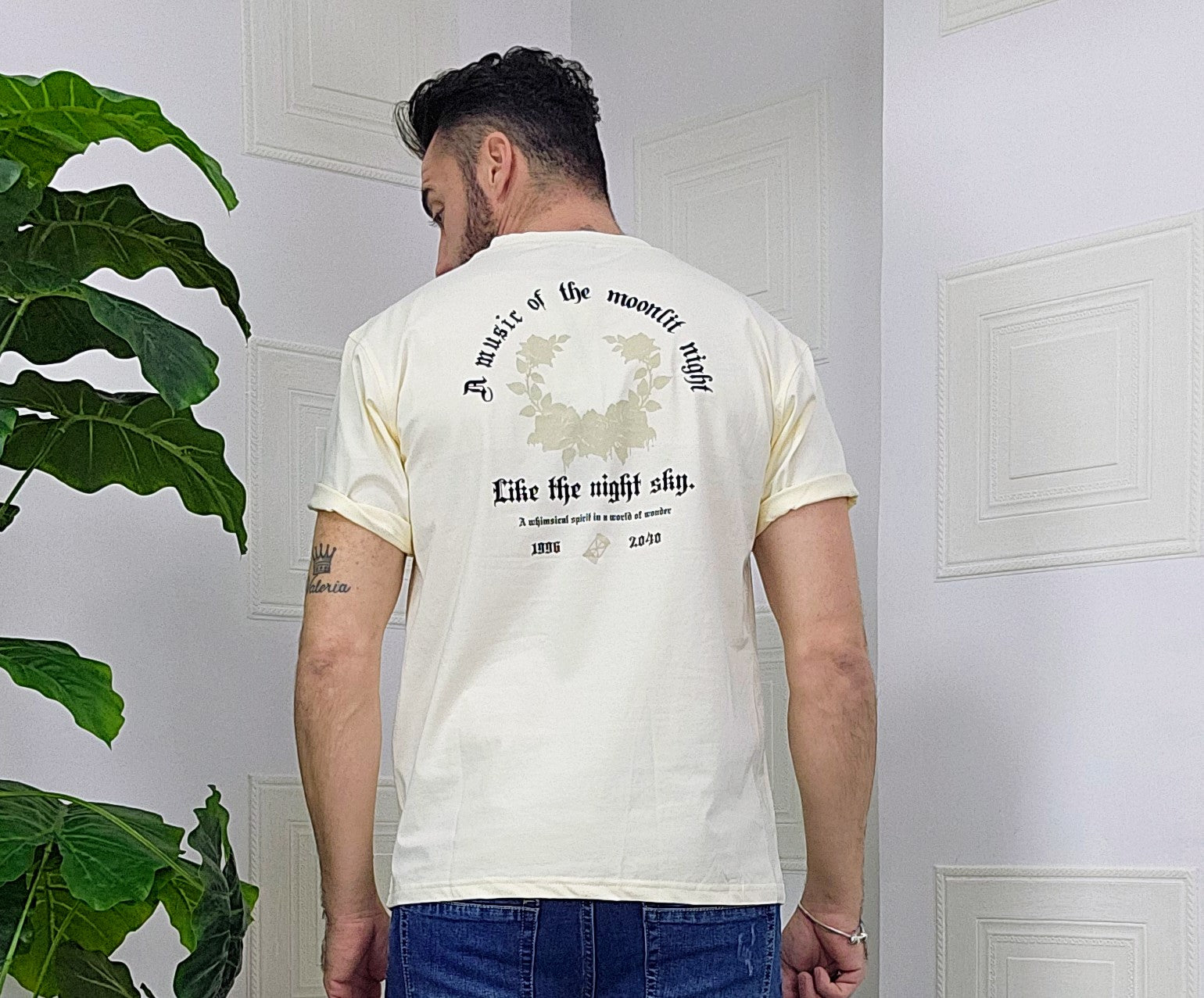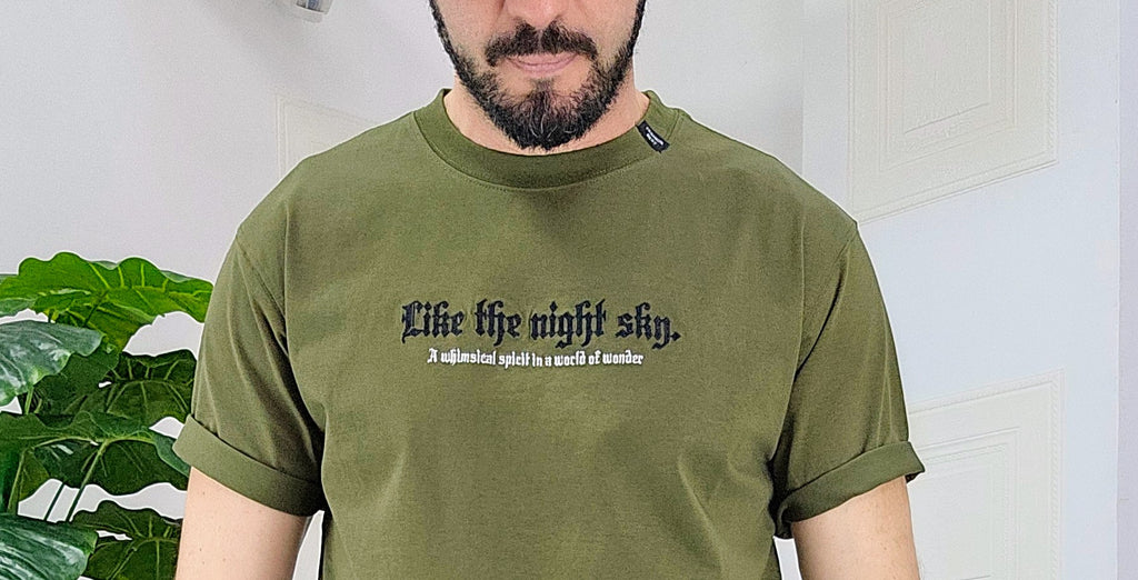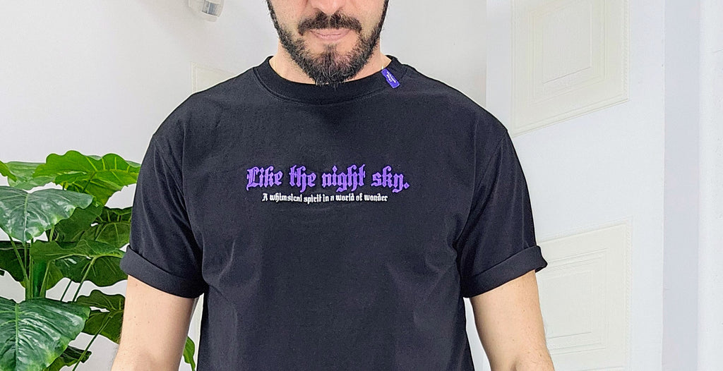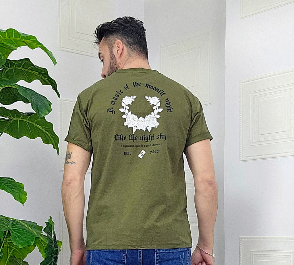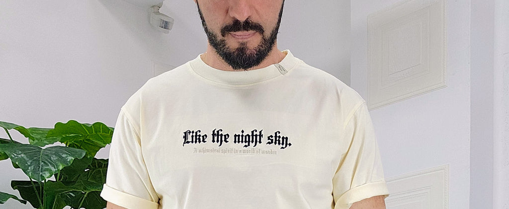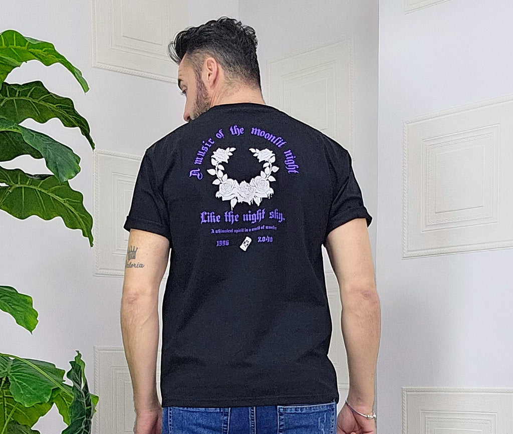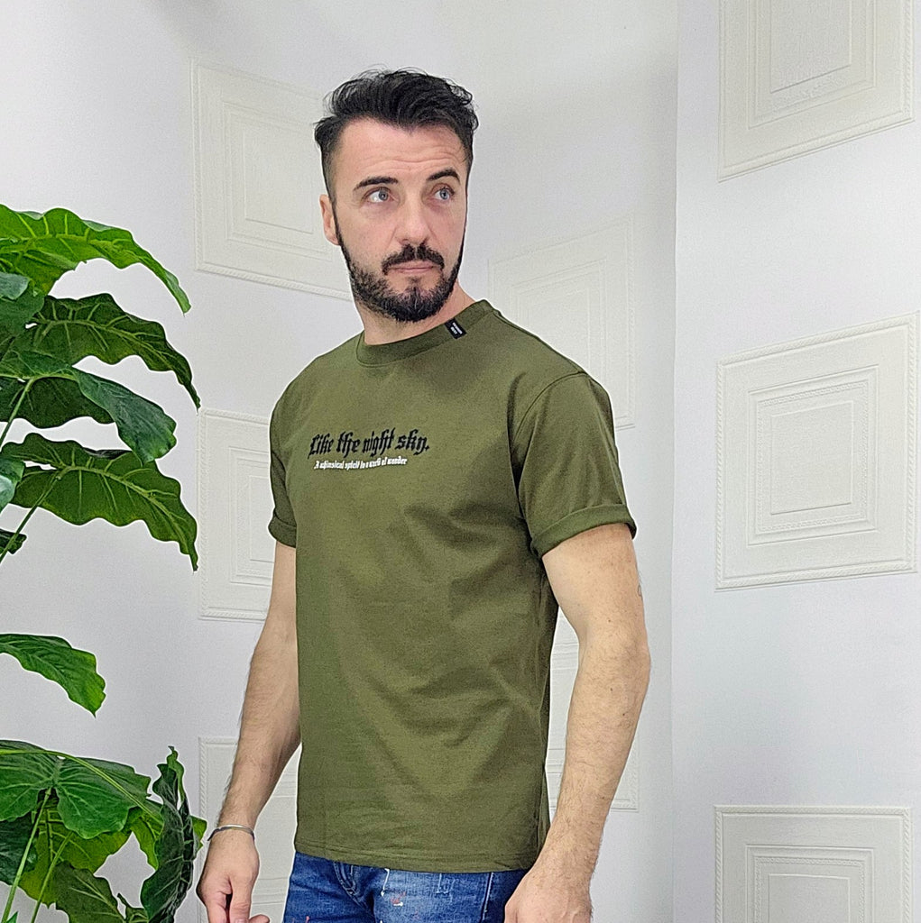 Maglia elastica con scritta cucita più stampa sia sul petto che sul retro sia sul collo dalla S alla XXL, il modello in foto è alto 1.82x76kg è indossa una taglia S.Prodotto Made in Italy