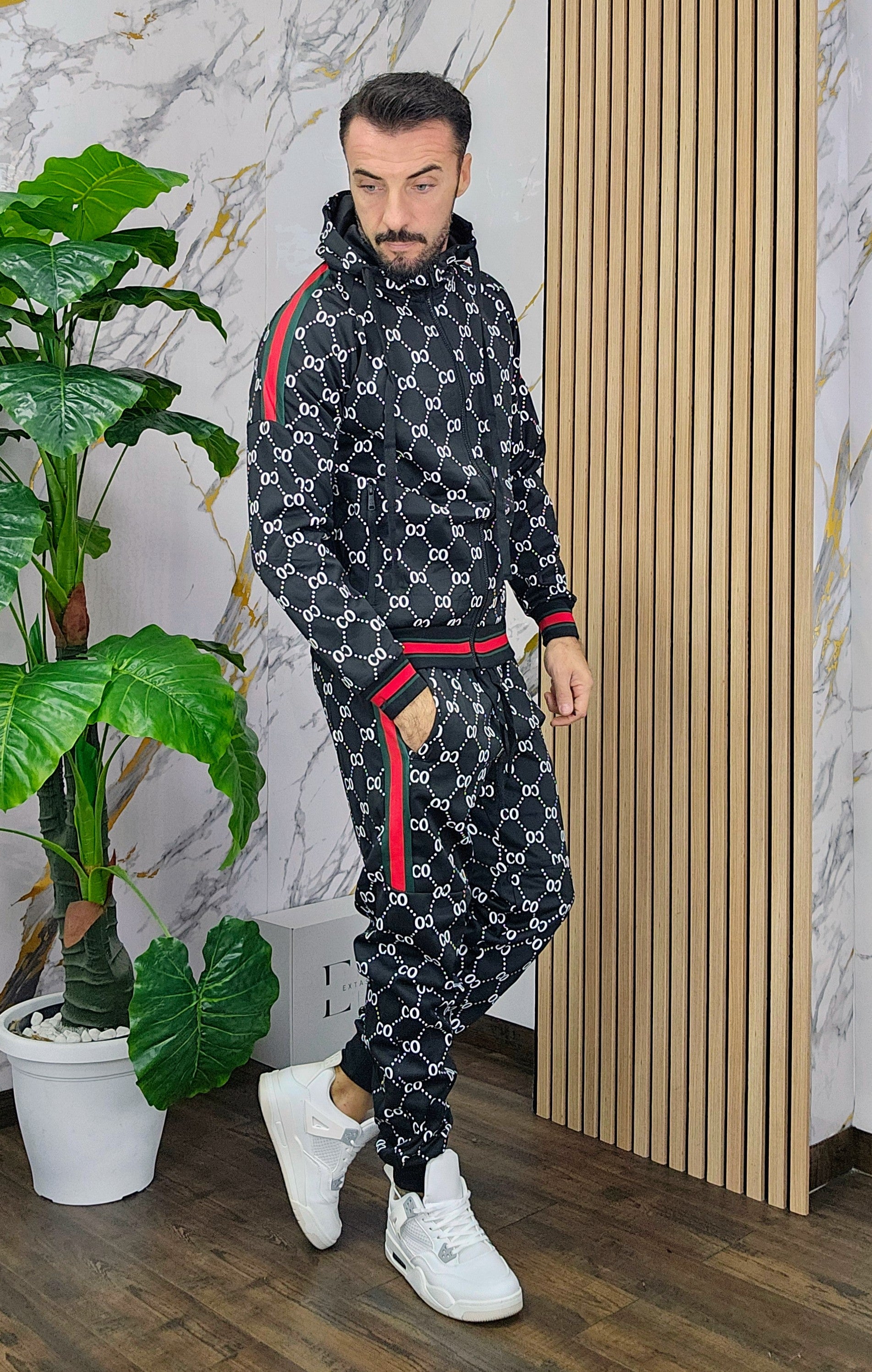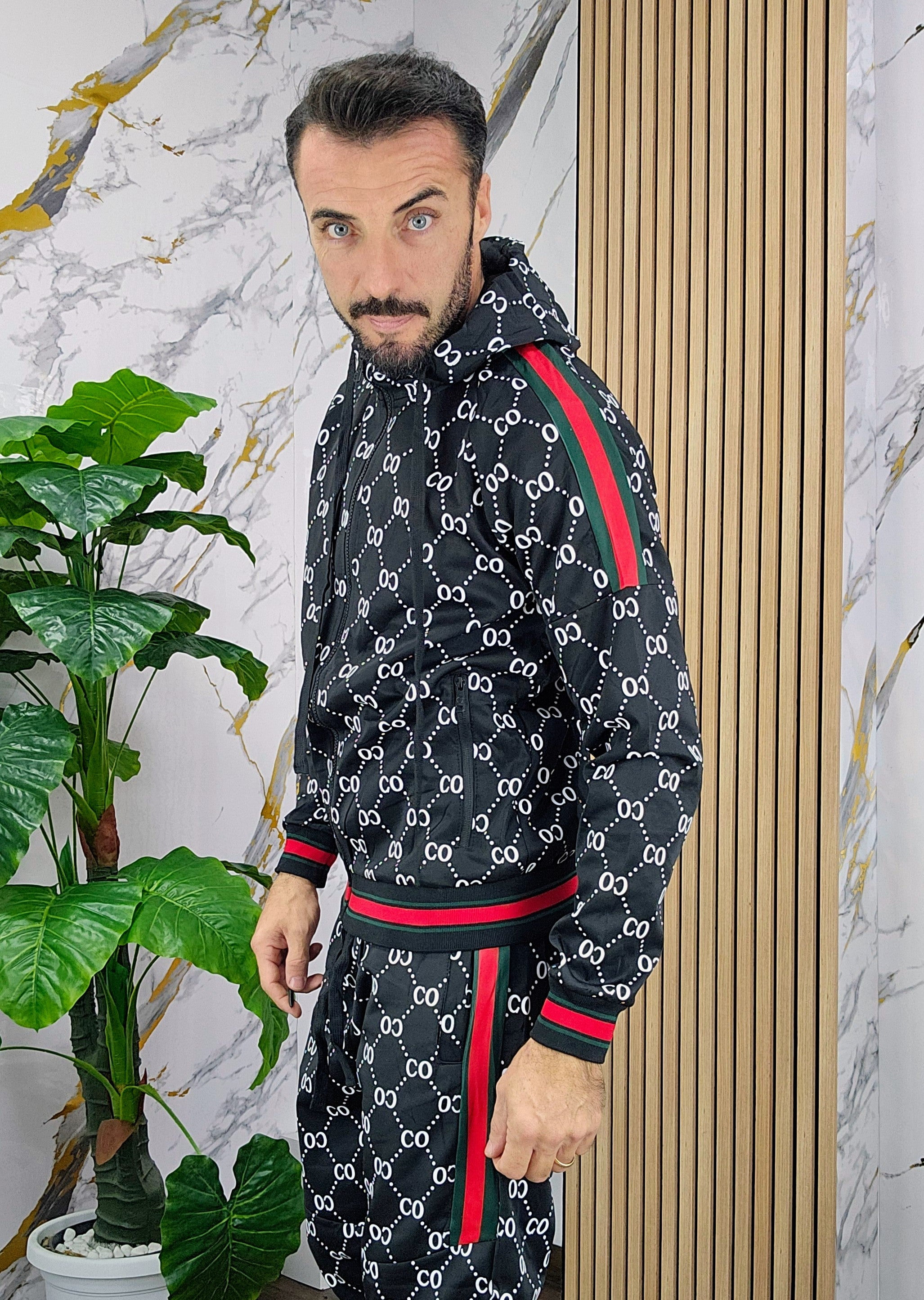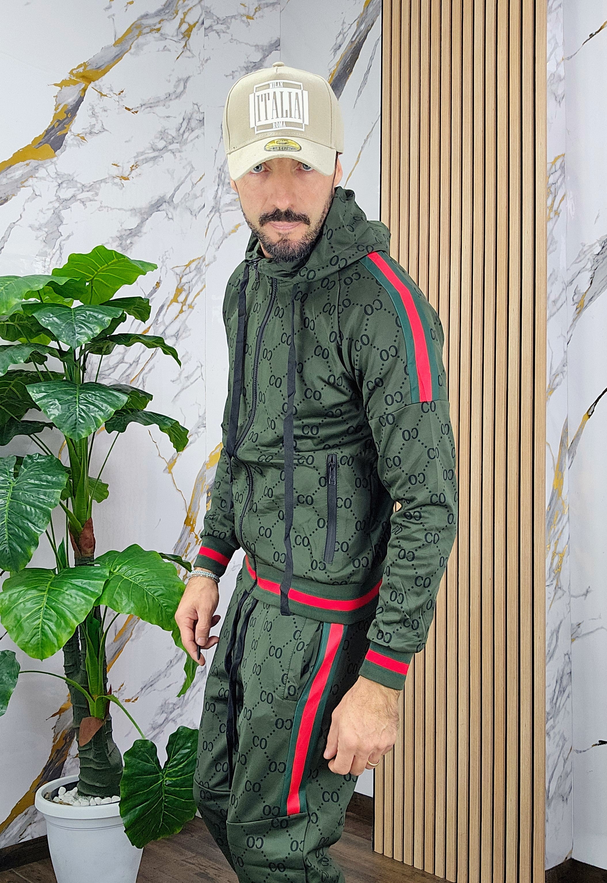 Tuta non felpato slim fit con chiusura zip centrale tasche laterali alla zip cappuccio regolabile pantatuta con 2 tasche laterali polsino alla caviglia bande in tessuto ricucite dalla S alla XXL, il modello in foto è alto 1.82x76kg è indossa una taglia S.Prodotto Made in Italy