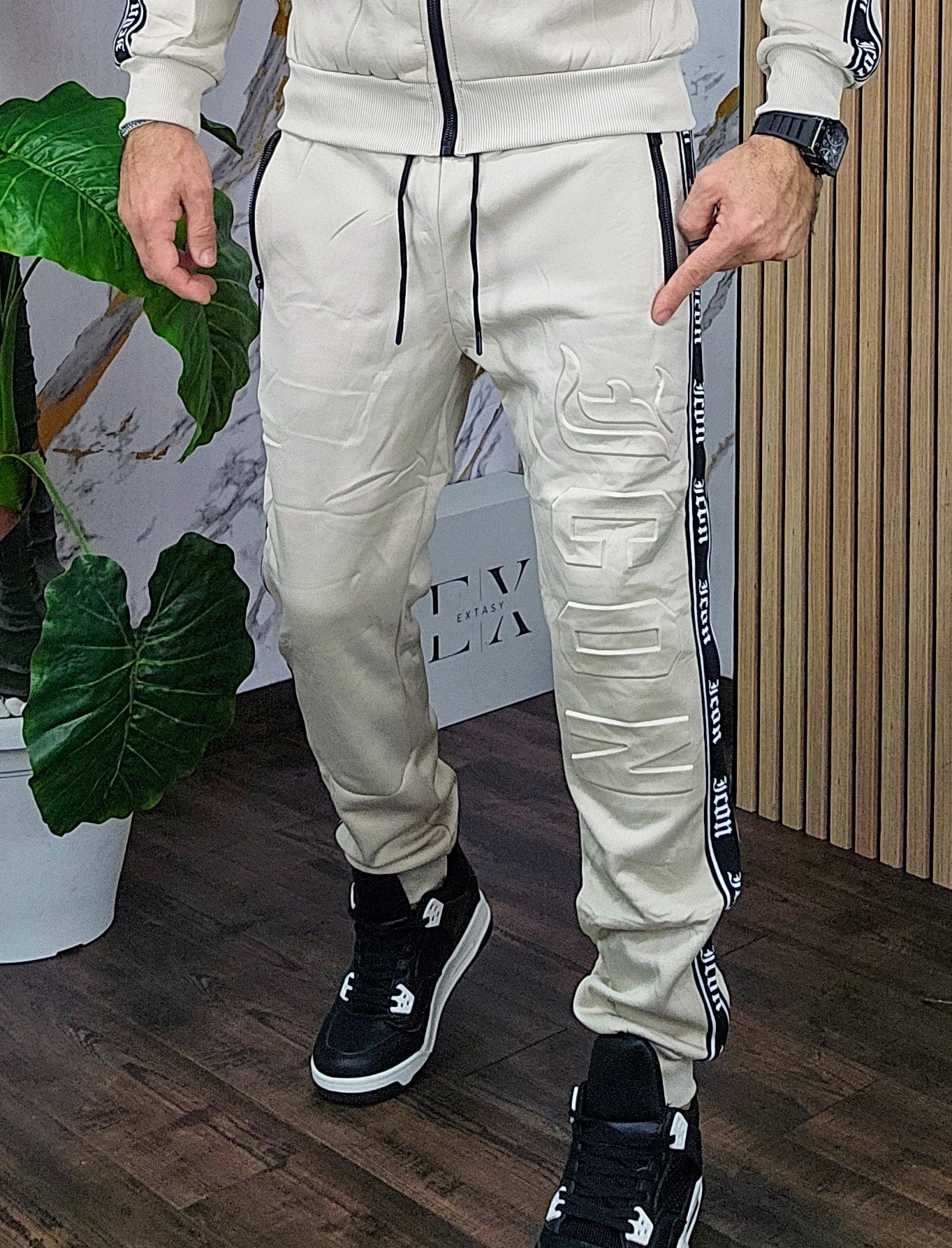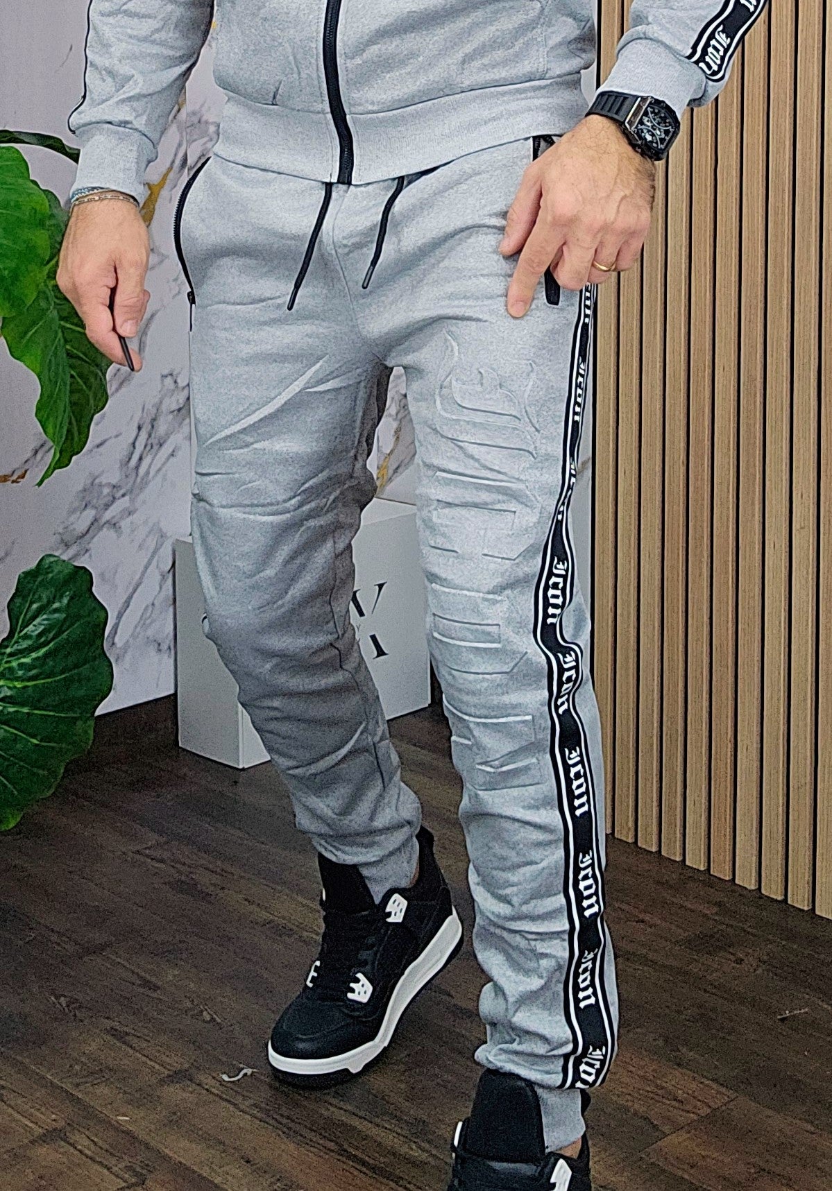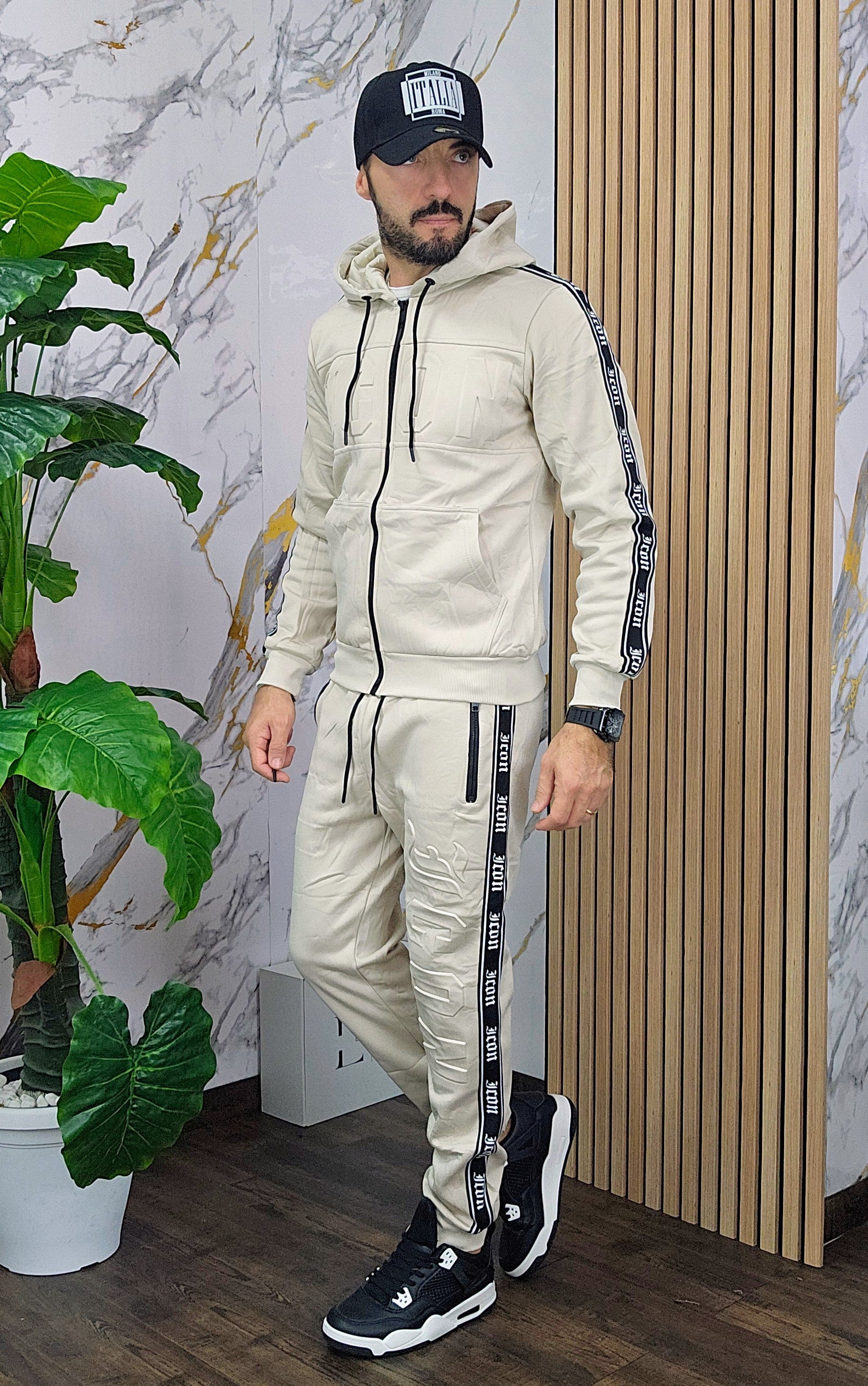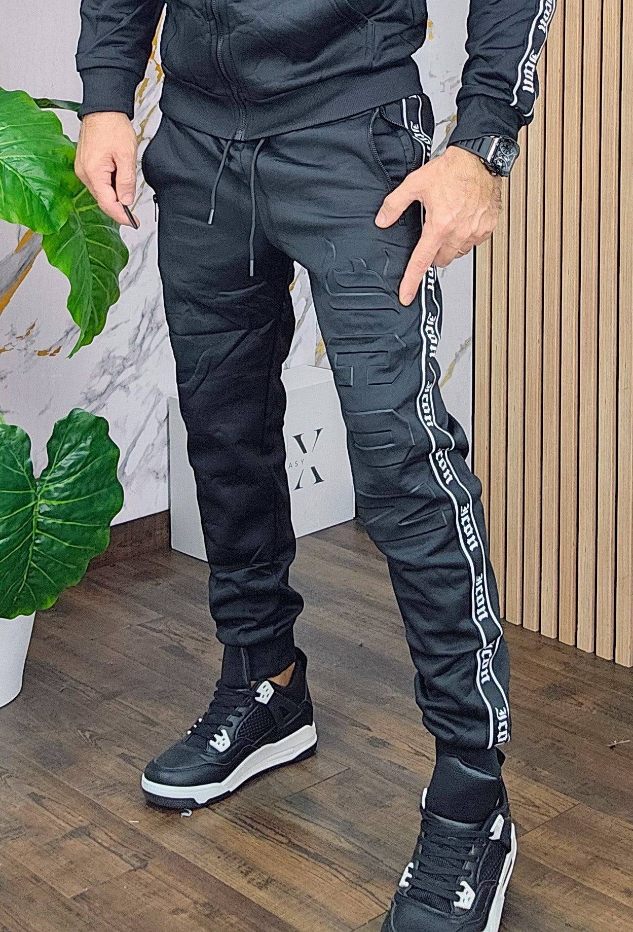 Tuta slim fit felpato all'interno chiusura zip centrale cappuccio regolabile marsupio stampa a fuoco al petto e sulla gamba etichetta icon ricucito pantalone con 2 tasche laterali chiusura zip polsino alla caviglia dalla S alla XXL, il modello in foto è alto 1.82x76kg è indossa una taglia S.Prodotto Made in Italy