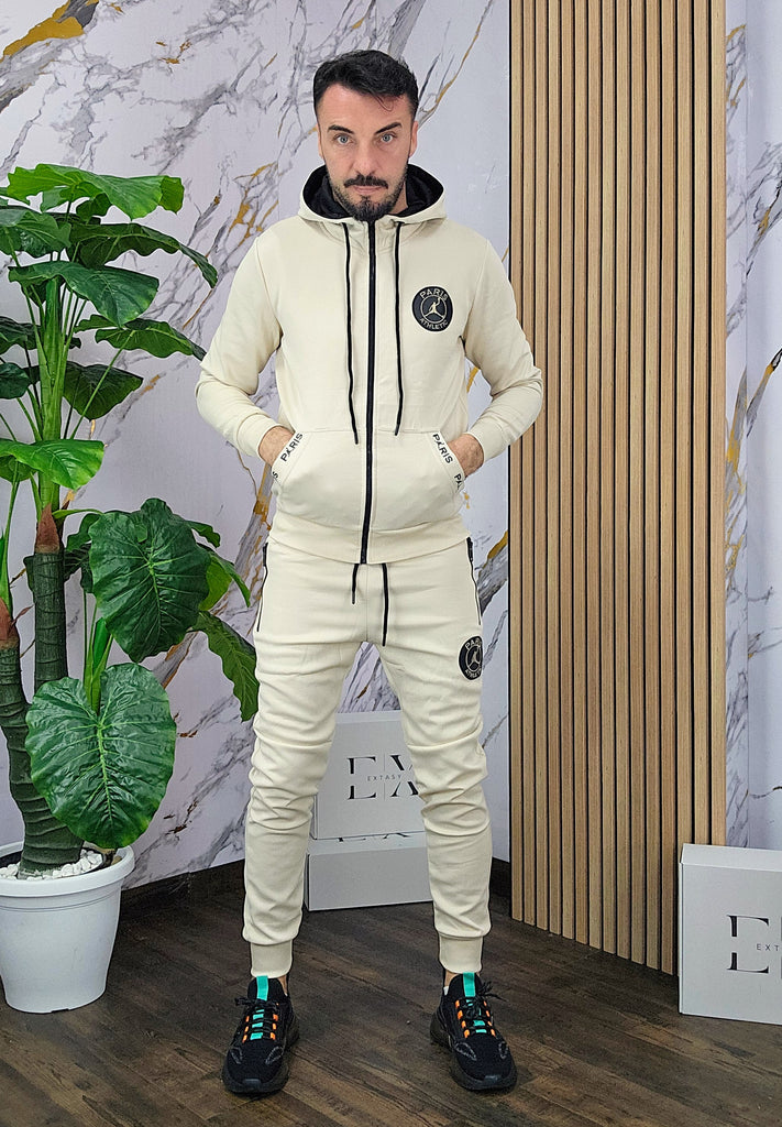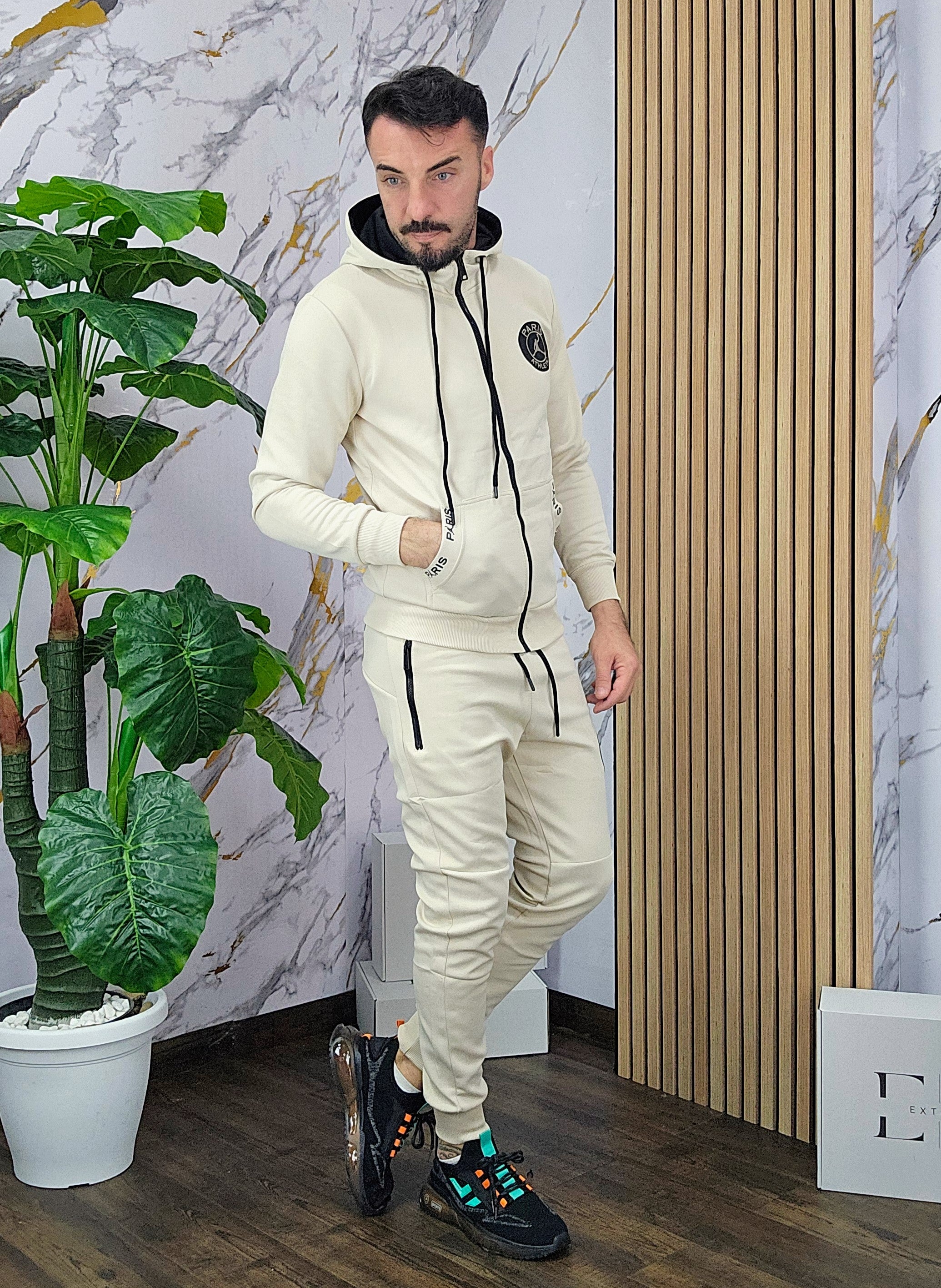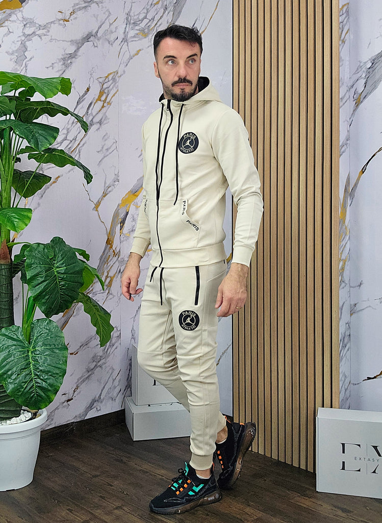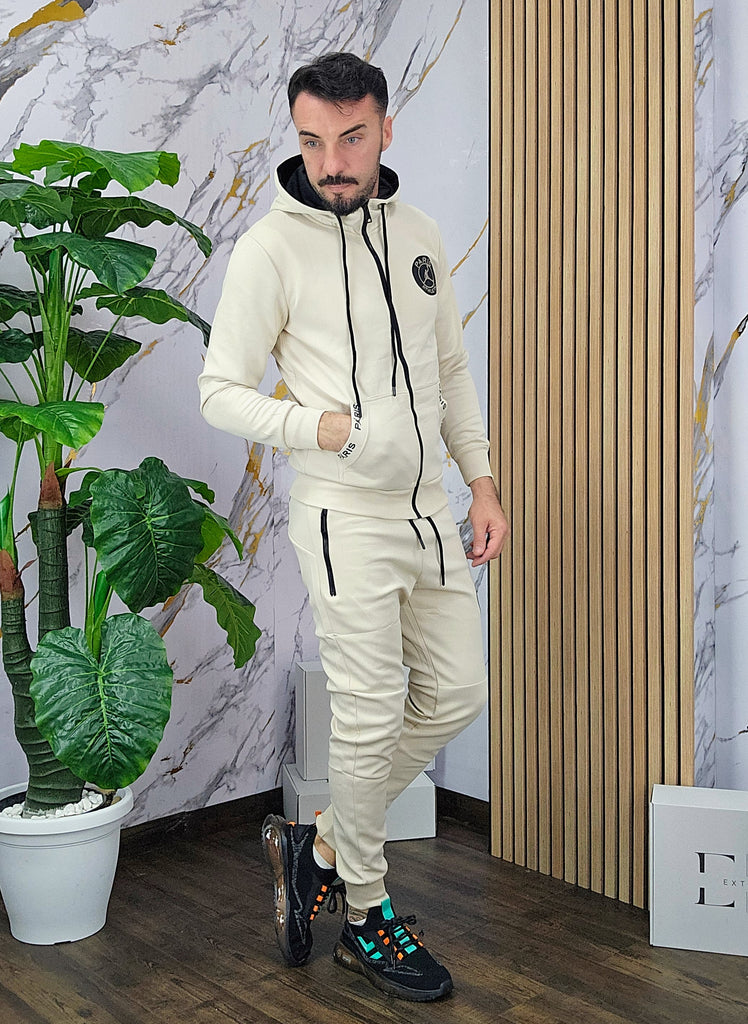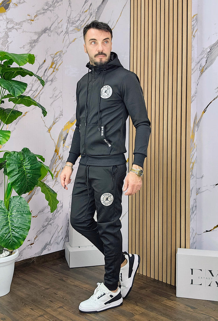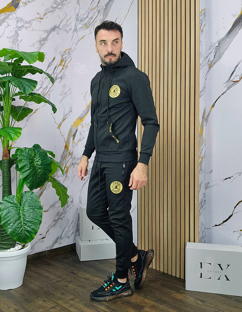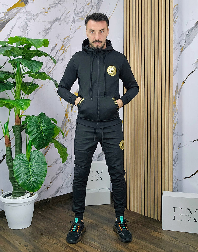 Tuta slim fit con stampe sul retro rialzato cuciture sul cappuccio lato cuore sulla gamba polsino alla caviglia 2 tasche laterali alla felpa 2 tasche laterali alla pantatuta chiusura zip dalla S alla XXL, il modello in foto è alto 1.82x76kg è indossa una taglia S.Prodotto Made in Italy